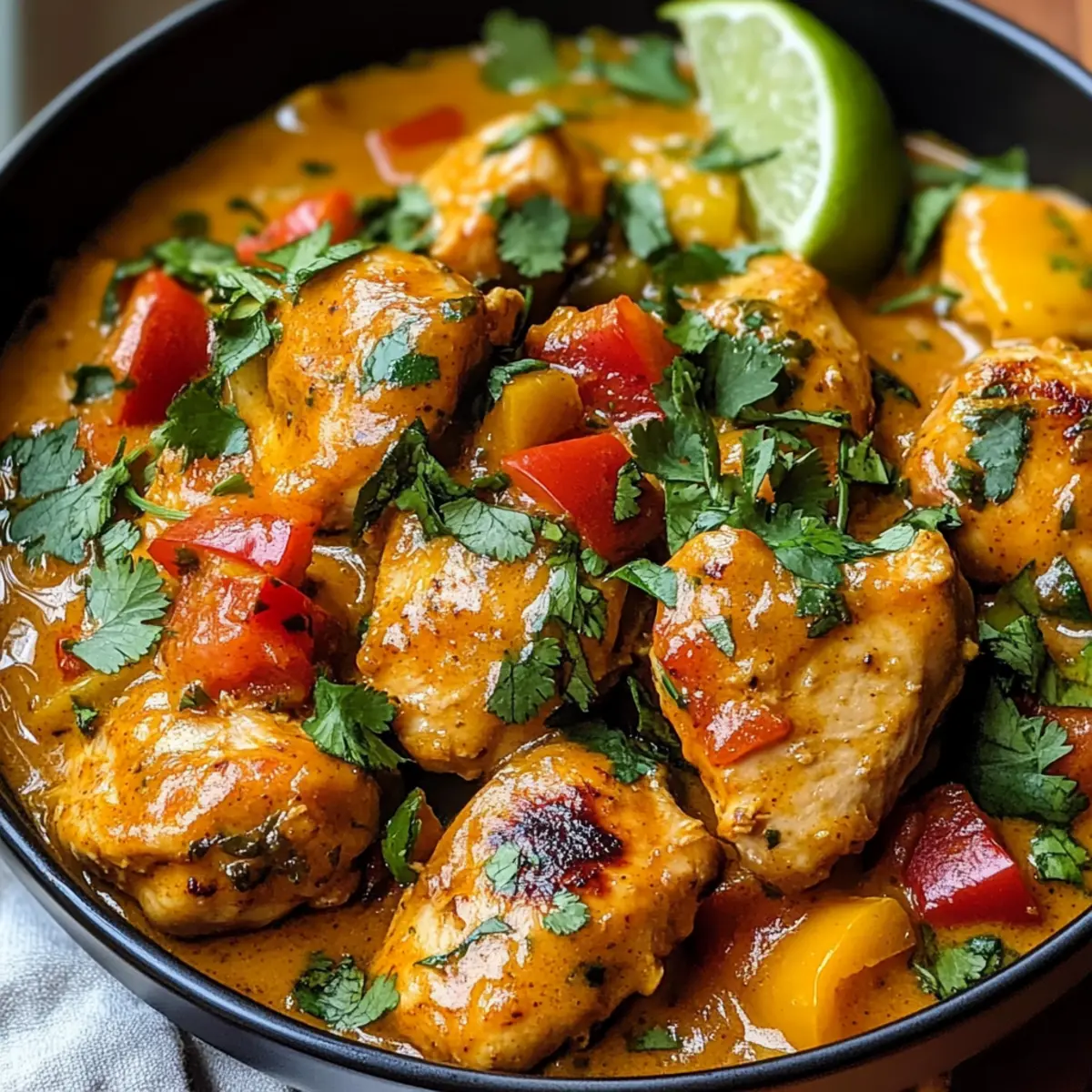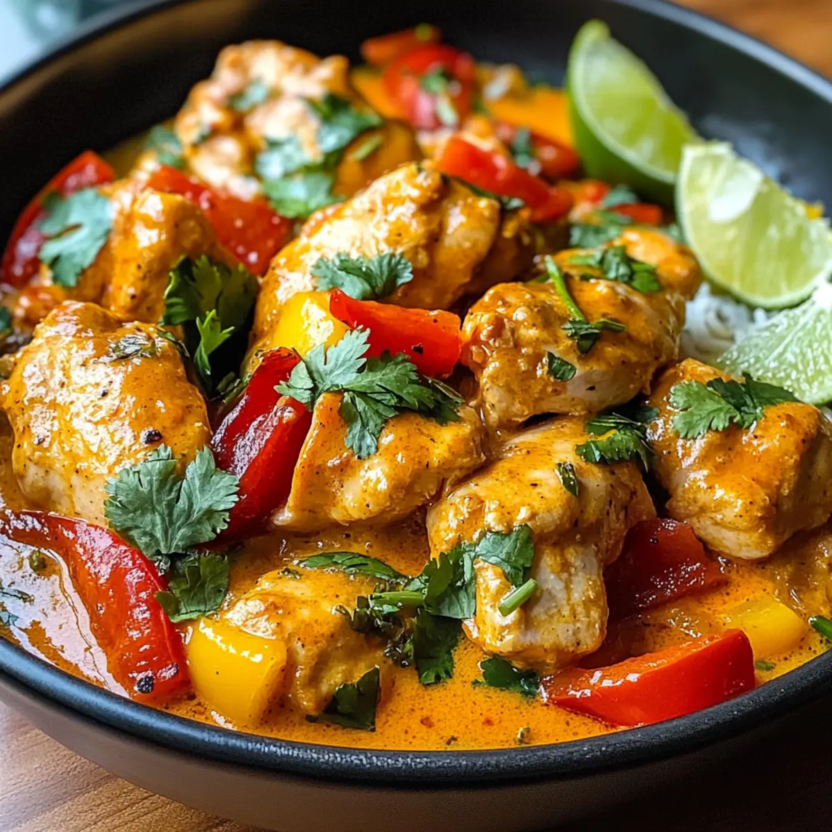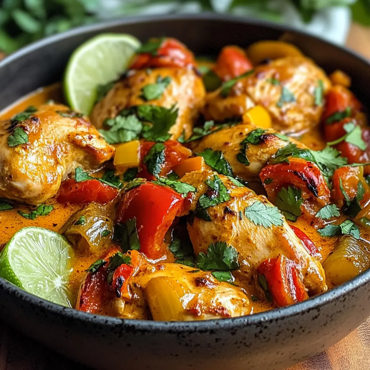 Während ich in der Küche stand und die frischen Zutaten ausbreitete, überkam mich die Vorfreude auf ein Gericht, das sowohl Komfort als auch Exotik verspricht: scharfes brasilianisches Kokosnuss-Hühnchen. Diese köstliche Kombination aus zartem Hähnchenfleisch und einer cremigen, würzigen Kokosnusssoße begeistert alle Sinne und bringt einen Hauch von brasilianischer Lebensfreude auf den Tisch. Ein weiterer Vorteil ist die Anpassungsfähigkeit des Gewürzlevels, sodass sowohl scharfe Liebhaber als auch mildere Gaumen voll auf ihre Kosten kommen. Ob als herzhaftes Abendessen oder für einen besonderen Anlass, dieses Rezept passt einfach immer. Bereit, herauszufinden, wie Sie mit wenigen Zutaten ein kulinarisches Abenteuer entfachen können? Warum sollten Sie dieses Rezept ausprobieren? Einfachheit: Die Zubereitung ist unkompliziert und benötigt keine ausgeklügelten Küchentechniken, was es auch für Kochanfänger zugänglich macht. Vielfalt: Passen Sie die Schärfe nach Ihrem Geschmack an – von mild bis feurig, jeder kann seine perfekte Version kreieren! Reichhaltiger Geschmack: Die Kombination aus cremiger Kokosnuss und frischen Gewürzen sorgt für ein Geschmackserlebnis, das nicht nur den Gaumen erfreut, sondern auch die Sinne begeistert. Köstliche Texturen: Zartes Hähnchenfleisch in einer samtigen Sauce, kombiniert mit knackigem Gemüse, macht jede Gabel zu einem Genuss. Kreativität: Experimentieren Sie mit Zutaten wie Gemüse hinzufügen oder sogar Fisch, um neue Geschmacksrichtungen zu entdecken – die Möglichkeiten sind endlos! Schnell und nahrhaft: Dieses Gericht ist nicht nur schnell zubereitet, sondern bietet auch eine ausgewogene Mischung aus Proteinen und gesunden Fetten. Ideal für ein schnelles Abendessen! Zutaten für scharfes brasilianisches Kokosnuss-Hühnchen Für das Hühnchen Hähnchen – Boneless, skinless thighs oder breasts sind die Hauptproteinquelle; sie sorgen für zarte Bissen. Für die Sauce Olivenöl – Ideal zum Anbraten; sorgt für Geschmack und verhindert Ankleben. Substitution: Ersetzen Sie es durch Kokosöl für einen tropischen Touch. Zwiebel – Fügt Tiefe hinzu; fein gehackt für gleichmäßiges Garen. Substitution: Schalotten sind eine milde Alternative. Knoblauch – Aromatisch und intensiv; frisch gehackt für besten Geschmack. Rote und gelbe Paprika – Bringen Süße und Farbe ins Gericht; in Streifen geschnitten für Textur. Substitution: Jede Farbe von Paprika kann verwendet werden. Kokosmilch – Bildet die cremige Basis der Sauce; in Dosen für Bequemlichkeit. Hinweis: Verwenden Sie leichte Kokosmilch für eine fettärmere Option. Tomaten, gewürfelt – Bringt Säure und Balance; abtropfen lassen, um eine wässrige Sauce zu vermeiden. Tomatenmark – Intensiviert den Tomatengeschmack und verdickt die Sauce. Gemahlener Kreuzkümmel, Koriander, Paprika, Cayennepfeffer – Gewürze, die den Geschmack intensivieren und Wärme verleihen. Hinweis: Passen Sie die Menge des Cayennepfeffers an, um die Schärfe zu kontrollieren. Salz und schwarzer Pfeffer – Zum Würzen; nach Geschmack anpassen. Frischer Koriander – Zur Garnierung; verleiht Frische. Substitution: Petersilie kann als Alternative verwendet werden. Limettenkeile – Zum Servieren; bringen Helligkeit und Säure ins Gericht. Das scharfe brasilianische Kokosnuss-Hühnchen ist ein Fest der Aromen und kann ganz nach Ihrem Schärfeempfinden zubereitet werden! Schritt-für-Schritt-Anleitung für scharfes brasilianisches Kokosnuss-Hühnchen Step 1: Hähnchen vorbereiten Würzen Sie die Hähnchenstücke mit Salz und Pfeffer. Erhitzen Sie 2 Esslöffel Olivenöl in einer großen Pfanne bei mittlerer Hitze. Braten Sie das Hähnchen für etwa 5-7 Minuten, bis es goldbraun ist und sich leicht vom Pfannenboden löst. Nehmen Sie das Hähnchen heraus und stellen Sie es beiseite, damit es während der weiteren Zubereitung nicht austrocknet. Step 2: Gemüse anbraten In derselben Pfanne fügen Sie die fein gehackte Zwiebel hinzu und dünsten Sie sie für 3-4 Minuten, bis sie weich und durchscheinend ist. Geben Sie den gewürfelten Knoblauch hinzu und braten Sie ihn für 1 weitere Minute an, bis er duftet. Anschließend die roten und gelben Paprikastreifen hinzufügen und alles zusammen weitere 5 Minuten anbraten, bis die Paprika weich wird. Step 3: Die Sauce zubereiten Fügen Sie die Gewürze wie Kreuzkümmel, Koriander, Paprika und Cayennepfeffer zu den gedünsteten Gemüse hinzu und braten Sie sie 1-2 Minuten lang an, damit sich die Aromen entfalten. Rühren Sie das Tomatenmark ein und geben Sie dann die Kokosmilch und die abgetropften Tomaten dazu. Lassen Sie die Mischung auf kleiner Flamme köcheln, bis sie eine cremige Konsistenz hat. Step 4: Hähnchen integrieren und köcheln lassen Legen Sie die angebratenen Hähnchenstücke zurück in die Pfanne und wenden Sie sie in der Sauce, bis sie gut bedeckt sind. Senken Sie die Hitze auf mittlere bis niedrige Stufe und lassen Sie das Ganze 15-20 Minuten simmern, bis das Hähnchen durchgegart ist und eine Innentemperatur von 75 °C erreicht hat. Rühren Sie gelegentlich um, um ein Ankleben zu vermeiden. Step 5: Anrichten und genießen Garnieren Sie das scharfe brasilianische Kokosnuss-Hühnchen großzügig mit frischem Koriander und servieren Sie es mit Limettenkeilen. Dieses köstliche Gericht passt hervorragend zu fluffigem Reis oder Quinoa, die die cremige Sauce perfekt aufnehmen. Bereiten Sie sich auf ein Geschmacksabenteuer vor! Was passt gut zu scharfem brasilianischen Kokosnuss-Hühnchen? Genießen Sie eine Palette von Aromen und Texturen, um dieses Gericht zu einer vollständigen Mahlzeit zu machen. Fluffiger Reis: Perfekt, um die cremige Sauce aufzusaugen und eine ausgewogene Basis zu bieten. Reis ergänzt die Schärfe und macht das Gericht noch herzhaft. Quinoa: Diese proteinreiche Alternative sorgt für einen nussigen Geschmack und eine interessante Textur. Die leichten Anklänge der Quinoa harmonieren wunderbar mit der Kokosnuss