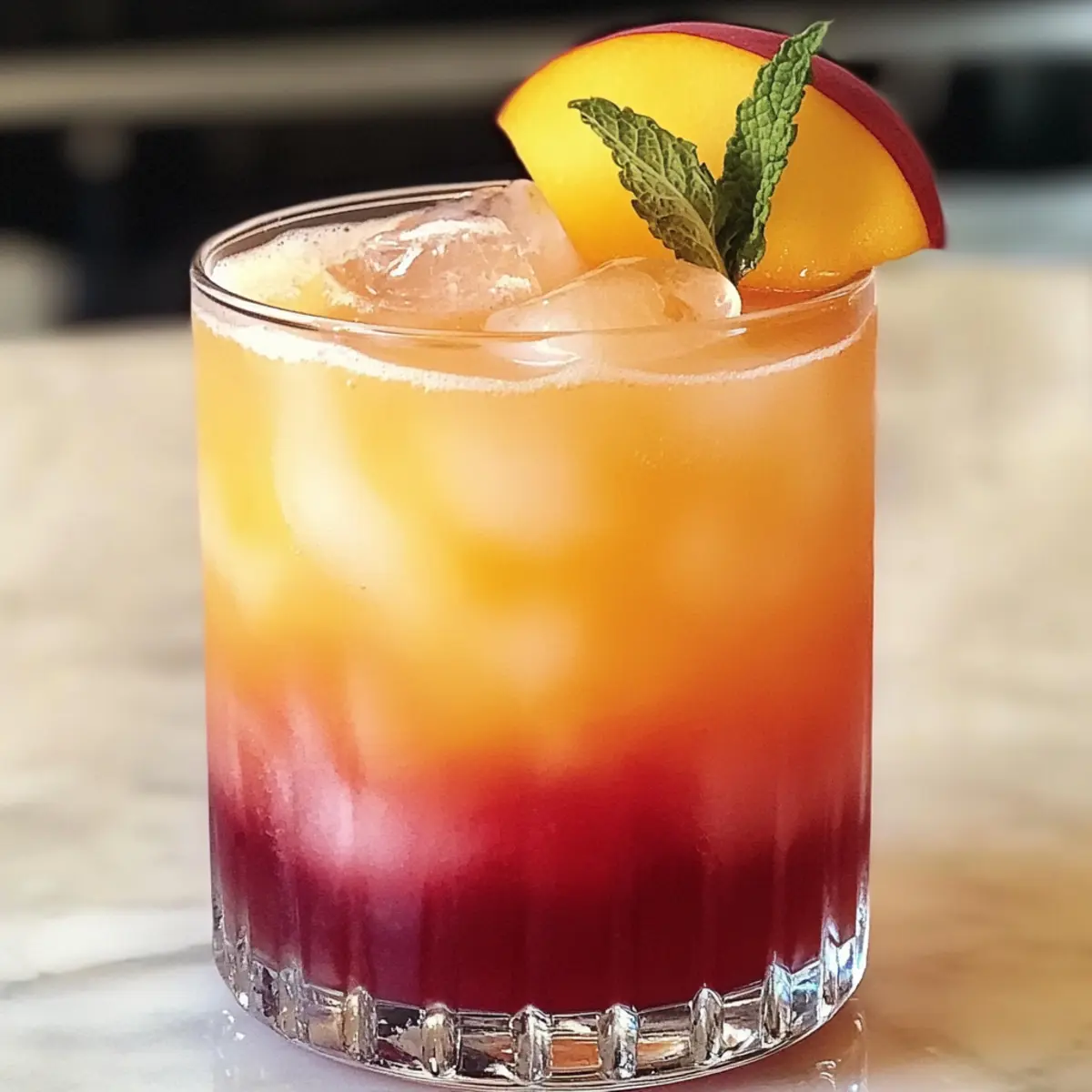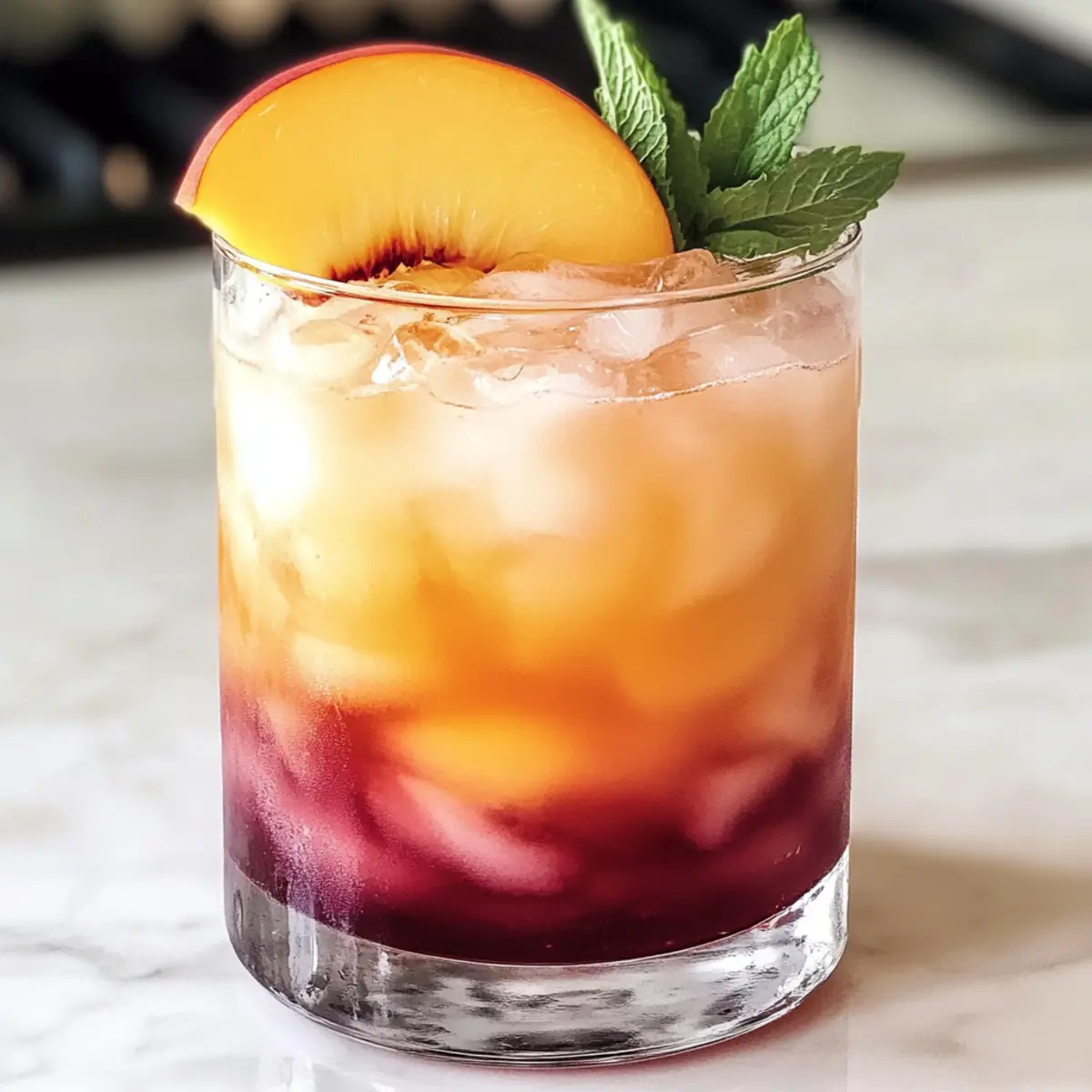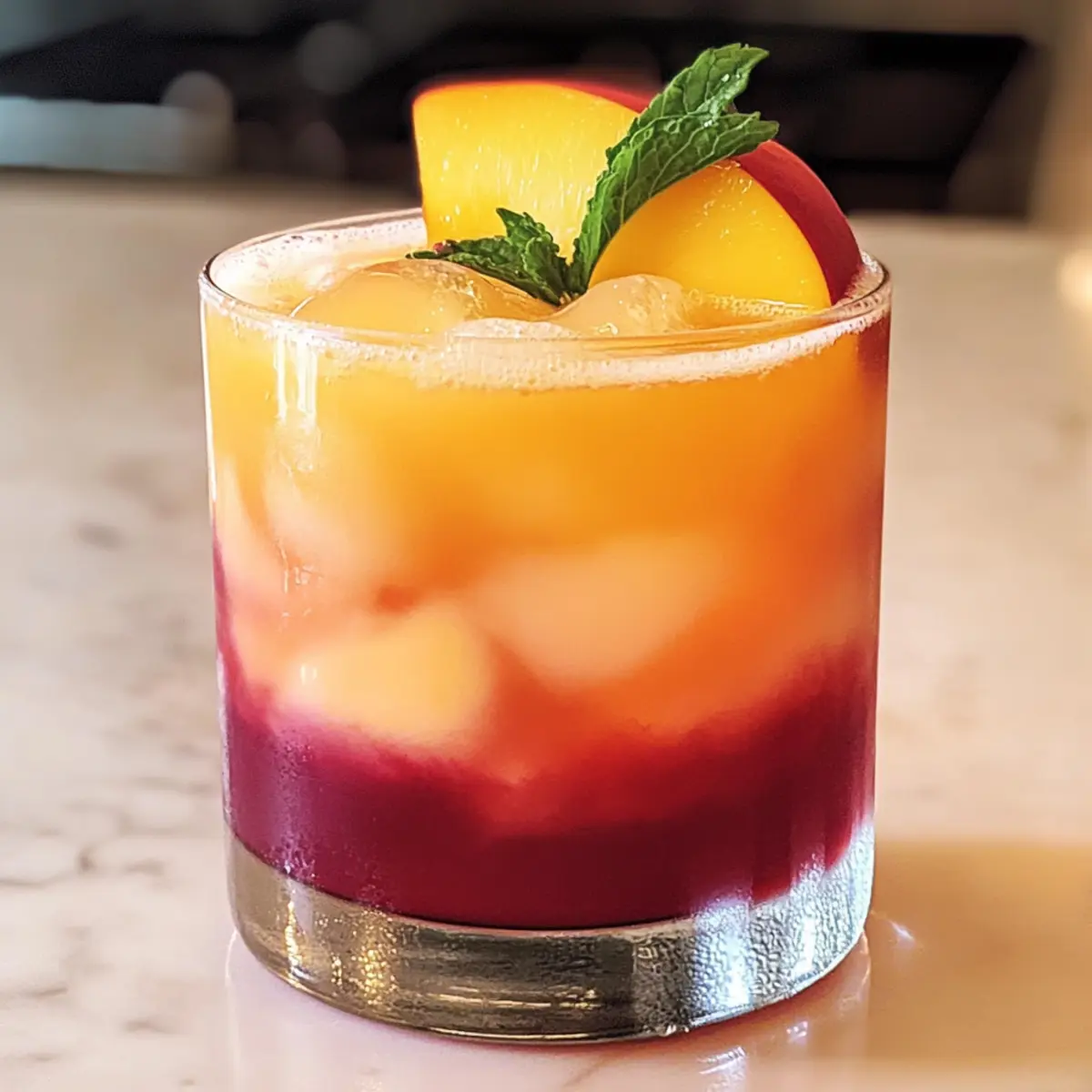 Jeden Sommer habe ich ein ganz besonderes Ritual: Ich zaubere ein Getränk, das nicht nur köstlich, sondern auch ein echter Hingucker ist. Der schichtige Pfirsich-Cocktail vereint die süße Wärme von Pfirsichlikör, die spritzige Frische von Orangensaft und den schwungvollen Kick von Silberrum, gekrönt von einer fruchtigen Cranberryschicht. Diese erfrischende Mischung ist perfekt für gesellige Nachmittage oder feucht-fröhliche Partys und lässt sich ganz schnell zubereiten – ohne Kochen! Stell dir vor, du servierst diesen schillernden Cocktail bei deinem nächsten Grillabend oder beim entspannten Zusammensitzen mit Freunden. Neugierig, wie du diesen Genuss selber zaubern kannst? Lass uns direkt in das Rezept eintauchen! Warum wirst du diesen Cocktail lieben? Erfrischend und köstlich: Dieser schichtige Pfirsich-Cocktail ist die ideale Durstlöschung an warmen Sommertagen. Visuelle Schönheit: Die atemberaubenden Schichten aus Farben machen ihn zu einem echten Highlight auf jeder Feier. Einfach zuzubereiten: Mit nur wenigen Zutaten und ohne Kochen schaffst du im Handumdrehen ein Getränk, das begeistert. Vielseitig: Du kannst mit verschiedenen Säften experimentieren und ihn sogar alkoholfrei genießen! Beeindruckend in der Präsentation: Garniert mit frischen Früchten, ist er nicht nur lecker, sondern sieht auch toll aus. Perfekt für jede Sommerveranstaltung! Schichtiger Pfirsich-Cocktail Zutaten • Ideal für deinen nächsten Sommerabend! Für den Cocktail • Pfirsichlikör – sorgt für die süße Wärme; eine Alternative wäre Aprikosenlikör für einen anderen fruchtigen Geschmack. • Frischer Orangensaft – bringt die spritzige Frische; kann auch durch Traubensaft oder Ananassaft ersetzt werden, wenn frische Orangen nicht verfügbar sind. • Silberrum – verleiht dem Cocktail eine sanfte Note; verwende für einen tropischen Twist Kokosrum. • Cranberrysaft-Cocktail – schafft die lebendige obere Schicht; für weniger Süße wähle eine leichtere Variante, aber vermeide reinen Cranberrysaft wegen der Säure. • Eiswürfel – halten den Cocktail kühl und helfen beim Schichten. Schritt-für-Schritt-Anleitung für den Schichtigen Pfirsich-Cocktail Step 1: Zutaten vorbereiten Sammle alle Zutaten für den schichtigen Pfirsich-Cocktail und stelle sicher, dass sie gut gekühlt sind. Dies erleichtert die Schichtung und sorgt für einen erfrischenden Genuss. Die Zubereitung wird einfacher, wenn du die Eiswürfel ebenfalls im Voraus parat hast. Step 2: Glas vorbereiten Nimm ein tumbler Glas und fülle es etwa zur Hälfte mit Eiswürfeln. Achte darauf, dass die Eiswürfel gut verteilt sind, um eine stabile Grundlage für die Schichten zu bieten. Das Glas sollte kühl sein, um den Cocktail frisch zu halten und die Schichtung zu unterstützen. Step 3: Orangensaft hinzufügen Gieße langsam den frischen Orangensaft über die Eiswürfel. Halte das Glas schräg oder gieße langsam, damit der Orangensaft sanft auf die Eiswürfel trifft. Du solltest eine klare untere Schicht in leuchtendem Orange sehen, die den Grund für deinen schichtigen Pfirsich-Cocktail bildet. Step 4: Pfirsichlikör einfüllen Gieße vorsichtig den Pfirsichlikör über den Rücken eines Löffels, damit er sanft auf dem Orangensaft liegt. Achte darauf, dass sich die Schichten nicht vermischen, damit die visuelle Effekte erhalten bleiben. Du wirst eine schöne, süße Pfirsischschicht sehen, die sich deutlich über dem Orangensaft abzeichnet. Step 5: Silberrum hinzugeben Langsam und vorsichtig gießen, kannst du nun den Silberrum für den nächsten Layer hinzufügen. Verwende wieder den Rücken des Löffels, um eine gleichmäßige Schicht zu schaffen. Der Rum wird eine transparente Schicht zwischen dem Pfirsichlikör und dem nächsten Layer bilden – das sieht nicht nur toll aus, sondern schmeckt auch himmlisch. Step 6: Cranberrysaft abschließen Für die oberste Schicht des schichtigen Pfirsich-Cocktails gieße vorsichtig den Cranberrysaft-Gemisch über den Löffel oder an die Seite des Glases. Dies hilft, die Schichten zu bewahren und einen wunderschönen Abschluss in der tiefroten Farbe zu schaffen. Der Cocktail sollte jetzt atemberaubend aussehen. Step 7: Garnitur anbringen Dekoriere deinen schichtigen Pfirsich-Cocktail mit einer frischen Pfirsichscheibe am Glasrand. Du kannst auch einen Zweig Minze oder eine Drehung von Orangenschale hinzufügen, um die Präsentation zu verfeinern. Diese kleinen Extras machen dein Getränk nicht nur lecker, sondern auch ein echter Blickfang. Step 8: Servieren und genießen Lass deinen Gäste nicht zu lange warten; serviere den schichtigen Pfirsich-Cocktail sofort zum Genießen. Um die Aromen zu harmonisieren, rühre den Cocktail vorsichtig leicht um, bevor du ihn trinkst. So wird jeder Schluck zu einem erfrischenden Erlebnis voller fruchtiger Geschmäcker. Schichtiger Pfirsich-Cocktail: Vorbereitung für stressfreie Sommerabende Bereite deinen schichtigen Pfirsich-Cocktail im Voraus vor und genieße stressfreie Sommerabende! Du kannst die Zutaten bis zu 24 Stunden vorher kühlen; so sparst du Zeit, während du deinen Cocktail zu einem echten Highlight machst. Fülle die Eiswürfel in dein Glas und gieße den Orangensaft sowie den Pfirsichlikör in separaten Behältern an, damit du bei Bedarf nur noch schichten musst. Dadurch bleibt die Qualität optimal und die Schichten schichten sich, wie sie sollen. Wenn es Zeit ist, zu servieren, bring einfach den Silberrum und den Cranberrysaft hinzu – ein eleganter und erfrischender Cocktail, der jederzeit bereit ist, deine Gäste zu begeistern! Variationen des Schichtigen Pfirsich-Cocktails Fühl dich frei, diesen köstlichen Cocktail nach deinen eigenen Vorlieben anzupassen und zu genießen! Alkoholfrei: Verwandle ihn in einen erfrischenden Mocktail, indem du den Alkohol durch Pfirsichnektar oder eine Mischung aus Säften ersetzt. Tropische Note: Tausche den Silberrum gegen Kokosrum aus, um deinem Cocktail einen exotischen Tou