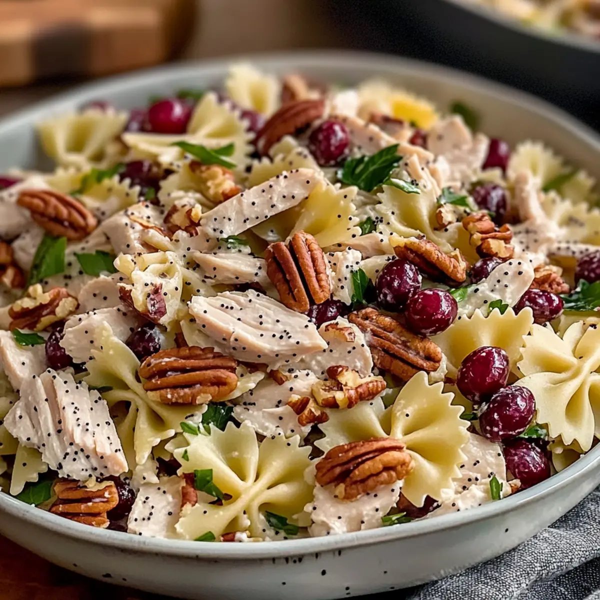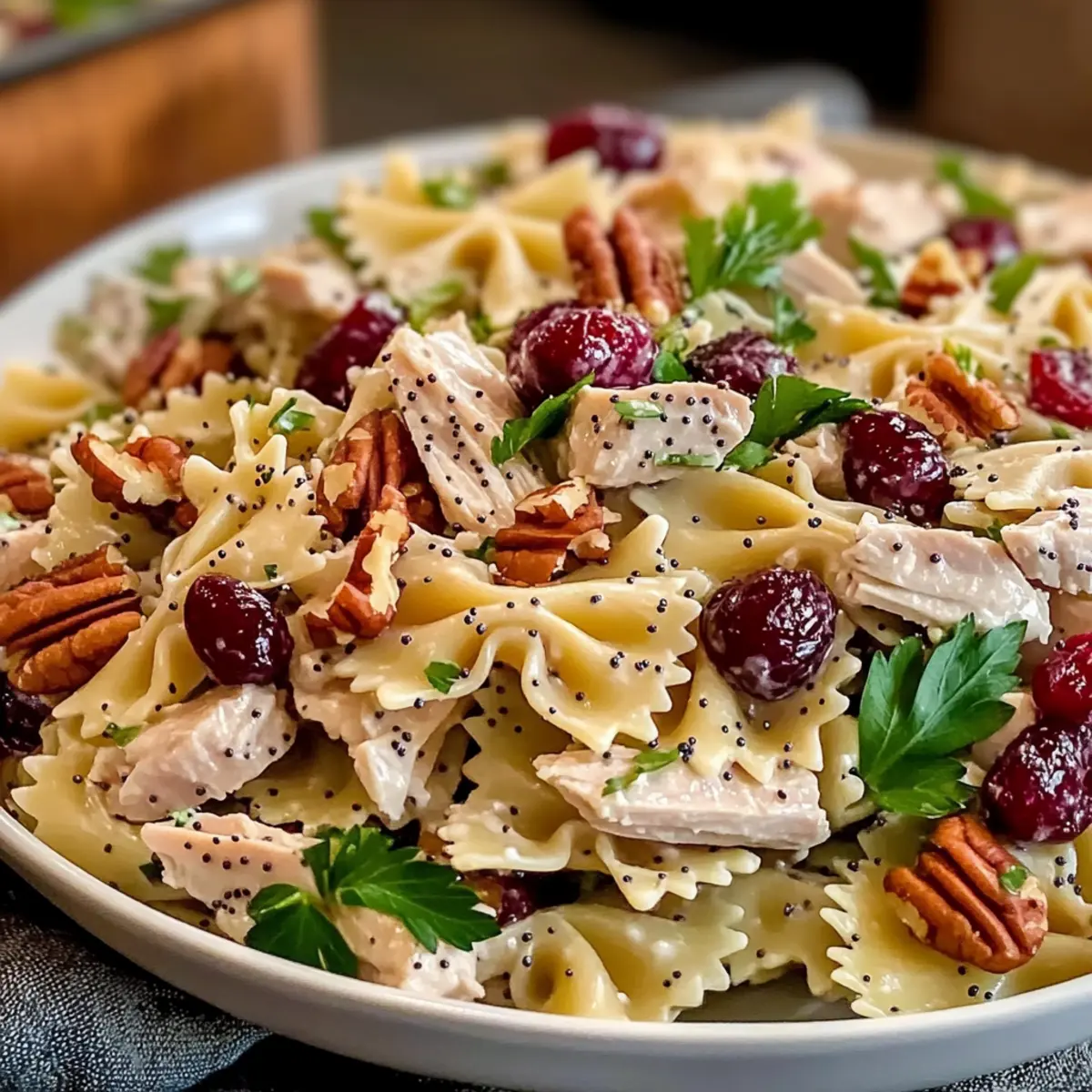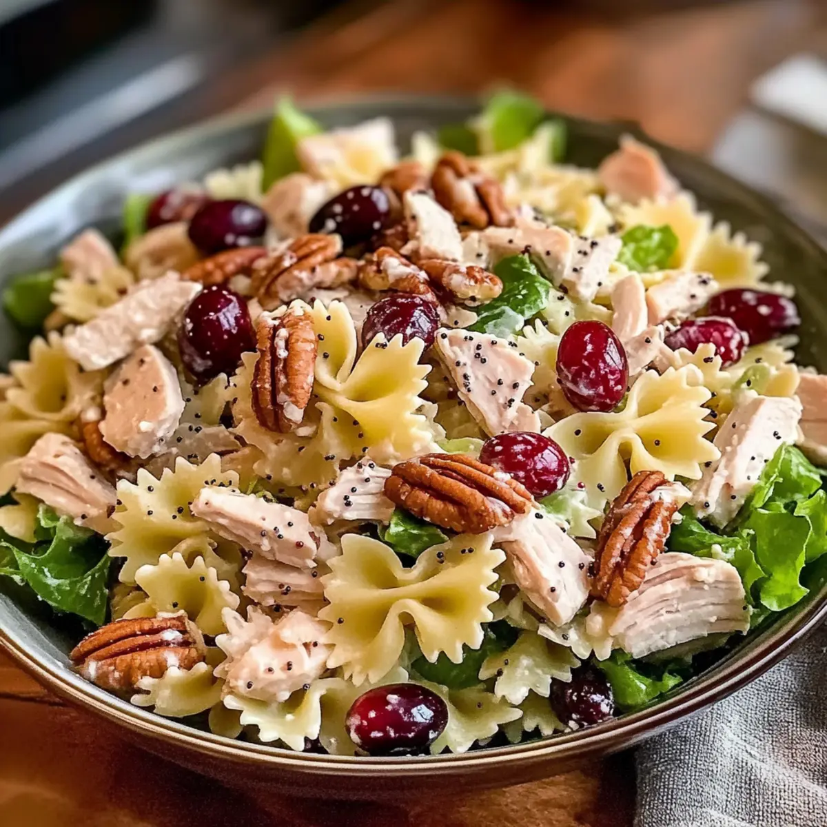 Als ich neulich am Küchentisch saß und darüber nachdachte, was ich für unsere nächste Grillparty zubereiten könnte, kam mir der Gedanke: Schwierig wird es nicht, wenn ich meinen Schmetterlings-Nuss-Cranberry-Pasta-Salat mache. Diese erfrischende Sommerversion eines klassischen Salats vereint die süß-sauren Aromen von Cranberries mit dem knusprigen Biss von Nüssen und dem zarten Hühnchen. Mit nur 20 Minuten Zubereitungszeit ist dieses Rezept nicht nur schnell, sondern auch perfekt für Potluck-Events und Grillabende im Freien. Der Schmetterlings-Nuss-Cranberry-Pasta-Salat lässt sich wunderbar vorbereiten und wird im Kühlschrank sogar noch besser, wenn sich die Aromen entfalten. Bist du bereit, den ultimativen Mittagessen- oder Grillbegleiter zuzubereiten, den jeder lieben wird? Warum wirst du diesen Salat lieben? Frische Aromen: Der Schmetterlings-Nuss-Cranberry-Pasta-Salat kombiniert das Beste aus süßen Cranberries und knackigen Nüssen. Schnelle Zubereitung: In nur 20 Minuten hast du eine köstliche Beilage fertig, ideal für spontane Grillpartys. Perfekt für Partys: Seine attraktive Optik und der erfrischende Geschmack machen ihn zum Star auf jedem Potluck oder Familienessen. Vielseitige Anpassung: Du kannst Zutaten nach Belieben tauschen, wie das Hühnchen gegen eine vegetarische Option, um Abwechslung zu schaffen. Zeitersparnis: Bereite den Salat einen Tag vorher zu, um Stress am Veranstaltungstag zu vermeiden – er wird sogar noch besser, wenn er etwas steht! Zutaten für Schmetterlings-Nuss-Cranberry-Pasta-Salat • Entdecke die besten Zutaten für ein erfrischendes und schnelles Gericht! Für die Pasta Schmetterlingsnudeln – bilden die Basis des Salats; auch Penne oder Rotini können verwendet werden. Gekochtes Hühnchen – fügt Protein hinzu und macht den Salat sättigender; kann durch gekochtes Hähnchen ersetzt oder ganz weggelassen werden. Für die Frische Würfelige Sellerie – sorgt für einen knackigen Biss; kann auch durch Paprika ersetzt werden. Getrocknete Cranberries – bringen einen süß-sauren Geschmack; ersetzbar durch Rosinen oder andere Trockenfrüchte. In Scheiben geschnittene Frühlingszwiebeln – verleihen eine milde Zwiebelnote; auch Schnittlauch oder Schalotten eignen sich gut. Für den Crunch Gehackte Walnüsse/Mandeln – sorgen für eine nussige Note und zusätzliche Textur; jede Art von gerösteten Nüssen ist eine tolle Alternative. Für das Dressing Mohnseedressing – gibt dem Salat Cremigkeit und Geschmack; ein Vinaigrette kann für eine leichtere Variante verwendet werden. Mayonnaise – sorgt für eine cremige Konsistenz im Dressing; kann durch griechischen Joghurt ersetzt werden, um es leichter zu machen. Apfelessig – fügt eine frische Säure hinzu; Zitronensaft kann ebenfalls verwendet werden. Entdecke, wie diese Zutaten in meinem Schmetterlings-Nuss-Cranberry-Pasta-Salat harmonieren! Schritt-für-Schritt-Anleitungen für Schmetterlings-Nuss-Cranberry-Pasta-Salat Schritt 1: Nüsse rösten Erhitze eine trockene Pfanne bei mittlerer Hitze und füge die gehackten Walnüsse oder Mandeln hinzu. Röste sie für etwa 3 bis 5 Minuten, bis sie aromatisch und leicht goldbraun sind, und achte darauf, regelmäßig umzurühren, um ein Anbrennen zu verhindern. Lasse die Nüsse anschließend auf einem Teller abkühlen. Schritt 2: Pasta kochen Bringe einen großen Topf mit gesalzenem Wasser zum Kochen. Füge die Schmetterlingsnudeln hinzu und koche sie gemäß der Packungsanweisung bis sie al dente sind, das dauert in der Regel etwa 8 bis 10 Minuten. Gieße die Pasta anschließend in ein Sieb ab und spüle sie sofort mit kaltem Wasser ab, um den Garprozess zu stoppen. Schritt 3: Dressing zubereiten Nimm eine kleine Schüssel und kombiniere das Mohnseedressing, die Mayonnaise und den Apfelessig. Falls gewünscht, füge etwas Zucker hinzu, um die Säure auszugleichen. Vermische alles gut, bis eine homogene, cremige Konsistenz entsteht, die dem Schmetterlings-Nuss-Cranberry-Pasta-Salat Geschmack und Würze verleiht. Schritt 4: Zutaten kombinieren In einer großen Schüssel vermischt du die abgekühlte Pasta mit dem gekochten Hühnchen, dem gewürfelten Sellerie, den getrockneten Cranberries und den geschnittenen Frühlingszwiebeln. Stelle sicher, dass alle Zutaten gleichmäßig verteilt sind, damit jeder Biss voller Aromen ist. Schritt 5: Dressing hinzufügen Gieße das vorbereitete Dressing über den Schmetterlings-Nuss-Cranberry-Pasta-Salat und tossiere alles vorsichtig, bis die Nudeln und anderen Zutaten gleichmäßig mit dem Dressing überzogen sind. Achte darauf, den Salat nicht zu zerdrücken, damit die Texturen erhalten bleiben. Schritt 6: Kühlen und Servieren Decke die Schüssel mit Frischhaltefolie ab und stelle den Salat für mindestens eine Stunde in den Kühlschrank. Dadurch können die Aromen gut durchziehen. Vor dem Servieren rühre den Salat nochmals um und passe gegebenenfalls die Konsistenz mit etwas zusätzlichem Dressing an, falls nötig. Was passt gut zu Schmetterlings-Nuss-Cranberry-Pasta-Salat? Lass dich von köstlichen Begleitgerichten inspirieren, um dein Sommeressen perfekt zu machen. Gegrilltes Hühnchen: Saftiges Hühnchen ergänzt den Salat ideal und bringt zusätzlichen Proteinreichtum. Frischer Gartensalat: Knackige Blattsalate mit einem leichten Dressing bieten einen fruchtigen Kontrast zur Pasta. Krustenbrot: Warme, knusprige Brötchen verleihen deinem Essen Textur und Harmonie mit den Aromen des Salats. Zitronenlimonade: Ein erfrischendes Getränk, das die süß-sauren Noten des Salats aufgreift und die Geschmacksnerven anregt. Blaubeer-Muffins: Diese süßen Leckereien bieten einen wunderbaren Abschluss und harmonieren perfekt mit dem fruchtigen Pasta-Salat. Gegrillte Gemüse: Kombiniere mit buntem, gegrilltem Gemüse, um eine farbenfrohe und gesunde Beilage zu kreieren. Erdbeer-Dessert: Ein leichtes Erdbeer-Dessert rundet das Mahl ab und bringt ein fruchtiges Finale zu deinem Sommeressen. Aufbewahrungstip