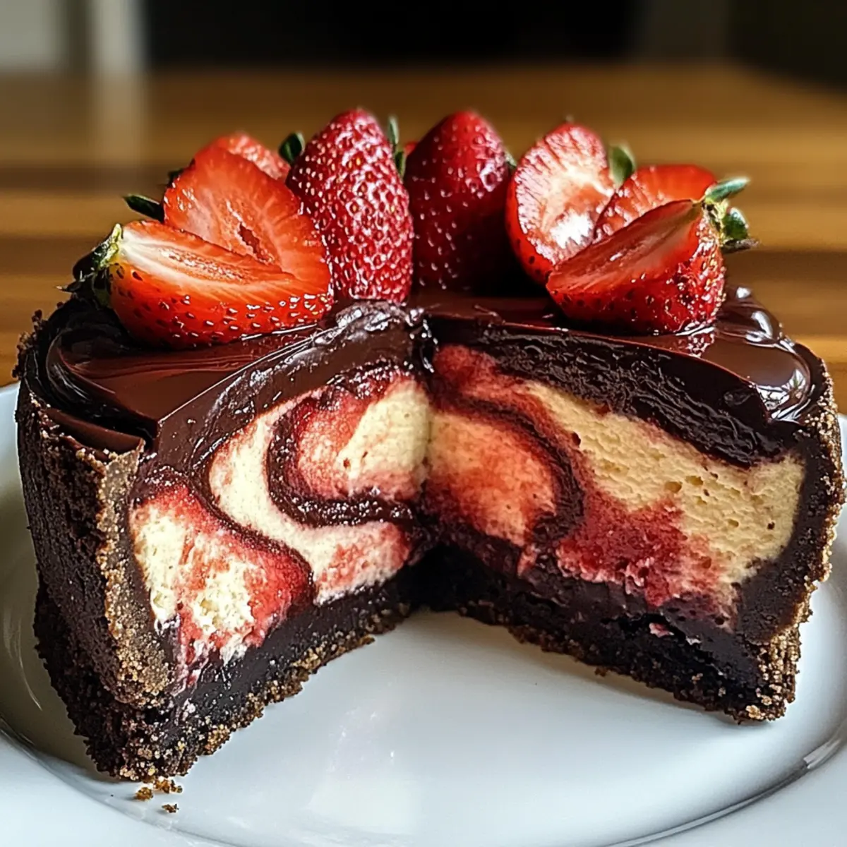 Ein köstlicher Schokoladen-Erdbeerwirbel-Käsekuchen, der Schokolade und Erdbeeren vereint - ideal für jeden Anlass.