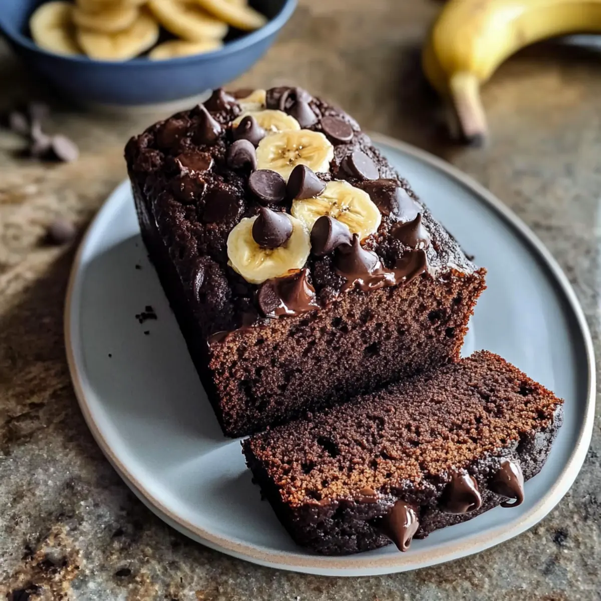 Das Aroma von frisch gebackenem Brot vermischt mit einer wärmenden Note von Espresso kann alles verändern; es ist wie eine Umarmung für die Seele. Heute teile ich mit euch mein ganz besonderes Rezept: Schokoladen-Espresso-Bananenbrot. Dieses saftige Brot verbindet die Süße reifer Bananen mit kräftigem Schokoladengeschmack und einem Hauch von Espresso, der die Aromen perfekt ergänzt. Die Zubereitung ist kinderleicht und dauert nur wenige Minuten – ideal für alle, die eine süße Belohnung wünschen, ohne viel Aufwand. Plus, es ist ein echter Publikumsliebling, der sich hervorragend als Snack oder als krönenden Abschluss für jedes Essen eignet. Bist du bereit, deine Küche in einen Ort voller köstlicher Düfte zu verwandeln? Lass uns gemeinsam backen! Warum wird dir dieses Rezept gefallen? Einfachheit: Die Zubereitung des Schokoladen-Espresso-Bananenbrots ist kinderleicht und erfordert nur grundlegende Backfähigkeiten. Reiche Aromen: Die Kombination aus reifen Bananen, intensivem Schokoladengeschmack und einem Hauch von Espresso sorgt für ein unvergleichliches Geschmackserlebnis, das du lieben wirst. Vielfältig: Du kannst das Rezept ganz nach deinem Geschmack anpassen, indem du Nüsse oder verschiedene Schokoladensorten hinzufügst – die Möglichkeiten sind endlos! Zeitersparnis: Mit nur wenigen Schritten und einer Backzeit von etwa 65 Minuten ist dieses Rezept perfekt für alle, die schnell etwas Leckeres zaubern möchten. Crowd-Pleaser: Dieses Bananenbrot ist ein Hit auf jeder Kaffeemaschine oder beim Nachmittagskaffee – jeder wird nach einem Stück fragen! Wenn du auf der Suche nach mehr köstlichen Rezepten bist, schau dir auch mein einfaches Bananenbrot an, das perfekt für Anfänger ist! Schokoladen-Espresso-Bananenbrot Zutaten Zutaten • Für das Backen: Allzweckmehl – sorgt für die Struktur des Brotes; kann durch glutenfreies Mehl ersetzt werden, um eine glutenfreie Variante zu erhalten. Kakaopulver – verleiht einen intensiven Schokoladengeschmack; am besten kein Ersatz verwenden, außer bei Verwendung von niederländischem Kakao. Backsoda – fungiert als Treibmittel; sicherstellen, dass es frisch ist für die besten Ergebnisse. Koshiersalz – intensiviert die Aromen; kann mit Tafelsalz ersetzt werden, aber die Menge leicht reduzieren. Espressopulver – verstärkt den Schokoladengeschmack; optional nach Geschmack erhöhen, kann auch weggelassen werden, wenn nicht vorhanden. Olivenöl – sorgt für Feuchtigkeit; kann durch pflanzliches Öl oder geschmolzenes Kokosöl ersetzt werden. Brauner Zucker – fügt Feuchtigkeit und Geschmacksintensität hinzu; hellen oder dunklen braunen Zucker können gleichwertig verwendet werden. Kristallzucker – süßt das Brot; keine Ersatzoptionen empfohlen. Eier – binden die Zutaten zusammen; vegane Alternativen sind nicht getestet, aber Apfelmus oder Aquafaba könnten genutzt werden. Vanilleextrakt – sorgt für Geschmacksvielfalt; hochwertige Extrakte bieten die besten Ergebnisse. Sauerrahm – erhält die Feuchtigkeit; griechischer Joghurt kann als Ersatz verwendet werden. Reife Bananen – sorgen für natürliche Süße und Feuchtigkeit; überreife Bananen sind am besten geeignet. Dunkle und halbsüße Schokoladenstückchen – sorgen für schokoladige Stückchen im Brot; vor dem Hinzufügen mit etwas Mehl bestäuben, um ein Sinken zu verhindern. Optionale Dekoration – Bananenscheiben und Kristallzucker können für eine dekorative und köstliche Topping-Note sorgen. Mit diesem Rezept wird dein Schokoladen-Espresso-Bananenbrot sicher zu einem Lieblingssnack! Schritt-für-Schritt-Anleitung für Schokoladen-Espresso-Bananenbrot Step 1: Ofen vorheizen und Backform vorbereiten Heize deinen Ofen auf 175 °C (350 °F) vor. Fette eine 9×5 Zoll große Kastenform mit etwas Olivenöl oder lege sie mit Backpapier aus. Diese Vorbereitung sorgt dafür, dass dein Schokoladen-Espresso-Bananenbrot beim Backen nicht anklebt und leicht aus der Form gleitet. Step 2: Trockenenzutaten vermengen In einer mittelgroßen Schüssel mische das Allzweckmehl, Kakaopulver, Backsoda, Koshiersalz und Espressopulver gründlich. Verwende einen Schneebesen, um Klumpen zu vermeiden und die Zutaten gleichmäßig zu vermischen. Diese Mischung bildet die trockene Basis für dein Bananenbrot. Step 3: Feuchte Zutaten verrühren In der Schüssel einer Rührmaschine mische das Olivenöl mit dem braunen und Kristallzucker, bis die Konsistenz glatt ist. Füge die Eier nacheinander hinzu und rühre nach jeder Zugabe gut um. Anschließend gib Vanilleextrakt und Sauerrahm hinzu, bis alles gut vermischt ist. Dies sorgt für die feuchte und aromatische Grundlage deines Schokoladen-Espresso-Bananenbrots. Step 4: Bananen pürieren und einarbeiten Schäle die reifen Bananen und püriere sie mit einer Gabel oder einem Kartoffelstampfer, bis sie schön cremig sind. Füge das Bananenpüree zur Mischung aus feuchten Zutaten hinzu und falte es vorsichtig hinein. Die Banane sorgt für eine zusätzliche natürliche Süße und Feuchtigkeit in deinem Brot. Step 5: Trockene Zutaten einarbeiten Gib die Mischung aus trockenen Zutaten nach und nach zu den feuchten Zutaten hinzu. Rühre vorsichtig mit einem Teigschaber oder Löffel, bis gerade so alles vermischt ist, ohne das Brot zu übermischen. Dies hilft, ein zartes und luftiges Schokoladen-Espresso-Bananenbrot zu erzielen. Step 6: Schokoladenstückchen hinzufügen Bestäube die dunklen und halbsüßen Schokoladenstückchen leicht mit Mehl, um ein Sinken in den Teig zu verhindern. Füge sie dann vorsichtig zum Teig hinzu und falte diese unter, bis sie gleichmäßig verteilt sind. Dies gibt dem Bananenbrot seinen schokoladigen Charakter und knusprige Stücke. Step 7: Teig in die Form füllen Gieße den Bananenteig in die vorbereitete Kastenform und glätte die Oberseite mit einem Spatel. Optional kannst du die restlichen Schokoladenstückchen darüber streuen oder ein paar Bananenscheiben auf die Oberfläche legen, um ein