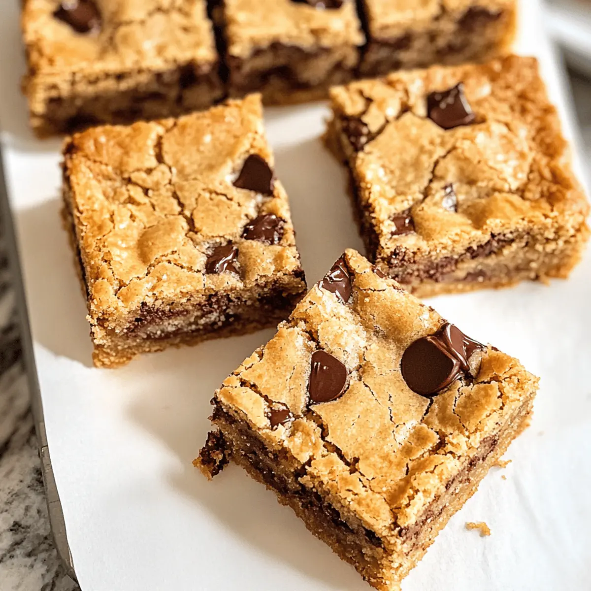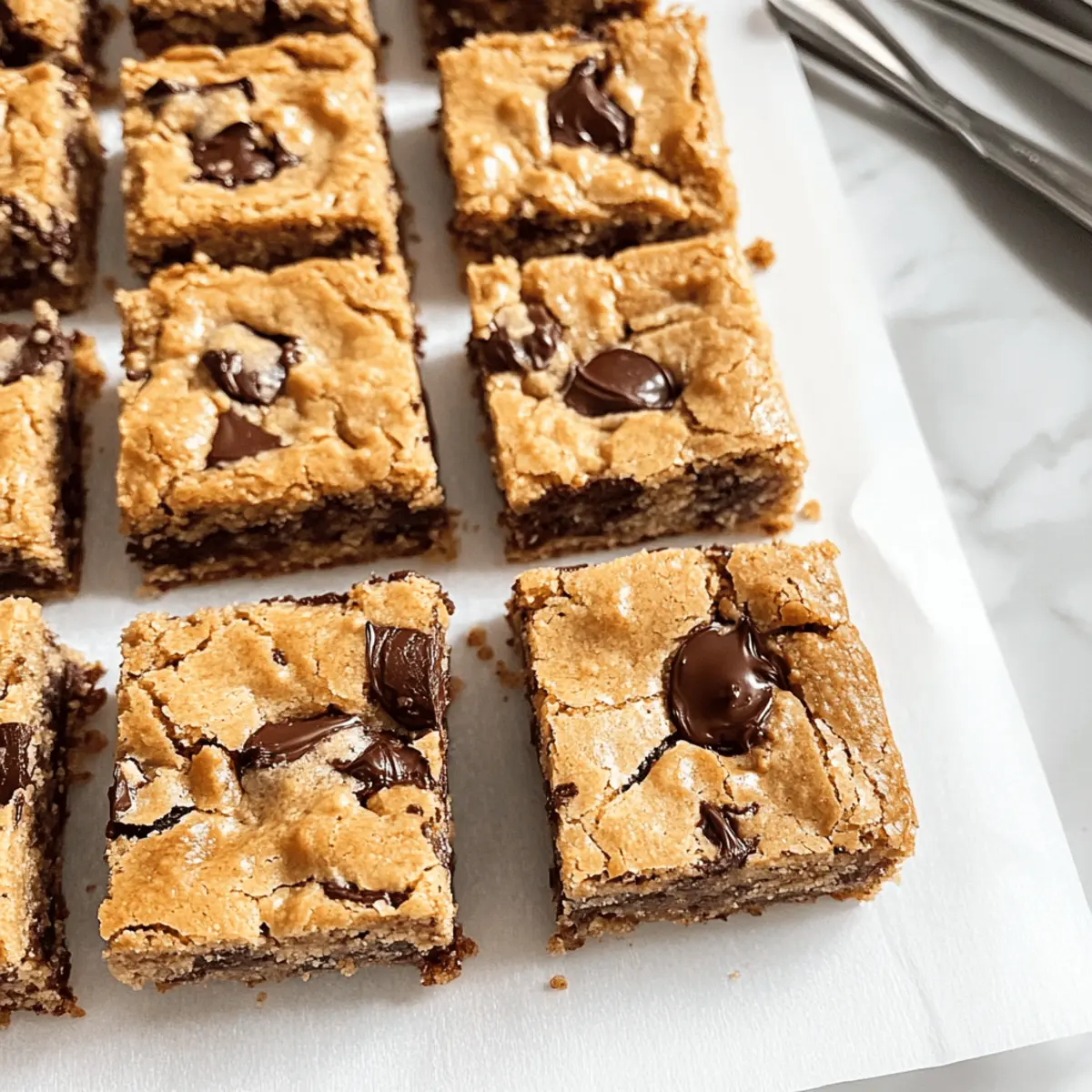 Die goldene Farbe, die aus der Pfanne aufsteigt, erinnert an Sonnenstrahlen, die den Morgen kitzeln. Der verführerische Duft von braunem Butter verwandelt meine Küche in ein kleines Himmelreich. Mit diesen Schokoladenstückchen-Kekse-Butter-Riegel bringe ich Gebäck auf ein ganz neues Niveau! Die Kombination aus weichen, zähen Innenleben und knusprigen Kanten, verstärkt durch die nussige Note der braunen Butter, wird jeden Schokoladenliebhaber in ihren Bann ziehen. Und das Beste daran? Diese schnelle Dessertvariante benötigt kein Kühlen des Teigs – perfekt, wenn der süße Zahn ungeduldig wird. Warum nicht gleich heute damit loslegen? Wer weiß, vielleicht entdecke ich mit diesen Riegeln meine neue Lieblingsnascherei! Warum sind diese Riegel so besonders? Einzigartige Aromen: Der Geschmack von brauner Butter verwandelt diese Riegel in ein wahres Geschmackserlebnis. Die nussigen Noten harmonieren perfekt mit den schmelzenden Schokoladenstückchen. Schnelle Zubereitung: Perfekt für alle, die nicht lange warten möchten! In nur wenigen Schritten und ohne Kühlzeit sind diese Riegel bereit. Vielseitige Variation: Ob mit Nüssen oder Trockenfrüchten, die Variationen sind endlos. Du kannst Deiner Kreativität freien Lauf lassen und verschiedene Zutaten ausprobieren! Köstlicher Genuss für jeden Anlass: Diese Riegel sind die ideale süße Überraschung für Familie und Freunde. Sie werden sicher beeindrucken! Praktische Aufbewahrung: Auch ohne zusätzliche Aufbewahrungstips sind diese Riegel bis zu drei Tage frisch. Perfekt für spontane Gelüste! Schokoladenstückchen-Kekse-Butter-Riegel Zutaten Für den Teig: • Ungesalzene Butter (150g) – sorgt für reichhaltigen Geschmack; kann durch gesalzene Butter ersetzt werden, aber dann die zugesetzte Salzmenge reduzieren. • Braune Butter (110g) – verleiht einen tiefen, nussigen Geschmack; wird durch das Rösten der ungesalzenen Butter hergestellt. • Zucker (220g) – süßt die Riegel und sorgt für eine knusprige Oberfläche. • Brauner Zucker (60g) – fügt Feuchtigkeit und einen leichten Karamellgeschmack hinzu. • Weißes Mehl (300g) – bildet die Basisstruktur der Riegel; bei Glutenunverträglichkeit sind keine Zutaten ersetzbar. • Backpulver (½ TL) – sorgt für das Aufgehen der Riegel und hält sie leicht. • Salz (½ TL) – verstärkt alle Aromen, besonders bei süßen Rezepten wichtig. • Schokoladenstückchen (220g) – Hauptbestandteil für Textur und Geschmack; kann durch Schokoladentropfen oder unterschiedliche Schokoladensorten ersetzt werden. Step-by-Step Instructions für Schokoladenstückchen-Kekse-Butter-Riegel Step 1: Butter rösten Beginne, indem du die ungesalzene Butter in einem kleinen Topf bei mittlerer Hitze schmilzt. Rühre regelmäßig um, bis die Butter eine goldbraune Farbe annimmt und einen nussigen Aroma verströmt, etwa 5 bis 7 Minuten. Achte darauf, die Butter nicht zu verbrennen. Nimm den Topf vom Herd und lass die braune Butter etwas abkühlen. Step 2: Zutaten vermengen In einer großen Schüssel kombinierst du die abgekühlte, braune Butter mit dem Granulated Sugar, dem braunen Zucker und dem Salz. Misch alles gut mit einem Schneebesen oder einem Handrührgerät, bis eine homogene Masse entsteht. Die Farben sollten gut vermischt und die Kristalle leicht aufgelöst sein, was etwa 2 bis 3 Minuten dauert. Step 3: Trockene Zutaten hinzufügen Füge die trockenen Zutaten, das Mehl und das Backpulver, nach und nach zur Zuckermischung hinzu. Vermenge die Zutaten vorsichtig mit einem Spatel, bis sich die Masse gerade so zusammenfügt. Vermeide es, zu stark zu rühren, denn du möchtest einen zähen Teig für die Schokoladenstückchen-Kekse-Butter-Riegel behalten. Step 4: Schokoladenstückchen einarbeiten Jetzt kommen die Schokoladenstückchen dazu. Füge sie direkt in den Teig und hebe sie mit einem Spatel unter, bis sie gleichmäßig verteilt sind. Nimm dir Zeit, damit die leckeren Stückchen überall im Teig verteilt sind, was etwa 1 bis 2 Minuten in Anspruch nimmt. Step 5: Teig in die Form geben Heize den Ofen auf 175 Grad Celsius vor und lege eine 20 cm x 20 cm große Backform mit Backpapier aus. Gib den Teig in die vorbereitete Form und drücke ihn gleichmäßig in die Ecken, sodass die Oberfläche glatt ist. Die gleichmäßige Verteilung ist wichtig, damit die Schokoladenstückchen-Kekse-Butter-Riegel gleichmäßig backen. Step 6: Backen Schiebe die Backform in den vorgeheizten Ofen und backe die Riegel für etwa 20 Minuten. Achte darauf, dass die Kanten leicht goldbraun werden und die Oberfläche fest aussieht, aber die Mitte noch weich ist. Die perfekte Konsistenz zeigt sich, wenn ein Fingerdruck einen leichten Widerstand bietet. Step 7: Abkühlen und schneiden Nimm die Backform aus dem Ofen und lasse die Riegel für etwa 10 Minuten in der Form abkühlen. Danach kannst du sie aus der Form heben, indem du das Backpapier anhebst, und vorsichtig in Quadrate schneiden. Lass sie vor dem Servieren vollständig abkühlen, um die perfekte Textur zu erhalten. Schokoladenstückchen-Kekse-Butter-Riegel Variationen Lass deiner Kreativität freien Lauf und passe das Rezept nach deinem Geschmack an – die Möglichkeiten sind endlos! Dairy-Free: Verwende pflanzliche Butter oder Kokosöl, um eine milchfreie Variante zu zaubern, die ebenso köstlich ist. Nussig: Füge gehackte Nüsse wie Walnüsse oder Mandeln hinzu für einen herzhaften Crunch und zusätzlichen Protein. Fruchtig: Integriere getrocknete Früchte wie Cranberries oder Aprikosen, um eine süße Note und interessante Textur zu verleihen. Gewürzboost: Ein Schuss Zimt oder Muskatnuss bringt eine winterliche Gemütlichkeit in deinen Teig – perfekt für kalte Tage. Espresso-Genuss: Ein Teelöffel Espressopulver im Teig hebt den schokoladigen Geschmack und bringt eine aufregende Tiefe ins Spiel. Karamellüberraschung: Füge Karamellstückchen hinzu, um eine dekadente Note zu erreichen, die jedes Stück unwiderstehlich macht. Geringerer Zuc