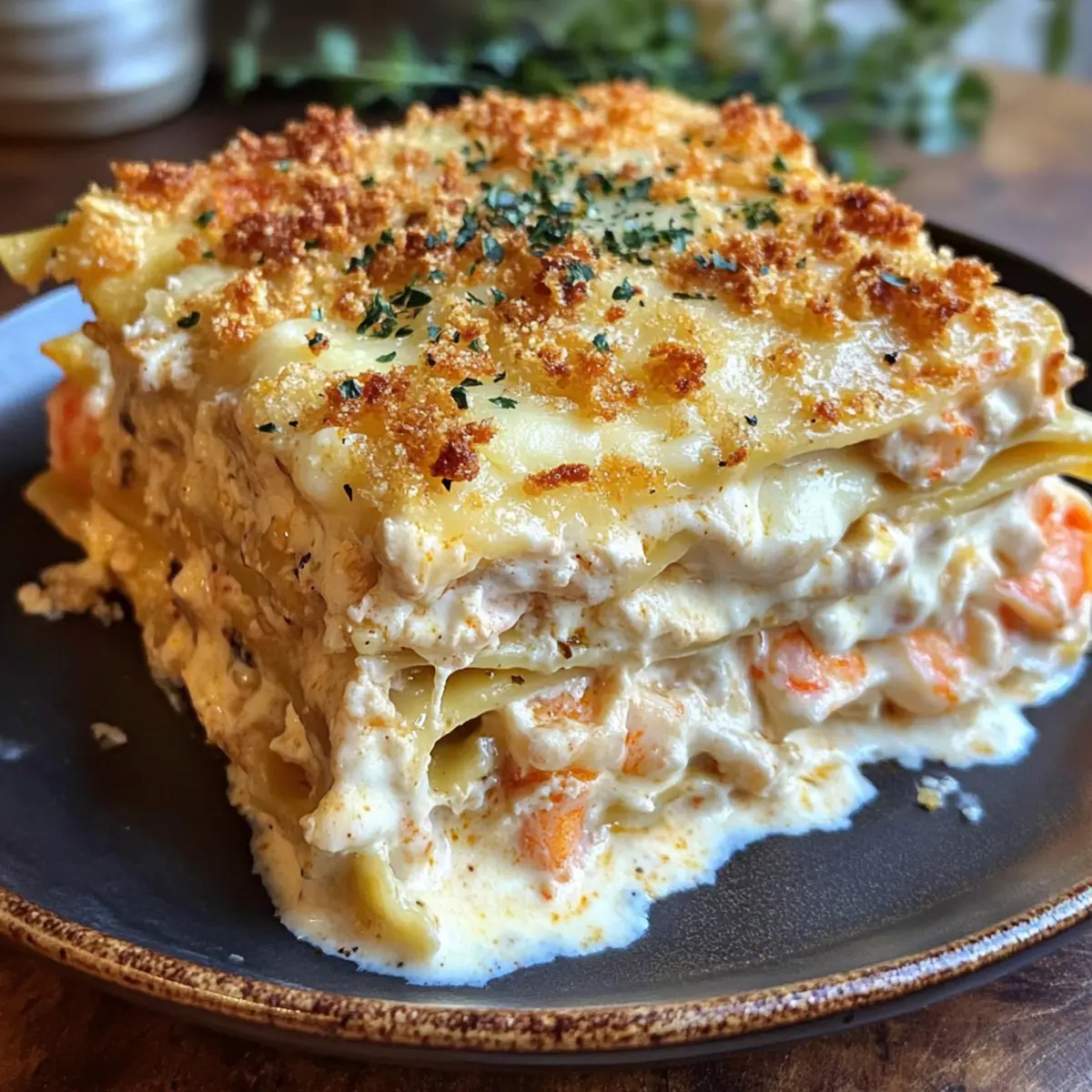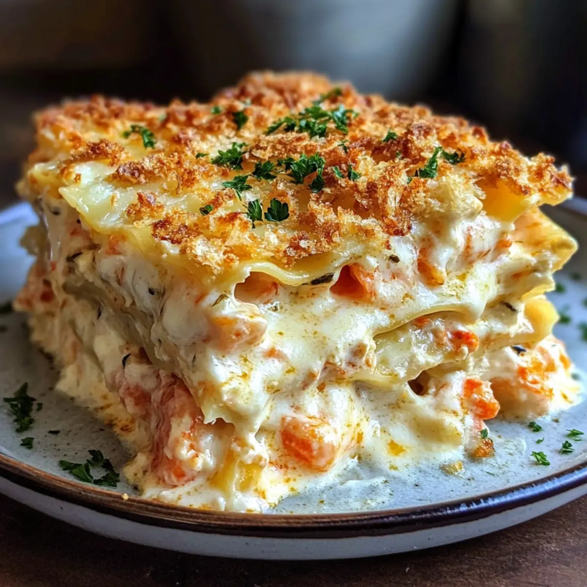 Als ich das erste Mal die Idee hatte, eine Shrimp Crab Lasagne zuzubereiten, war ich skeptisch. Wie würde sich diese köstliche Mischung aus frischem Meeresfrüchten und Käse in einer klassischen italienischen Lasagne machen? Aber ich kann euch sagen, das Ergebnis ist ein absoluter Gaumenschmaus! Diese cremige Lasagne kombiniert zarte Garnelen und reichhaltiges Krabbenfleisch in einer luxuriösen Sauce aus Mozzarella, Ricotta und Parmesan. Ein schneller Genuss, der sich ideal für besondere Anlässe oder auch entspannte Abende eignet. Durch ihre einfache Zubereitung und die Möglichkeit, sie schon am Vorabend vorzubereiten, wird dieses Rezept nicht nur zum Highlight eurer Küche, sondern bringt auch ein wenig italienisches Flair in euren Alltag. Seid ihr bereit, das Geheimnis hinter dieser köstlichen Kreation zu entdecken? Warum ist diese Lasagne einzigartig? Vielseitigkeit: Diese Shrimp Crab Lasagne lässt sich mit verschiedenen Meeresfrüchten anpassen. Ob ihr Imitationskrabben oder sogar Jakobsmuscheln verwendet, bleibt ganz euch überlassen! Cremiger Genuss: Die Kombination aus Mozzarella, Ricotta und Parmesan sorgt für eine unvergessliche Cremigkeit, die jeden Bissen zum Erlebnis macht. Einfachheit: Die Zubereitung ist kinderleicht – perfekt für Hobbyköche, die nach einer schnellen und leckeren Woche suchen. Crowd-Pleaser: Egal ob für ein gemütliches Familienessen oder eine festliche Zusammenkunft, diese Lasagne wird alle Gäste begeistern. Vorbereitungsfreundlich: Ihr könnt sie sogar am Vortag zubereiten und einfach vor dem Servieren backen, was sie perfekt für stressfreie Dinnerpartys macht! Werft auch einen Blick auf unser Rezept für Caprese Huehnchen Lasagne, um noch mehr italienische Köstlichkeiten zu entdecken. Shrimp Crab Lasagne Zutaten • Genießen Sie die aromatische Mischung aus Meeresfrüchten und Käse in dieser köstlichen Lasagne! Für die Nudelbasis: Lasagna-Nudeln – Sie geben der Lasagne Struktur; verwenden Sie traditionelle Lasagneblätter gemäß der Packungsanweisung. Für die Füllung: Krabbenfleisch – Sorgt für einen reichen Geschmack; ersetzen Sie es bei Bedarf durch Imitationskrabben für einen milderen Geschmack. Garnelen – Bringen den frischen Seafood-Geschmack; achten Sie darauf, dass sie geschält und entdarmt sind. Ricotta-Käse – Fügt Cremigkeit und Reichtum hinzu; kann für eine leichtere Version durch Hüttenkäse ersetzt werden. Mozzarella-Käse – Sorgt für die cremige und zähe Textur; verwenden Sie frischen für das beste Ergebnis. Parmesan-Käse – Gibt Schärfe und verstärkt den Geschmack; verwenden Sie extra zum Bestreuen. Für die Sauce: Alfredo-Sauce – Die Basis der Sauce für dieses Gericht; hausgemacht verbessert den Geschmack (Butter, Sahne, Parmesan). Schlagsahne – Trägt zur cremigen Textur der Sauce bei; kann durch Hälfte und Hälfte ersetzt werden, wenn gewünscht. Knoblauch – Für das aromatische Aroma; frische Zehen sind empfehlenswert. Olivenöl – Wird zum Kochen der Garnelen verwendet; kann für mehr Geschmack durch Butter ersetzt werden. Für die Würze: Chiliflocken – Fügen Sie Wärme und einen Hauch von Schärfe hinzu; optional je nach Vorliebe. Schwarzer Pfeffer – Zum Würzen; nach Geschmack anpassen. Petersilie – Für Frische; kann durch Basilikum ersetzt oder weggelassen werden. Für den Belag: Breadcrumbs – Für eine knusprige Kruste; können durch zusätzlichen Parmesan ersetzt werden, wenn Sie Breadcrumbs meiden möchten. Entdecken Sie, wie einfach es ist, eine wunderbare Shrimp Crab Lasagne zuzubereiten! Schritt-für-Schritt-Anleitung für die leckere Shrimp Crab Lasagne Step 1: Ofen vorheizen Heizen Sie Ihren Ofen auf 190 °C vor. Dies sorgt dafür, dass die Lasagne gleichmäßig gebacken wird. Während der Ofen aufheizt, können Sie sich darauf vorbereiten, die Lasagne-Nudeln zu kochen, damit sie die perfekte Konsistenz erhalten. Step 2: Lasagne-Nudeln kochen Kochen Sie die Lasagne-Nudeln gemäß den Anweisungen auf der Verpackung. Achten Sie darauf, sie al dente zu garen, sodass sie beim Backen nicht zu weich werden. Nach dem Kochen die Nudeln abtropfen lassen und zum Abkühlen beiseite stellen, damit Sie sie später leichter schichten können. Step 3: Garnelen und Krabben anbraten In einer großen Pfanne das Olivenöl bei mittlerer Hitze erhitzen. Fügen Sie die gehackten Knoblauchzehen hinzu und braten Sie sie eine Minute lang an, bis sie aromatisch sind. Geben Sie die geschälten und entdarmten Garnelen dazu und braten Sie sie 3-4 Minuten lang, bis sie rosa und durchgegart sind. Mischen Sie das Krabbenfleisch unter und würzen Sie die Mischung mit Salz, schwarzem Pfeffer und optionalen Chiliflocken. Lassen Sie alles 2-3 Minuten weiter braten. Step 4: Käsemischung herstellen In einer großen Schüssel Ricotta, die Hälfte des Parmesankäse, eine Tasse Mozzarella, gehackte Petersilie und die Schlagsahne vermengen. Rühren Sie die Mischung glatt, bis eine cremige Konsistenz entsteht. Diese Kombination aus Käse und Sahne verleiht der Lasagne eine köstliche Füllung. Step 5: Lasagne schichten Fetten Sie eine 9×13 Zoll große Auflaufform ein. Beginnen Sie mit einer Schicht Lasagne-Nudeln am Boden, gefolgt von der Käsemischung, gefolgt von der Garnelen- und Krabbenmischung. Geben Sie eine großzügige Menge Alfredo-Sauce darüber und wiederholen Sie diesen Vorgang für insgesamt drei Schichten. Jede Schicht sorgt dafür, dass die Shrimp Crab Lasagne geschmacklich harmoniert und die Texturen lebendig bleiben. Step 6: Abschließen und backen Die oberste Schicht sollte aus Lasagne-Nudeln bestehen, die Sie mit der restlichen Alfredo-Sauce bestreichen. Streuen Sie die restlichen Parmesan- und Mozzarellastücke sowie die Paniermehl darüber. Decken Sie die Auflaufform mit Aluminiumfolie ab und backen Sie die Lasagne 25 Minuten lang im vorgeheizten Ofen. Entfernen Sie dann die Folie und backen Sie sie weitere 10-15 Minuten, bis die Oberfläche sprudelt und goldbraun ist. Step 7: