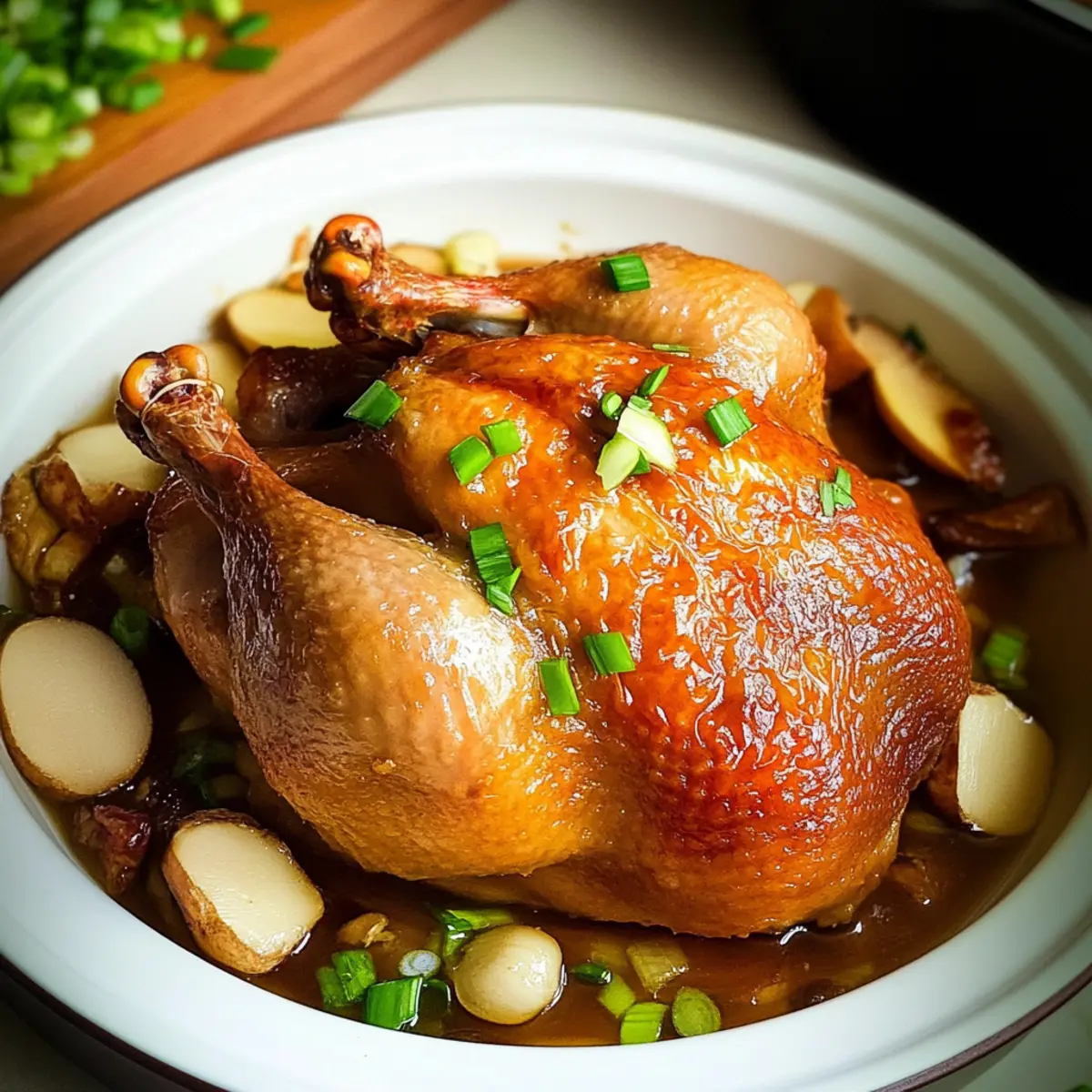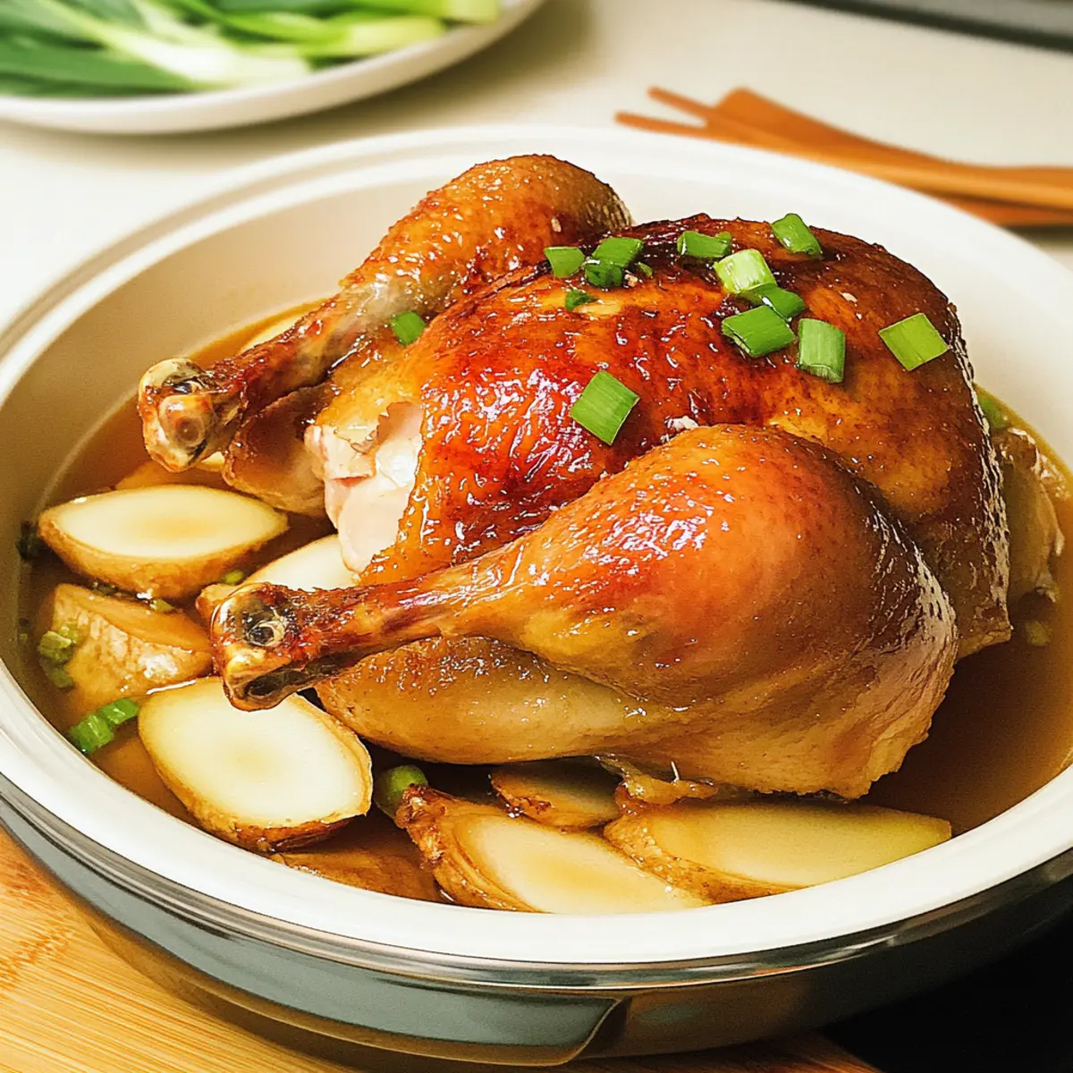Die perfekte Kombination aus Einfachheit und Geschmack gibt es nicht oft – aber mein Sojasoßenhühnchen auf Reis wird genau das für euch sein. Zubereitet in einem Reiskocher, verwandelt sich ein ganzes Hähnchen in ein saftiges, zartes Gericht, das sich wunderbar für Familienessen oder festliche Anlässe wie das chinesische Neujahr eignet. Mit einer aromatischen Sojasoße umhüllt, die die natürlichen Aromen des Huhns hebt, ist dieses Rezept nicht nur ein absolutes Highlight, sondern auch unglaublich praktisch für alle, die es satt haben, fastfood zu konsumieren. Und das Beste daran? Es ist schnell zubereitet und eignet sich hervorragend für alle, die in der Küche Zeit sparen möchten! Seid ihr bereit, das Geheimnis hinter diesem köstlichen Gericht zu entdecken? Warum wirst du dieses Rezept lieben? Einfachheit: Mit nur wenigen Schritten könnt ihr ein ganzes Hähnchen im Reiskocher zaubern – perfekt für Kochanfänger und alle, die wenig Zeit haben. Aromatische Aromen: Die Mischung aus Sojasauce, Ingwer und Knoblauch sorgt für einen vollen, herzhaften Geschmack, der eure Familie verzaubern wird. Vielseitigkeit: Kombiniert mit gedämpftem Reis oder Nudeln, passt dieses Gericht zu jeder Beilage und jedem Anlass. Schnell und praktisch: In weniger als einer Stunde habt ihr ein köstliches Mahl, das sich auch wunderbar für Reste eignet – ideal für eine stressfreie Woche. Familienfreundlich: Dieses Gericht schafft nicht nur ein leckeres Essen, sondern fördert auch gemeinsame Zeit am Tisch, besonders während festlicher Anlässe wie dem chinesischen Neujahr. Sojasoßenhühnchen Zutaten • Hinweis: Diese Zutatenliste führt die notwendigen Komponenten für ein köstliches Sojasoßenhühnchen auf Reis auf. Für das Hähnchen Ganzes Hähnchen – Basis des Gerichts; stellt sicher, dass es in den Reiskocher passt (ca. 1,1 kg). Für die Marinade Helle Sojasauce – Verleiht grundlegende Salzigkeit und Umami; kann durch natriumarme Sojasauce ersetzt werden. Dunkle Sojasauce – Sorgt für einen tieferen Geschmack und eine schöne Farbe; kann weggelassen werden, wenn nicht vorhanden. Austernsoße – Fügt Süße und komplexes Umami hinzu; ersetzbar durch Hoisinsoße für einen süßeren Geschmack. Shaoxing Wein – Wichtig für authentischen Geschmack; für eine alkoholfreie Option trockenen Sherry verwenden. Honig oder brauner Zucker – Süßt und balanciert die herzhaften Elemente; Ahornsirup ist eine vegane Alternative. Weißer Pfeffer – Bietet milde Schärfe und Aroma; schwarzer Pfeffer kann verwendet werden, hat jedoch einen leicht anderen Geschmack. Für die Aromatisierung Ingwer – Verleiht Wärme und Komplexität; frischer Ingwer ist vorzuziehen, aber gemahlener Ingwer kann auch verwendet werden. Knoblauch – Verstärkt den herzhaften Geschmack; die Menge kann je nach Vorliebe angepasst werden. Frühlingszwiebeln – Für Aromen während des Kochens und als frischer Garnitur; Schnittlauch kann als Ersatz dienen. Schritt-für-Schritt-Anleitung für Sojasoßenhühnchen auf Reis Schritt 1: Hähnchen vorbereiten Das ganze Hähnchen gründlich abspülen und in einer Schüssel mit kochendem Wasser überbrühen, um Verunreinigungen zu entfernen. Anschließend das Hähnchen gut abtrocknen, damit die Marinade optimal haftet und das Sojasoßenhühnchen auf Reis saftig wird. Schritt 2: Marinade erstellen In einer Schüssel die helle und dunkle Sojasauce, Austernsoße, Shaoxing Wein, Honig und weißen Pfeffer gründlich vermischen. Diese aromatische Marinade verleiht dem Hähnchen Geschmack und Tiefe. Schritt 3: Hähnchen marinieren Die vorbereitete Marinade großzügig auf das gesamte Hähnchen auftragen, sodass alle Bereiche gut bedeckt sind. Das Hähnchen mindestens 20 bis 30 Minuten marinieren lassen, damit die Aromen in das Fleisch eindringen und das Sojasoßenhühnchen auf Reis köstlich würzen. Schritt 4: Aromastoffe vorbereiten Ginger und Knoblauch in Scheiben schneiden und die Frühlingszwiebeln grob hacken. Diese Zutaten in den Boden des Reiskocher-Topfes legen, um während des Garens schmackhafte Aromen abzugeben und das Sojasoßenhühnchen auf Reis zu verfeinern. Schritt 5: Hähnchen garen Das marinierte Hähnchen zentral im Reiskocher platzieren und die übrige Marinade vorsichtig darüber gießen. Den Reiskocher schließen und das Hähnchen für 45 Minuten bis 1 Stunde garen, dabei die Hitze des Reiskochers nutzen, um das Hähnchen zart und saftig zu machen. Schritt 6: Hähnchen ruhen lassen Nach der Garzeit das Hähnchen vorsichtig aus dem Reiskocher nehmen und einige Minuten ruhen lassen. Dies sorgt dafür, dass sich die Säfte setzen und das Sojasoßenhühnchen auf Reis besonders saftig wird. Schritt 7: Anrichten und servieren Das Hähnchen in Stücke schneiden und auf einer Platte anrichten. Mit der köstlichen Sauce aus dem Reiskocher überziehen und nach Belieben mit frisch gehackten Frühlingszwiebeln und gerösteten Sesamkörnern garnieren. Sofort warm mit gedämpftem Reis servieren, um das Aroma zu genießen. Lagerungstipps für Sojasoßenhühnchen Zimmertemperatur: Das Sojasoßenhühnchen sollte nicht länger als 2 Stunden bei Zimmertemperatur stehen, um die Frische und Sicherheit zu gewährleisten. Kühlschrank: Reste des Sojasoßenhühnchens können bis zu 3-4 Tage in einem luftdichten Behälter im Kühlschrank aufbewahrt werden. Tiefkühler: Um das Sojasoßenhühnchen für längere Zeit zu konservieren, einfrieren. In einem gut verschlossenen Behälter oder Gefrierbeutel bleibt es bis zu 3 Monate frisch. Wiedererwärmen: Zum Erwärmen empfiehlt sich die Nutzung eines Dampfgarers oder der Mikrowelle. Achte darauf, dass das Hähnchen bis zu einer Temperatur von 75°C erhitzt wird, um sicherzustellen, dass es gleichmäßig warm ist. Sojasoßenhühnchen auf Reis für die stressfreie Wochenplanung Die Zubereitung des köstlichen Sojasoßenhühnchens auf Reis ist ideal für alle, die Zeit sparen möchten! Ihr könnt das Hähnchen bis zu 24 Stunden im Voraus m