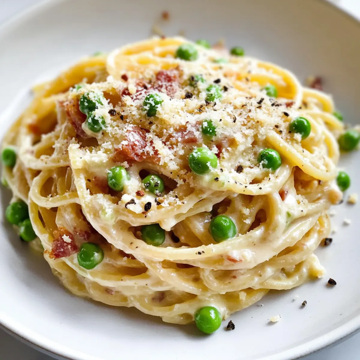 Der Duft von frisch gebratenem Pancetta durchzieht die Luft und weckt meine Sehnsucht nach einem gemütlichen Abendessen. Wenn ich an klassische italienische Gerichte denke, landet meine Vorstellung schnell bei Spaghetti Carbonara mit knusprigem Pancetta und zarten Erbsen. Diese Kombination vereint die herzhaften Aromen von Salzigkeit und Süße in einem cremigen Traum, der in nur 20 Minuten auf dem Tisch steht – perfekt, um nach einem langen Tag schnell zu genießen oder um Gäste zu beeindrucken. Und das Beste daran? Du brauchst dafür nur eine Handvoll Zutaten, was es zu einer unkomplizierten Lieblingsspeise macht, die einfach Spaß macht! Bist du bereit, dieses italienische Wohlfühlessen selbst zu kreieren? Warum wird diese Carbonara dein Favorit? Schnelligkeit und Einfachheit: In nur 20 Minuten entsteht ein köstliches Gericht, das keine komplizierten Techniken erfordert. Perfekt für stressige Abende! Cremige Verführung: Die Kombination aus Ei und Käse sorgt für eine samtige Sauce, die die Spaghetti perfekt umhüllt. Ein Stück Italien: Mit jedem Bissen fühlst du dich in eine italienische Trattoria versetzt, während der aromaintensive Pancetta und die süßen Erbsen harmonisch zusammenkommen. Vielfalt der Aromen: Du kannst ganz einfach Variationen ausprobieren, beispielsweise mit verschiedenen Sorten von Speck oder der Zugabe von Knoblauch. Klassiker mit Twist: Diese Carbonara ist ein zeitloses Rezept, das sich wunderbar anpassen lässt – wie wäre es zum Beispiel mit einem leichten Salat oder einem Glas Weißwein dazu? Entdecke auch unsere köstlichen Parmesan Gefüllter Spaghettikäse für ein weiteres überraschendes italienisches Erlebnis! Spaghetti Carbonara Zutaten • Diese klassischen Zutaten sorgen für die perfekte Spaghetti Carbonara mit Pancetta und Erbsen! Pancetta – verleiht dem Gericht einen herzhaften, rauchigen Geschmack; kann durch Bacon oder Prosciutto ersetzt werden. Englische Erbsen – bringen eine süße Note und Farbe ins Spiel; gefrorene Erbsen sind eine praktische Alternative. Spaghetti – die traditionelle Grundlage des Gerichts; jede lange Pasta funktioniert, aber Spaghetti sind klassisch. Große Eier & Eigelb – sorgen für die cremige Sauce; hochwertige Eier bringen den besten Geschmack, nur Eigelb kann für eine reichhaltigere Sauce verwendet werden. Pecorino Romano – gibt eine scharfe, salzige Note; Parmesan ist ein milderer Ersatz, wenn nötig. Parmesan – ergänzt den Geschmack des Pecorino; kann weggelassen werden, wird aber für zusätzliche Tiefe empfohlen; mehr Pecorino kann stattdessen verwendet werden. Grob gemahlener Pfeffer – hebt den Geschmack mit einer pikanten Note; frisch gemahlener schwarzer Pfeffer eignet sich am besten. Olivenöl – zum Anbraten von Pancetta und Erbsen; jedes leichtes Öl kann eine Alternative sein, doch Olivenöl verstärkt den Geschmack. Schritt-für-Schritt-Anleitung für Perfekte Spaghetti Carbonara Step 1: Wasser kochen Setze einen großen Topf mit leicht gesalzenem Wasser auf hohe Hitze und bringe es zum Kochen. Sobald das Wasser sprudelnd kocht, füge die Spaghetti hinzu und koche sie etwa 8-10 Minuten lang, bis sie al dente sind. Rühre gelegentlich um, damit die Pasta nicht zusammenklebt, und achte darauf, dass sie nicht zu weich wird. Step 2: Eiermischung vorbereiten Während die Spaghetti kochen, nimm eine Schüssel und verquirle die großen Eier und die Eigelbe zusammen mit dem geriebenen Pecorino Romano und Parmesan. Füge eine Prise Salz und frisch gemahlenen schwarzen Pfeffer hinzu und vermische alles gründlich. Diese Mischung wird die cremige Sauce für deine Spaghetti Carbonara ergeben. Step 3: Pancetta anbraten Erhitze in einer Pfanne bei mittlerer Hitze etwas Olivenöl und füge die gewürfelte Pancetta hinzu. Brate sie für etwa 4-5 Minuten, bis sie schön knusprig und goldbraun ist. Achte darauf, die Pancetta regelmäßig zu wenden, damit sie gleichmäßig bräunt. Nach dem Braten kannst du sie auf ein mit Küchenpapier belegtes Teller geben, um überschüssiges Fett abtropfen zu lassen. Step 4: Erbsen anbraten Gib in die gleiche Pfanne, in der die Pancetta gebraten wurde, etwas mehr Olivenöl und füge die englischen Erbsen hinzu. Brate sie für 2-3 Minuten, bis sie zart und leuchtend grün sind. Rühre gelegentlich um, damit sie gleichmäßig garen. Danach nimm die Pfanne vom Herd und halte die Erbsen warm. Step 5: Zutaten kombinieren Nach dem Abgießen der Spaghetti, behalte eine Tasse des Kochwassers. Gib die heißen Spaghetti zurück in den Topf und füge die knusprige Pancetta sowie die Erbsen hinzu. Rühre alles gut durcheinander, während du nach und nach die Eiermischung hinzufügst. Die Hitze der Pasta wird die Eier leicht garen, ohne sie zu Rührei zu machen. Step 6: Sauce perfektionieren Um die gewünschte Cremigkeit zu erreichen, füge allmählich das reservierte Nudelwasser hinzu, etwa ½ Tasse auf einmal. Rühre weiter, bis die Sauce schön glatt und seidig ist. Achte darauf, dass alle Spaghetti gut mit der cremigen Carbonara-Sauce beschichtet sind. Step 7: Anrichten und servieren Nehme die fertigen Spaghetti Carbonara und teile sie gleichmäßig auf Teller auf. Bestreue jedes Gericht mit zusätzlichem geriebenem Pecorino und frisch gemahlenem Pfeffer. Serviere die Spaghetti sofort heiß, um die cremige Textur und den intensiven Geschmack vollständig zu genießen. Was Serviert man zu Spaghetti Carbonara mit Pancetta und Erbsen? Lass uns mit köstlichen Beilagen und Getränken ein harmonisches Gesamtgericht kreieren, das deine Spaghetti Carbonara perfekt ergänzt! Frischer Grünsalat: Ein einfacher, knackiger Salat mit einem leichten Dressing sorgt für frische Aromen und balanciert die cremige Carbonara. Knuspriges Brot: Crusty Baguette oder Ciabatta eignet sich hervorragend, um die Sauce aufzutunken – eine unwiderstehliche Kombination! Gerösteter Spargel: Mit etwas Olivenöl und Parmesan verfeinert, bringt er eine wunderbare Textur und Farbe auf den Tisch.