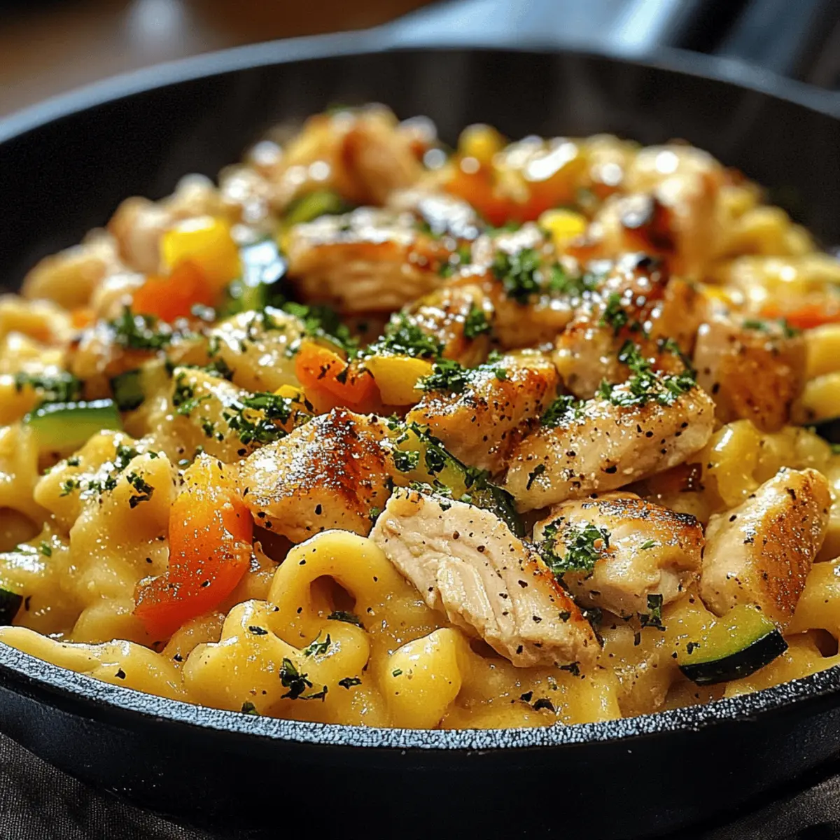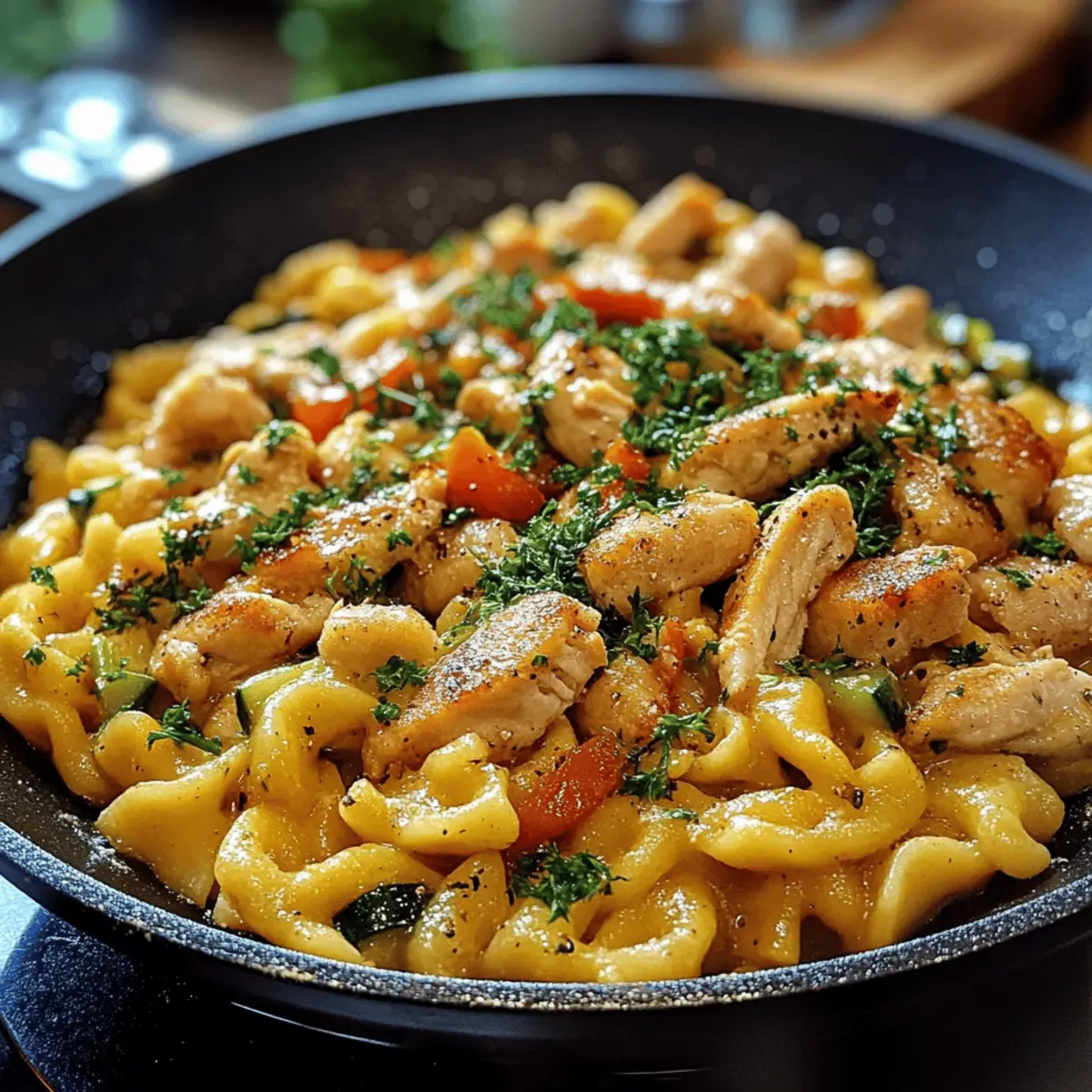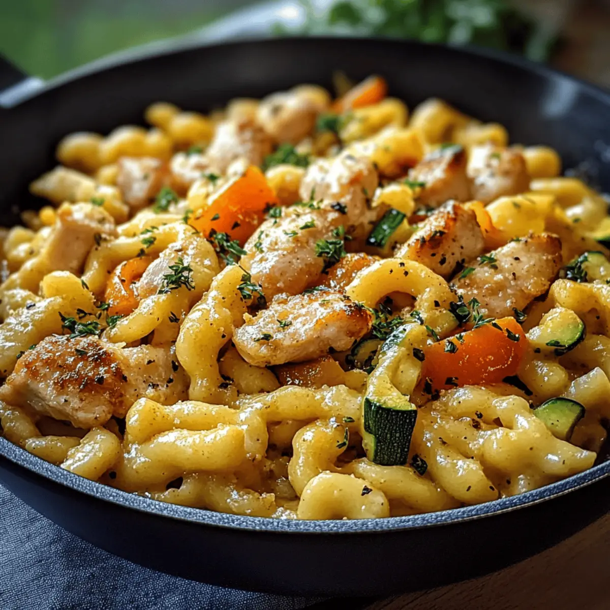 „Hast du schon mal den Duft von frisch zubereiteten Spätzle in deiner Küche erlebt?“ Dieser verlockende Geruch zieht nicht nur mich an, sondern auch jeden, der sich nach einer herzhaften Mahlzeit sehnt. Heute möchte ich mit dir meine einfache und köstliche Spätzle-Pfanne mit Hähnchen und Gemüse teilen. Dieses komfortable Gericht ist nicht nur schnell und leicht zuzubereiten, sondern eine wahre Gaumenfreude, die selbst die wählerischsten Esser begeistert. Das Beste daran? Du kannst die Zutaten ganz nach deinem Geschmack variieren, sei es mit Rind- oder Truthahn. Bist du bereit, deinen Feierabend mit dieser herzlichen Mahlzeit zu verzaubern? Lass uns gemeinsam in die Welt der Spätzle eintauchen! Warum wirst du dieses Rezept lieben? Einfache Zubereitung: Die Spätzle-Pfanne ist nicht nur schnell gemacht, sondern benötigt auch keine speziellen Kochkünste. Jeder kann dieses Rezept meistern! Vielseitigkeit: Egal ob Hähnchen, Rind oder Truthahn, mit dieser Grundlage kannst du deine liebsten Zutaten hinzufügen und so jedes Mal neue Geschmackserlebnisse schaffen. Herzhafter Genuss: Die Kombination aus zarten Spätzle und frischem Gemüse sorgt für ein Aroma, das das Herz wärmt und die Seele nährt. Perfekte Beilagen: Serviere die Pfanne einfach direkt aus der Pfanne, verwöhnt mit frischem Brot oder einem knackigen Salat für ein vollkommeneres Dinner. Wenig Aufwand, große Wirkung: Ideal für geschäftige Wochentage, wo du dennoch eine liebevolle, hausgemachte Mahlzeit genießen möchtest. Entdecke auch unsere anderen Rezeptideen für abwechslungsreiche Abendessen! Spätzle-Pfanne Zutaten Für den Teig • Mehl – liefert die Struktur für die Spätzle; du kannst auch eine glutenfreie Mischung verwenden. • Eier – sorgen für Reichhaltigkeit und helfen, die Mischung zu binden; frische Eier bringen besseren Geschmack. • Salz – verstärkt den Geschmack; nach Bedarf anpassen. Für die Pfanne • Hühnerbrust (diced) – leckere Proteinquelle; kann durch Truthahn oder Rind für Abwechslung ersetzt werden. • Paprika – fügt Süße und Farbe hinzu; eine Kombination aus verschiedenen Farben sorgt für ein lebendigeres Gericht. • Zucchini – sorgt für Feuchtigkeit und Textur; kann auch durch Brokkoli oder Spargel ersetzt werden. • Zwiebeln – bringen Süße und Tiefe; auch Schalotten sind eine milde Option. • Gemüsebrühe – fügt dem Gericht Feuchtigkeit und herzhaften Geschmack hinzu; verwende natriumarme Brühe für weniger Salz. • Petersilie (frisch, gehackt) – für Garnitur und Frische; kann auch durch Schnittlauch oder Koriander ersetzt werden. Schritt-für-Schritt-Anleitung für Spätzle-Pfanne Step 1: Spätzleteig zubereiten In einer großen Schüssel vermischt du 250 g Mehl mit 3 Eiern und einer Prise Salz, bis eine glatte und geschmeidige Masse entsteht. Achte darauf, die Zutaten gut zu kombinieren, und lasse den Teig anschließend 30 Minuten ruhen, damit sich die Konsistenz optimal entwickelt und die Spätzle perfekt werden. Step 2: Hähnchen braten Erhitze in einer großen Pfanne bei mittlerer Hitze etwas Öl. Füge die gewürfelte Hühnerbrust hinzu und brate sie für etwa 5–7 Minuten, bis sie goldbraun und durchgegart ist. Vergiss nicht, das Fleisch mit Salz und Pfeffer zu würzen, um den Geschmack zu intensivieren. Step 3: Gemüse anbraten Nachdem das Hähnchen fertig ist, gib die in Scheiben geschnittenen Zwiebeln in die Pfanne und brate sie, bis sie glasig sind. Füge dann die Paprika und Zucchini hinzu und koche alles zusammen für weitere 5 Minuten, bis das Gemüse zart ist und leuchtende Farben zeigt. Step 4: Spätzle kochen Setze währenddessen einen großen Topf mit gesalzenem Wasser auf, um es zum Kochen zu bringen. Drücke mit einem Spätzleschaber oder einem Spritzbeutel den Teig in das sprudelnde Wasser und koche die Spätzle 2-3 Minuten, bis sie an die Oberfläche steigen – dies ist ein Zeichen, dass sie fertig sind. Step 5: Alles vereinen Wenn die Spätzle gekocht sind, nimm sie mit einer Schaumkelle heraus und gebe sie in die Pfanne zu dem Hähnchen und Gemüse. Gieße die Gemüsebrühe darüber und lasse alles für ein paar Minuten köcheln, damit sich die Aromen gut verbinden und die Spätzle die Brühe aufsaugen. Step 6: Anrichten und servieren Nimm die Pfanne vom Herd und garniere die Spätzle-Pfanne mit frisch gehackter Petersilie. Serviere das Gericht heiß direkt aus der Pfanne – es ist nicht nur eine Augenweide, sondern auch einladend und herzhaft. Tipps für die beste Spätzle-Pfanne Teig-Ruhezeit beachten: Lasse den Spätzleteig mindestens 30 Minuten ruhen, damit die Struktur optimal wird und die Spätzle beim Kochen leicht und fluffig bleiben. Richtige Kochzeit: Achte darauf, die Spätzle nur 2-3 Minuten zu kochen, bis sie an die Oberfläche steigen; überkochtes führt zu einem matschigen Ergebnis. Würze nach Geschmack: Geschmackliche Akzente setzt du mit frischen Kräutern oder Gewürzen. Experimentiere, aber achte darauf, nicht zu salzen, bevor die Brühe hinzugefügt wird. Gestaltung der Pfanne: Verwende eine große Pfanne, damit alles gleichmäßig gart und die Spätzle-Pfanne gut kombiniert wird. Berücksichtige auch Variationen mit Rind oder Truthahn! Aufbewahrungshinweise: Bewahre übrig gebliebene Spätzle separat von Gemüse auf, um deren Textur zu bewahren. Sie lassen sich wunderbar in der Pfanne wieder aufwärmen. Was passt zu Spätzle-Pfanne? Genieße den köstlichen Geschmack der Spätzle mit diesen harmonierenden Beilagen, die dein Essen aufwerten. Frischer grüner Salat: Ein knackiger Salat mit einem spritzigen Dressing bringt Leichtigkeit und Frische zur herzhaften Spätzle-Pfanne. Brot oder Brötchen: Knuspriges Brot oder Brötchen sind perfekt, um die köstliche Soße aufzutunken und sorgen für ein volles Mahl. Geröstetes Gemüse: Bunte, geröstete Gemüsesorten ergänzen die Spätzle-Pfanne und bringen zusätzliche Aromen und Texturen auf den Tisch. Kräuterquark: Dieser cremige Dip mit fri
