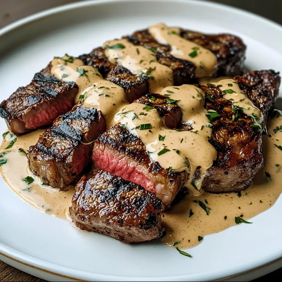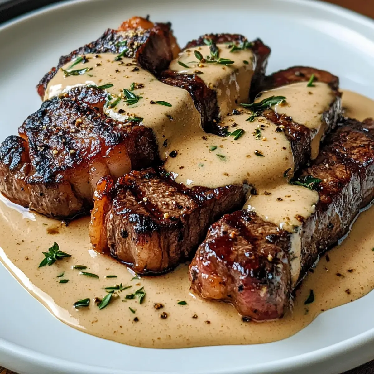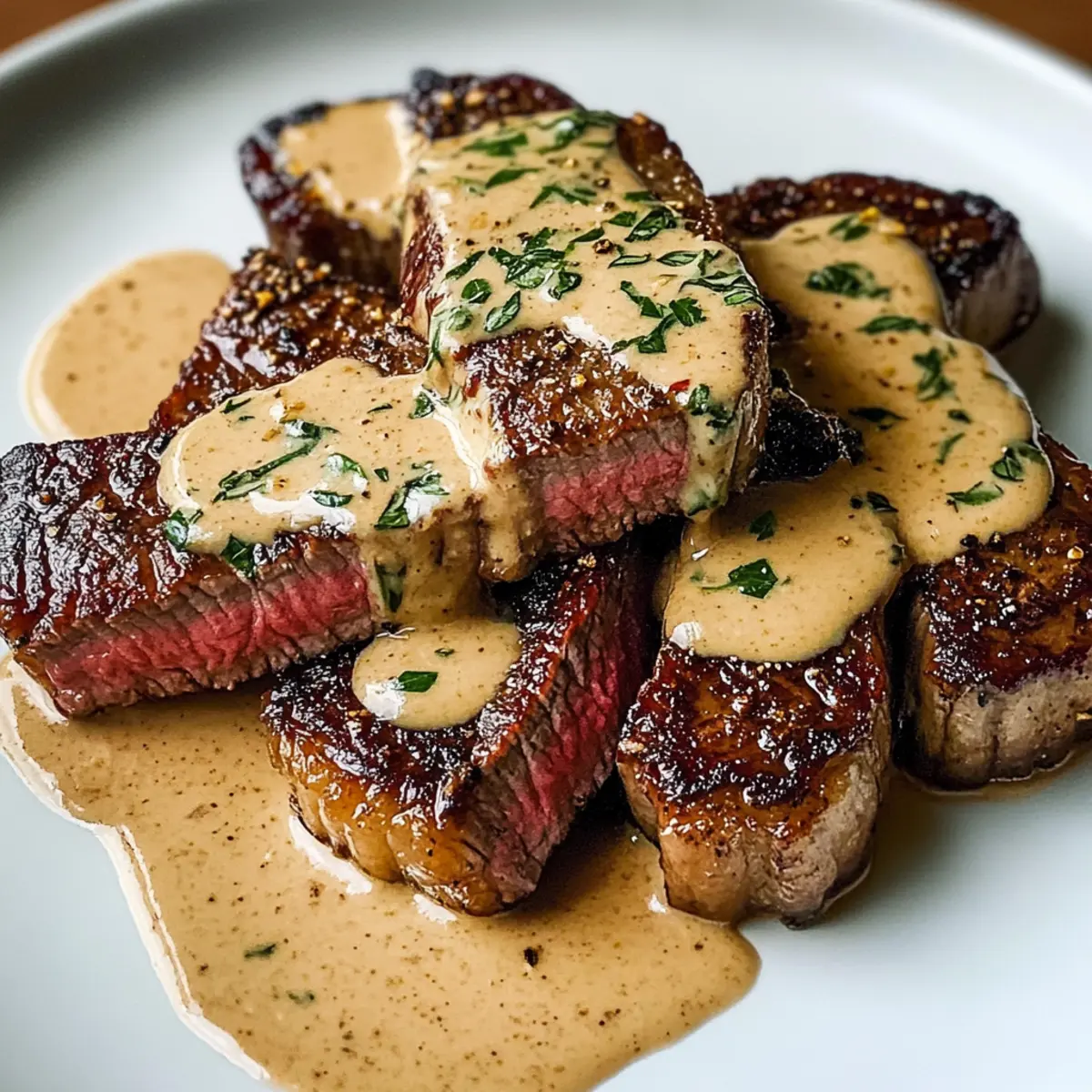 Die warme, einladende Küche war gefüllt mit dem verlockenden Duft von gebratenem Steak und einer cremigen Soße, die das Wasser im Mund zusammenlaufen ließ. Heute teile ich mit euch mein Rezept für Steak mit Bourbon Knoblauch Sahnesoße – ein unkompliziertes Gourmetgericht, das in nur 30 Minuten zubereitet werden kann! Das zarte, saftige Steak wird von einer reichhaltigen, samtigen Soße umhüllt, die die rauchigen Noten des Bourbons mit dem aromatischen Charme von Knoblauch vereint. Dieses Rezept ist nicht nur ein echter Publikumsmagnet, sondern auch perfekt für alle, die sich nach einer gesunden, low-carb Option sehnen. Bereit, eure Lieben mit einem einmaligen Dinner zu überraschen? Lass uns beginnen! Warum ist dieses Rezept ein Muss? Einfachheit: Dieses Gericht erfordert nur grundlegende Kochfähigkeiten, sodass jeder, vom Kochanfänger bis zum Profi, schnell ein Gourmetessen zaubern kann. Reiche Aromen: Die Kombination aus Bourbon und Knoblauch bringt eine Geschmackstiefe, die alle begeistert. Gesunde Wahl: Mit seinem niedrigen Kohlenhydratgehalt ist es ideal für jeden, der eine gesunde Ernährung anstrebt. Vielseitigkeit: Ob für ein romantisches Dinner oder ein festliches Familienessen – eine Eleganz, die zu jedem Anlass passt! Probiert dazu auch einen frischen Salat oder gestampfte Kartoffeln, um das Erlebnis abzurunden. Schnelligkeit: In nur 30 Minuten zubereitet, perfekt für vielbeschäftigte Abende, an denen kein Kompromiss bei der Qualität gemacht werden soll! Zutaten für Steak mit Bourbon Knoblauch Sahnesoße Steak – Ideal sind Ribeye oder Filet Mignon für ihr zartes Fleisch; ersetzt durchSirloin für eine magerere Option. Zerkleinerter Knoblauch – Braucht man für die Geschmacksverstärkung in der Soße; Knoblauchpulver kann im Notfall verwendet werden. Bourbon – Verleiht der Soße Tiefe; wählt hochwertigen Bourbon für das beste Aroma. Alternativ kann nicht-alkoholischer Apfelwein verwendet werden. Schlagsahne – Sorgt für eine samtige Textur; light cream oder half-and-half sind mögliche Alternativen für weniger Fett. Rinderbrühe – Verstärkt den herzhaften Geschmack der Soße; Hühnerbrühe kann ebenfalls verwendet werden, wenn Rinderbrühe nicht verfügbar ist. Dijon-Senf – Gibt der Soße eine angenehme Würze; man kann auch gelben Senf verwenden, wenn Dijon fehlt. Worcestershiresauce – Trägt zum umami Geschmack bei; Sojasauce kann einen ähnlichen Effekt erzielen. Salz und Pfeffer – Nach Geschmack; entscheidend für die richtige Würze des Gerichts. Genießt dieses köstliche Steak mit Bourbon Knoblauch Sahnesoße und überrascht eure Lieben mit einer wahre Gaumenfreude! Schritt-für-Schritt-Anleitung für Steak mit Bourbon Knoblauch Sahnesoße Step 1: Steak anbraten Erhitze eine große Pfanne bei mittlerer bis hoher Hitze mit etwas Öl. Lege das Steak in die heiße Pfanne und brate es für 4-5 Minuten auf jeder Seite, bis es eine schöne braune Kruste hat und die Innentemperatur bei 130°F (54°C) für medium-rare liegt. Verwende ein Fleischthermometer, um die Garstufe zu überprüfen. Step 2: Steak ruhen lassen Nehme das Steak aus der Pfanne und lege es auf einen Teller. Decke es locker mit Alufolie ab und lasse es für etwa 5 Minuten ruhen, damit sich die Säfte im Fleisch verteilen können. Dies ist wichtig für ein zartes und saftiges Steak, das perfekt zum Steak mit Bourbon Knoblauch Sahnesoße passt. Step 3: Soße zubereiten Reduziere die Hitze der Pfanne auf mittlere Temperatur und füge den zerkleinerten Knoblauch hinzu. Sauté den Knoblauch für etwa 30 Sekunden, bis er duftet, achte dabei darauf, ihn nicht zu verbrennen, da er dann bitter werden kann. Diese aromatische Basis ist entscheidend für die Geschmacksstärke der Soße. Step 4: Ablöschen Gieße den Bourbon vorsichtig in die Pfanne und kratzen dabei den Boden ab, um die angebratenen Stücke zu lösen. Lasse die Mischung 1 Minute lang köcheln, damit der Alkohol verdampfen kann und die Aromen sich entfalten. Dies gibt dem Gericht eine köstliche Tiefe, die perfekt zu unserem Steak mit Bourbon Knoblauch Sahnesoße passt. Step 5: Soße vollenden Füge nun die Schlagsahne, Rinderbrühe, Dijon-Senf, Worcestershiresauce, Salz und Pfeffer in die Pfanne hinzu. Rühre gut um und lasse die soße bei niedriger Hitze 2 Minuten köcheln, bis sie leicht eindickt. Die Soße sollte eine cremige Konsistenz erreichen und die Aromen miteinander verbinden. Step 6: Servieren Schneide das Steak in dünne Scheiben und lege es auf die Teller. Übergieße es großzügig mit der Bourbon Knoblauch Sahnesoße. Die Kombination aus saftigem Steak und der reichhaltigen Soße sorgt für ein unvergessliches Geschmackserlebnis, das deine Lieben beeindrucken wird. Variationen & Alternativen für Steak mit Bourbon Knoblauch Sahnesoße Verleiht eurem Gericht eine persönliche Note! Hier sind einige kreative Ideen, um das Rezept zu variieren und euren Küchentraum wahr werden zu lassen. Steak-Schnitte: Probiert verschiedene Fleischstücke wie Flank oder T-Bone für einzigartigen Geschmack und Textur. Sahne-Alternative: Für eine leichtere Soße könnt ihr die Schlagsahne durch griechischen Joghurt ersetzen; das bringt eine scharfe Note mit sich. Scharf: Fügt etwas Cayennepfeffer oder Chili-Flocken hinzu, um dem Gericht eine kitzelnde Schärfe zu verleihen, die das Geschmackserlebnis intensiviert. Kräuter hinzufügen: Verfeinert die Soße mit frischem Thymian oder Rosmarin, dies gibt dem Gericht einen aromatischen Kick und macht es besonders! Bourbon-Alternativen: Für eine alkoholfreie Option könnt ihr hochwertigen Apfelwein verwenden, der eine fruchtige Note beiträgt. Gemüseerweiterung: Fügt gedünstete Champignons oder Spinat zur Soße hinzu, um zusätzliche Aromen und eine schöne Farbvielfalt zu erreichen. Zwiebelgeschmack: Deckt den Knoblauch mit einer fein gehackten Schalotte ab, die während des Anbratens goldbraun wird, um eine süße Basis zu schaffen. Rauchige Note: Für noch mehr Geschm