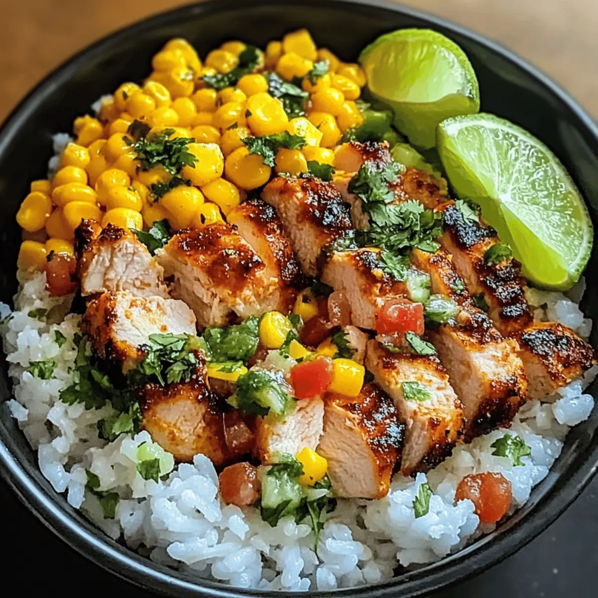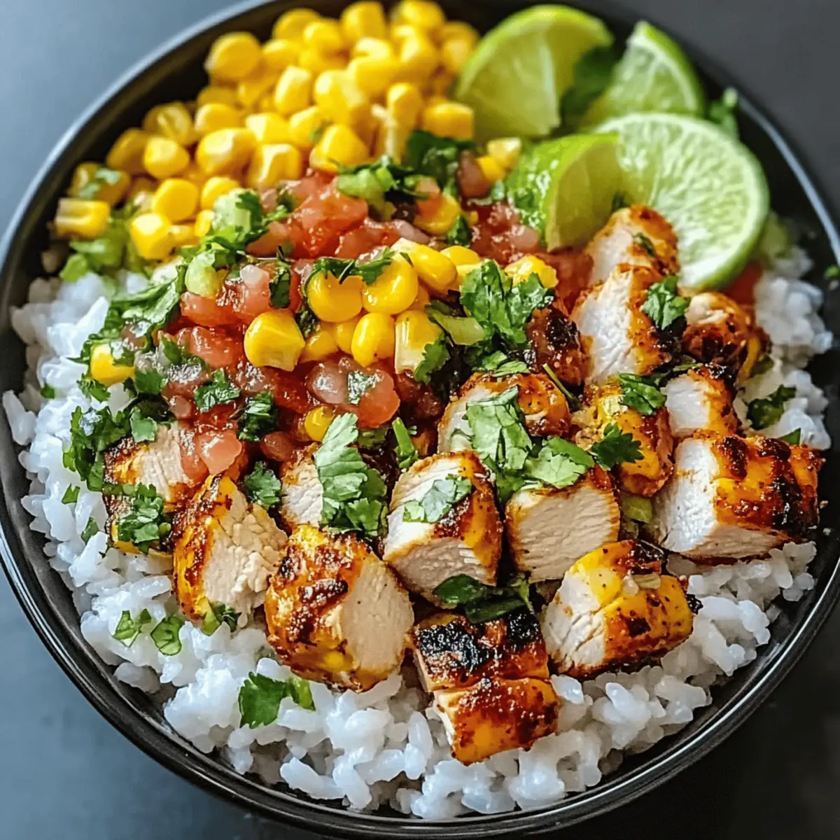 Als ich kürzlich durch die Straßen eines bunten Marktes schlenderte, wurde ich von dem verlockenden Duft frisch gegrillten Maises mit einem Hauch von Limette und Koriander angezogen. Das sind die Aromen, die ich mit meinem neuesten Rezept, der Street Corn Hähnchen Reis Schüssel, in meiner eigenen Küche wieder zum Leben erwecken möchte. Diese nährstoffreiche Bowl vereint saftiges Hähnchen, leckeren Mais und eine cremige Koriander-Limetten-Sauce – perfekt für alle, die sich gesund ernähren möchten, ohne auf Geschmack zu verzichten. Darüber hinaus ist sie ideal zum Vorbereiten von Mahlzeiten, sodass Sie in den hektischen Wochen allerhand Abwechslung genießen können. Neugierig, wie Sie dieses simple, aber köstliche Gericht selbst zaubern können? Warum ist diese Schüssel so beliebt? Einzigartiger Geschmack: Die Kombination aus gegrilltem Mais, zartem Hähnchen und der cremigen Koriander-Limetten-Sauce sorgt für ein Geschmackserlebnis, das Ihre Sinne verführt. Einfache Zubereitung: Mit nur wenigen Schritten haben Sie eine gesunde Mahlzeit gezaubert, die ideal für hektische Tage ist. Vielseitig: Variieren Sie die Proteine und Zutaten ganz nach Ihrem Geschmack – von Tofu bis zu verschiedenen Gemüsesorten. Ideale Meal-Prep-Lösung: Bereiten Sie die Schüssel im Voraus vor und genießen Sie frische, nährstoffreiche Mahlzeiten während der Woche. Lassen Sie sich auch von weiteren gesunden Rezepten in meiner Sammlung inspirieren, um Ihre Küche aufzupeppen! Street Corn Hähnchen Reis Bowl Zutaten • Diese herrlichen Zutaten bilden die Grundlage für Ihr neues Lieblingsgericht! Für das Hähnchen Hähnchenbrust – die Hauptproteinquelle, die für ein herzhaftes und sättigendes Gericht sorgt. Sie können auch mit Tofu oder Tempeh variieren. Für die Street Corn Salsa Gegrillter Mais – sorgt für Süße und eine tolle Textur; frisch gegrillt ist am besten, aber Dosenmais funktioniert auch. Frisch gepresster Limettensaft – verleiht Frische und veredelt den Geschmack der Salsa. Frischer Koriander – bringt einen aromatischen Kick; je nach Geschmack können Sie auch weniger verwenden. Jalapeños – optional für die Schärfe; passen Sie die Menge an Ihre Vorlieben an. Für den Reis Langkornreis – die perfekte Basis liefert Ihnen energiereiche Kohlenhydrate; als gesunde Alternative können Sie auch Quinoa oder Blumenkohlreis verwenden. Für das Koriander-Limetten-Dressing Griechischer Joghurt – für eine cremige Konsistenz und zusätzlichen Geschmack; leicht und gesund! Olivenöl – sorgt für eine geschmeidige Textur; verwenden Sie ein hochwertiges Öl für den besten Geschmack. Knoblauchpulver – verleiht dem Dressing ein tolles Aroma; frisch gehackter Knoblauch ist eine weitere Option. Mit diesen köstlichen Zutaten können Sie Ihre eigene Street Corn Hähnchen Reis Schüssel kreieren, die nicht nur gesund, sondern auch ein Genuss für den Gaumen ist! Schritt-für-Schritt-Anleitung für die Street Corn Hähnchen Reis Schüssel Step 1: Hähnchen vorbereiten Schneiden Sie die Hähnchenbrust in gleichmäßige Stücke und würzen Sie sie mit einer Mischung aus Paprika, Kreuzkümmel, Salz und Pfeffer. Erhitzen Sie eine Pfanne auf mittlerer Hitze und geben Sie etwas Öl hinzu. Braten Sie das Hähnchen für 7-10 Minuten, bis es goldbraun und durchgegart ist. Die Innentemperatur sollte mindestens 75 °C betragen. Step 2: Salsa zubereiten Während das Hähnchen brät, grillen Sie den Mais, bis er leicht gebräunt ist. Lassen Sie den Mais etwas abkühlen und schneiden Sie ihn von den Kolben ab. Mischen Sie den gegrillten Mais in einer Schüssel mit frisch gepresstem Limettensaft, gehacktem Koriander und Jalapeños, falls verwendet. Die Farben sollten leuchtend und einladend sein. Step 3: Reis kochen Kochen Sie den Langkornreis gemäß den Anweisungen auf der Verpackung. In der Regel wird der Reis mit der doppelten Menge Wasser zum Kochen gebracht und dann bei niedriger Hitze 15-20 Minuten gekocht. Der Reis sollte locker und leicht klebrig sein, wenn er fertig ist. Stellen Sie sicher, dass keine Flüssigkeit mehr sichtbar ist. Step 4: Dressing herstellen Für das Koriander-Limetten-Dressing geben Sie griechischen Joghurt, Olivenöl, Knoblauchpulver und etwas Limettensaft in eine Schüssel. Vermischen Sie alles gut mit einem Schneebesen oder einer Gabel, bis eine cremige Konsistenz erreicht ist. Das Dressing sollte geschmeidig und leicht sein, ideal zum Beträufeln der Schüssel. Step 5: Schüssel anrichten Beginnen Sie mit einer Schicht Reis als Basis in einer großen Schüssel. Fügen Sie dann die gebratenen Hähnchenstücke darüber hinzu und geben Sie die frisch zubereitete Salsa darauf. Träufeln Sie großzügig das Koriander-Limetten-Dressing über die Schüssel und gestalten Sie Ihre Street Corn Hähnchen Reis Schüssel nach Belieben. Step 6: Servieren und garnieren Servieren Sie die Schüssel sofort, garnieren Sie sie nach Wunsch mit frischem Avocado oder weiteren Kräutern. Stellen Sie sicher, dass alle Komponenten gut sichtbar und appetitlich arrangiert sind. Mit jedem Bissen genießen Sie die verschiedenen Texturen und Aromen dieser köstlichen Schüssel. Meal Prep für die Street Corn Hähnchen Reis Schüssel Die Street Corn Hähnchen Reis Schüssel lässt sich hervorragend im Voraus zubereiten, um Ihnen an hektischen Tagen Zeit zu sparen! Sie können das Hähnchen bis zu 3 Tage im Voraus grillen und in einem luftdichten Behälter im Kühlschrank aufbewahren. Auch die Street Corn Salsa ist ideal zum Vorbereiten – einfach bis zu 24 Stunden vorher zubereiten, damit die Aromen gut durchziehen. Für den perfekten Geschmack und die optimale Textur sollten Sie den Reis am besten am Tag der Zubereitung kochen. Achten Sie darauf, die Komponenten separat zu lagern, um die Frische zu erhalten. Wenn es Zeit zum Servieren ist, stellen Sie die Schüssel zusammen, indem Sie die frischen Komponenten darauf anrichten und das Koriander-Limetten-Dressing großzügig darüber tr