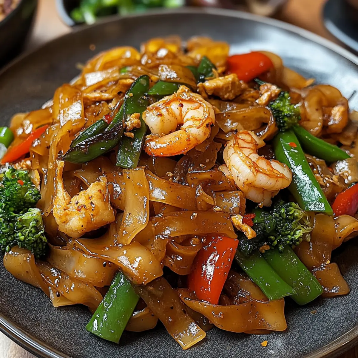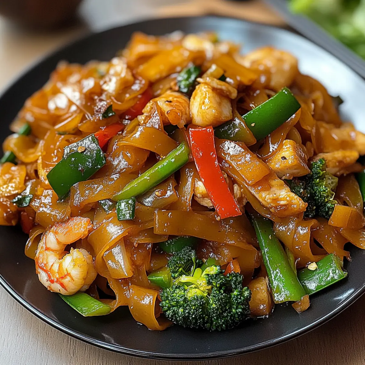 Es war einmal eine laue Sommernacht in Bangkok, als ich das erste Mal die verführerischen Aromen von Straßenessen erlebte. Damals entdeckte ich die unvergesslichen Straßenstil Thai Betrunkenen Nudeln, eine köstliche Mischung aus breiten Reisnudeln, knackigem Gemüse und meinem persönlichen Protein-Favoriten. Diese einfache und schnelle Rezeptur ist nicht nur in weniger als 30 Minuten zubereitet, sondern auch vollkommen anpassbar, sodass sie jedem Gaumen gerecht wird – egal, ob du dich für zartes Hühnchen, saftige Garnelen oder pflanzliche Alternativen entscheidest. Wer kennt das nicht: Nach einem langen Tag sehnt man sich nach einem Gericht, das Herz, Seele und Magen zugleich wärmt. Lass uns gemeinsam diese feurige und geschmackvolle Reise antreten und deine nächste Lieblingsspeise entdecken. Bereit für eine kulinarische Überraschung? Warum solltest du diese Nudeln lieben? Einfachheit: Die Zubereitung der Straßenstil Thai Betrunkenen Nudeln ist kinderleicht und erfordert keine speziellen Kochkenntnisse. In weniger als 30 Minuten kannst du ein authentisches Gericht zaubern. Vielseitigkeit: Egal, ob du Hühnchen, Garnelen oder Tofu bevorzugst, dieses Rezept passt sich mühelos an deine Vorlieben an. Fühle dich frei, mit frischem Gemüse wie Zucchini oder Brokkoli zu experimentieren, um noch mehr Geschmack und Textur zu entdecken. Reichhaltiger Geschmack: Die harmonische Kombination aus würziger Sojasauce, frischem Limettensaft und einer Prise Chili garantiert ein Geschmackserlebnis, das den Gaumen verwöhnt. Küchenfreund: Perfekt für jede Gelegenheit, sei es ein schnelles Abendessen unter der Woche oder eine gemütliche Zusammenkunft mit Freunden. Diese Nudeln sind immer ein Hit! Probiere sie auch mit Cremigen Rinder Nudeln oder Garnelen Engelshaar Nudeln für abwechslungsreiche Geschmackserlebnisse! Street Style Thai Betrunkene Nudeln Zutaten • Hinweis: Hier sind die Zutaten für deine köstlichen Straßenstil Thai Betrunkenen Nudeln, die deinem Gaumen Freude bereiten werden! Für die Nudeln Flache Reisnudeln – Essenziell für die perfekte Textur; frisch oder getrocknet verwenden, je nach Vorliebe. Für das Braten Pflanzenöl – Zum Anbraten; für verschiedene Geschmäcker kannst du auch Erdnuss- oder Rapsöl nutzen. Für die Aromen Knoblauch – Frisch gehackt sorgt er für ein intensives Aroma; vermeide abgefüllten Knoblauch für den besten Geschmack. Für das Protein Hühnchen, Garnelen oder Tofu – Wähle deine bevorzugte Proteinquelle; Hühnchen benötigt 3-5 Minuten, Garnelen 2-3 Minuten in der Pfanne. Für die frischen Zutaten Gemüse (Paprika, Brokkoli, etc.) – Verleiht Farbe und Nährstoffe; saisonale Variationen sorgen für besten Geschmack. Für die Würze Sojasauce – Gibt einen umami-reichen Geschmack; wähle die natriumarme Variante für eine gesündere Option. Zucker – Balanciert den würzigen Geschmack und fügt eine süße Note hinzu; nutze braunen Zucker für einen tieferen Geschmack. Fischsauce – Für zusätzliche Komplexität; ersetze sie durch Kokosaminos für eine vegetarische Option. Chilisoße – Sorgt für die gewünschte Schärfe; passe die Menge nach deinem persönlichen Geschmack an. Limettensaft – Frisch gepresst für eine spritzige Note; kann auch mit Essig ersetzt werden für eine andere Säure. Schritt-für-Schritt-Anleitung für Straßenstil Thai Betrunkene Nudeln Step 1: Nudeln vorbereiten Bringe einen großen Topf mit Wasser zum Kochen und koche die flachen Reisnudeln nach Anleitung, bis sie al dente sind, etwa 5–7 Minuten. Achte darauf, die Nudeln gelegentlich umzurühren, damit sie nicht zusammenkleben. Sobald sie fertig sind, gieße sie ab, spüle sie mit kaltem Wasser ab und stelle sie beiseite, um sie später mit den Aromen zu kombinieren. Step 2: Öl erhitzen Erhitze in einer großen Pfanne oder einem Wok etwa 2 Esslöffel Pflanzenöl bei mittelhoher Temperatur, bis es shimmert. Du willst, dass das Öl heiß genug ist, um die Aromen beim Anbraten zu entfalten. Halte einen Blick darauf, damit es nicht raucht oder verbrennt, was den Geschmack beeinträchtigen könnte. Step 3: Aromen anbraten Füge 3-4 gehackte Knoblauchzehen in das heiße Öl hinzu und brate sie etwa 1 Minute lang an, bis sie duften und leicht goldbraun sind. Rühre kontinuierlich um, um ein Anbrennen zu verhindern. Dieser Schritt bringt die aromatische Grundlage für deine Straßenstil Thai Betrunkenen Nudeln hervor und sorgt für einen intensiven Geschmack. Step 4: Protein kochen Gib nun dein gewähltes Protein (Hühnchen, Garnelen oder Tofu) in die Pfanne und brate es an. Für Hühnchen benötigst du etwa 3-5 Minuten, während Garnelen in 2-3 Minuten gar sind. Rühre ständig um, bis das Protein vollständig gekocht und leicht gebräunt ist. Dies sorgt für zusätzliche Textur und Geschmack in deinem Gericht. Step 5: Gemüse hinzufügen Füge eine Auswahl an frischem Gemüse wie Paprika und Brokkoli hinzu und brate es für ca. 2 Minuten an, bis es leicht weich, aber noch knackig ist. Du solltest dabei lebendige Farben sehen, die das Gericht einladend wirken lassen. Achte darauf, das Gemüse gleichmäßig zu umrühren, um ein gleichmäßiges Garen zu erreichen. Step 6: Alles kombinieren Jetzt ist es Zeit, die gekochten Reisnudeln, 3-4 Esslöffel Sojasauce und 1-2 Teelöffel Zucker hinzuzufügen. Vermenge alles gut und stelle sicher, dass die Nudeln gleichmäßig die Sauce aufnehmen. Brate für weitere 2-3 Minuten, bis die Nudeln gut durchgewärmt und alle Aromen miteinander verbunden sind. Hier kannst du das Aroma der Straßenstil Thai Betrunkenen Nudeln genießen. Step 7: Servieren Übertrage die fertigen Straßenstil Thai Betrunkenen Nudeln auf Teller und garniere sie nach Belieben mit zusätzlicher Sojasauce oder frischem Limettensaft. Die Farben sollten lebhaft und einladend sein, was das Anrichten zu einem visuellen Vergnügen macht. Genieße dein selbstgekochtes Meisterwerk mit Freunden oder Familie! Variationen & Alternativen Kreiere dein