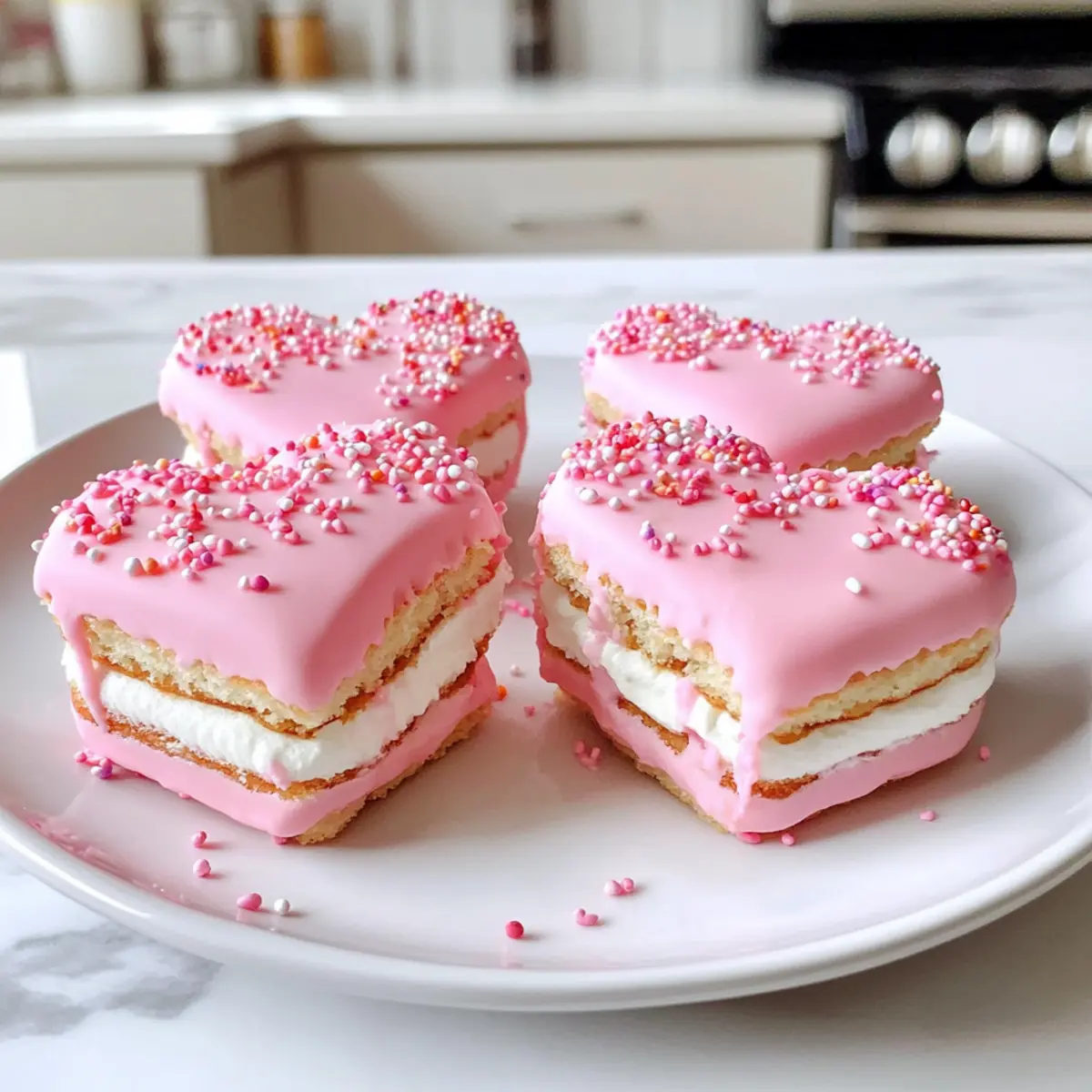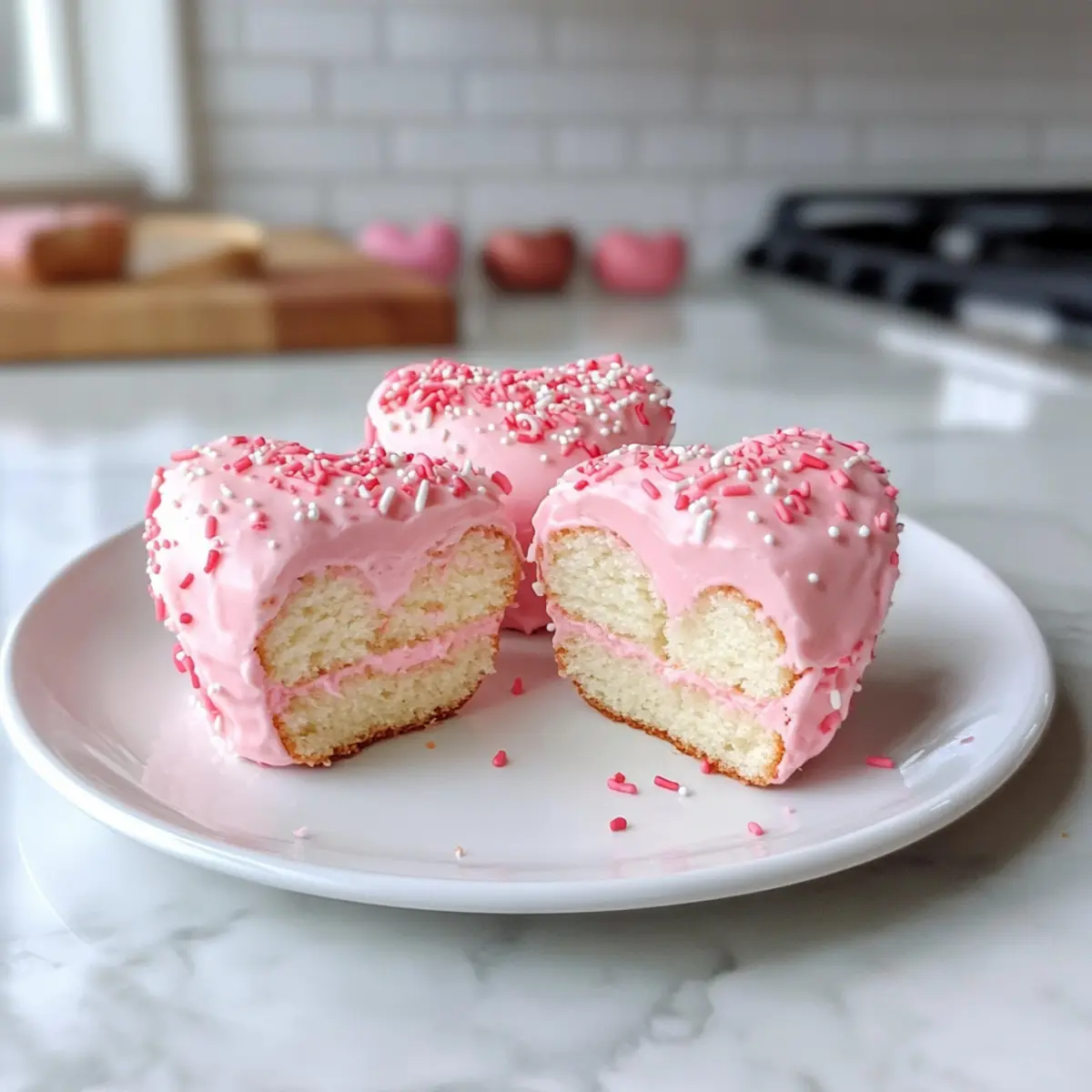 Während ich in meiner Küche stehe, füllt sich der Raum mit dem verführerischen Duft von frisch gebackenem Kuchen, der Erinnerungen an sorglose Kindheitstage weckt. Diese Süße Valentinstag-Herzkuchen sind nicht nur eine Augenweide, sondern auch ein Stück Nostalgie, das perfekt für den Valentinstag geeignet ist. Mit ihren zarten Schichten, einer cremigen Füllung und einer glänzenden pinken Überziehung lassen sie Herzen höherschlagen und sorgen für strahlende Gesichter – besonders bei den Kleinen, die beim Dekorieren helfen können! Darüber hinaus sind sie einfach zuzubereiten und bringen im Handumdrehen Freude in jeden Haushalt. Seid ihr bereit, gemeinsam diese süßen Festlichkeiten zu kreieren? Warum wirst du diese Kuhen lieben? Nostalgie pur: Diese Süße Valentinstag-Herzkuchen bringen Kindheitserinnerungen zurück und sind eine liebevolle Hommage an die köstlichen Leckereien aus der Vergangenheit. Einfach zuzubereiten: Selbst Anfänger in der Backkunst können mit diesem Rezept glänzen; es benötigt nur wenige Zutaten und macht Spaß! Vielfalt beim Dekorieren: Lass deiner Kreativität freien Lauf – egal, ob mit bunten Streuseln oder einer zusätzlichen Schokoladenschicht, der Fantasie sind keine Grenzen gesetzt. Perfekt für besondere Anlässe: Diese Kuchen sind ideal für Valentinstage, Schulfeiern oder Familienfeste und sorgen garantiert für zahlreiche Ahhs und Ohhs. Leckere Frische: Home-Made ist immer besser! Diese Kuchen sind frisch, fluffig und schmecken umso besser, weil sie liebevoll selbst zubereitet wurden. Familienfreundlich: Ein tolles Projekt für die ganze Familie – die Kinder können beim Füllen und Dekorieren helfen! Verliebe dich in das süße Rezept und entdecke auch unsere frischen Zitronen-Trüffel Rezepte. Zutaten für Süße Valentinstag-Herzkuchen • Für die Kuchenbasis: Weiße Kuchenmischung – Basis für die Kuchen; benutze jede weiße Kuchenmischung gemäß den Anweisungen auf der Verpackung. Eier – Stellen die notwendige Feuchtigkeit und Struktur sicher. Öl – Sorgt für einen feuchten und zarten Kuchen. Wasser – Ergänzt die feuchten Zutaten laut Paket. • Für die Füllung: Ungesalzene Butter (1/2 Tasse) – Macht die Füllung cremig und reichhaltig; Margarine kann als Ersatz verwendet werden, falls gewünscht. Puderzucker (1 Tasse) – Süßt die Füllung und verleiht ihr eine dickere Konsistenz. Schwere Sahne (1-2 Esslöffel) – Hilft, eine glatte Konsistenz für die Füllung zu erreichen; Milch kann ersetzt werden, aber Sahne sorgt für mehr Geschmack. Vanilleextrakt – Verstärkt den Geschmack und lässt den Kuchen hausgemacht schmecken. • Für die Glasur: Weiße Schokoladenstückchen oder Candy Melts (2 Tassen) – Zum Überziehen der Kuchen; sorgt für Süße und einen dekorativen Abschluss. Rote oder rosa Gel-Farbe – Fügt Farbe zur Glasur hinzu, für einen festlichen Look; kann angepasst werden, um den gewünschten Farbton zu erreichen. Streusel (optional) – Für zusätzliche Dekoration und Spaß. Die Herstellung dieser Süße Valentinstag-Herzkuchen ist nicht nur einfach, sie macht auch unglaublich viel Spaß! Schritt-für-Schritt-Anleitung für Süße Valentinstag-Herzkuchen Step 1: Kuchen backen Heize den Ofen auf 180 °C vor. Fette ein Backblech mit hohem Rand ein und lege es mit Backpapier aus. Bereite den Kuchenmix gemäß den Anweisungen auf der Verpackung vor und füge den Vanilleextrakt hinzu. Gieße den Teig gleichmäßig in das Blech und backe ihn 18-22 Minuten lang, bis das Zentrum der Kuchen leicht zurückfedert, wenn du es berührst. Step 2: Kuchen abkühlen lassen Lasse den Kuchen nach dem Backen 10 Minuten in der Form abkühlen. Übertrage ihn anschließend vorsichtig auf ein Kühlgitter, damit er vollständig auskühlen kann. Achte darauf, dass der Kuchen gut auskühlt, da ein warmer Kuchen beim Schneiden bröckeln könnte, was für die Süße Valentinstag-Herzkuchen nicht ideal ist. Step 3: Kuchen ausstechen Sobald der Kuchen vollständig abgekühlt ist, benutze einen herzförmigen Ausstecher, um gleich große Herzpaare aus dem Kuchen zu schneiden. Achte darauf, genügend Herzen auszustechen, um sie später mit Füllung zusammenzusetzen. Dies ist der spaßige Teil, der mit den Kindern besonders gut ankommt! Step 4: Füllung herstellen In einer Rührschüssel die ungesalzene Butter mit einem Handmixer cremig schlagen, bis sie fluffig ist. Füge den Puderzucker, Vanilleextrakt und die schwere Sahne hinzu und rühre weiter, bis die Mischung glatt und gut vermischt ist. Diese Füllung wird das Herz deiner Süße Valentinstag-Herzkuchen. Step 5: Kuchen zusammensetzen Verteile einen Löffel der cremigen Füllung gleichmäßig auf einem herzförmigen Kuchenstück. Lege ein zweites Herz vorsichtig darauf, sodass die Füllung dazwischen gleichmäßig verteilt ist. Wiederhole diesen Vorgang für alle Kuchenherzen, um ein leckeres Sandwich zu kreieren. Step 6: Schokolade schmelzen In einer mikrowellengeeigneten Schüssel die weißen Schokoladenstückchen oder Candy Melts in 30-Sekunden-Intervallen erhitzen, bis sie vollständig geschmolzen und glatt sind. Rühre am Ende einen Tropfen Lebensmittelfarbe ein, um die Mischung in einem festlichen Rosaton zu färben, ideal für die Süße Valentinstag-Herzkuchen. Step 7: Kuchen überziehen Tauche jedes Sandwich in die geschmolzene Schokolade oder benutze einen Löffel, um die Schokolade darüber zu gießen. Klopfe sanft auf das Sandwich, um überschüssige Schokolade entfernen und setze sie dann auf ein Gitter, sodass die Glasur aushärten kann. Achte darauf, dass die Kuchen gut überzogen sind. Step 8: Dekorieren Lasse die überzogenen Kuchen für 30 Minuten an der Luft trocknen, bis die Schokolade fest ist. Optional kannst du nun noch bunte Streusel oder Schokoladendekorationen hinzufügen, um deinen Süße Valentinstag-Herzkuchen einen besonderen Touch zu verleihen. Lass deiner Kreativität freien Lauf und genieße das Dekorieren! Expertentipps für Sü