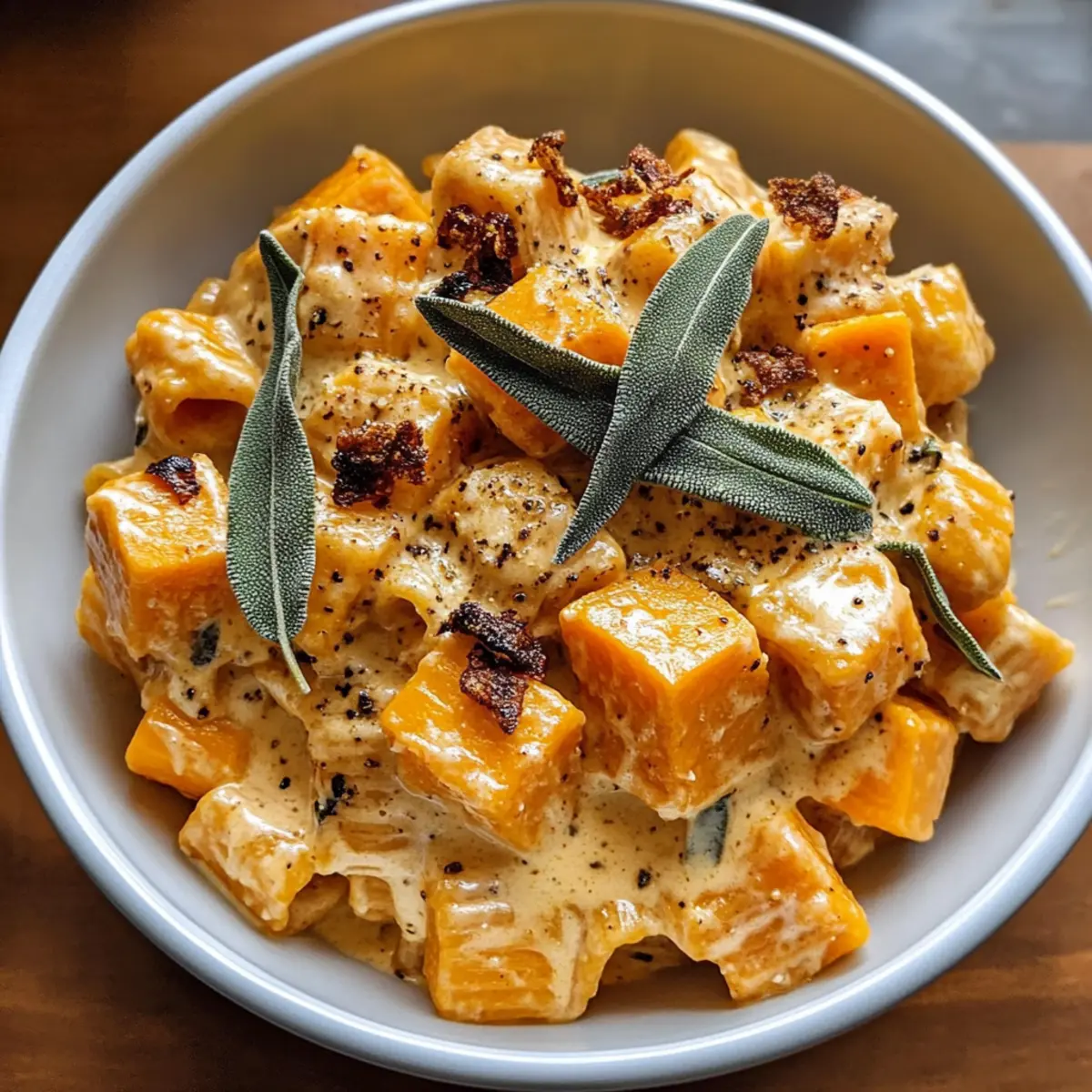 Jeden Bissen dieses Gerichts ist wie ein warmes Umarmen an einem kalten Abend. Bei der Zubereitung meines cremigen Süßkartoffel Ziegenkäse Salbei Pasta wird der süße Geschmack der gerösteten Süßkartoffeln mit der herzhaften Note des Ziegenkäses vereint, während knusprige Salbeiblätter für den gewissen Extra-Kick sorgen. Diese Kombination ist nicht nur ein echter Hingucker für deine Gäste, sondern auch einfach zuzubereiten und perfekt für eine gemütliche Mahlzeit zu Hause. Darüber hinaus kannst du das Gericht ganz nach deinen Vorlieben anpassen, ob mit glutenfreier Pasta oder veganen Alternativen. Was könnte besser sein, um deine Kochabende aufzupeppen? Lass uns gemeinsam in die Welt der Aromen eintauchen! Warum wirst du dieses Pasta Rezept lieben? Einfachheit: Die Zubereitung dieser Pasta ist kinderleicht und erfordert kein umfangreiches Kochwissen. Vielfältigkeit: Ob du mit veganen Alternativen experimentierst oder die glutenfreie Option wählst, diese Rezeptur passt sich perfekt deinen Bedürfnissen an. Reiche Aromen: Die Kombination aus süßen, gerösteten Süßkartoffeln und dem würzigen Ziegenkäse sorgt für ein Geschmacksfest. Cremige Textur: Die sahnige Sauce umhüllt die Pasta und macht jeden Bissen zu einem Genuss. Perfekte Portionsgröße: Ideal für entspannte Abende mit Freunden oder selbstgemachte Familienessen! Schlage vor, dazu einen frischen grünen Salat als Beilage zu servieren, um das Gericht abzurunden. Süßkartoffel Ziegenkäse Salbei Zutaten Für die Pasta • Süßkartoffeln – sorgen für natürliche Süße und Fülle; kann durch Butternusskürbis oder Kürbis ersetzt werden. • Knoblauch – verstärkt den Geschmack; frisch gehackt für das beste Aroma verwenden. • Kurze Pasta (Rigatoni, Penne, Fusilli) – hält die Sauce gut; glutenfreie Alternativen sind ebenfalls geeignet. • Ziegenkäse – sorgt für eine cremige Textur und pikanten Geschmack; kann durch veganen Käse oder Ricotta ersetzt werden. • Schlagsahne – fügt der Sauce Reichhaltigkeit hinzu; pflanzliche Sahne ist eine leichtere Alternative. Für die Kruste • Frische Salbeiblätter – bieten ein aromatisches Kräuteraroma; kann durch Thymian ersetzt oder weggelassen werden. • Olivenöl – wird zum Rösten und Frittieren verwendet und verleiht zusätzlichen Geschmack; ein Spritzer zum Servieren erhöht den Genuss. • Ungesalzene Butter – sorgt für Cremigkeit beim Frittieren der Salbeiblätter; kann für vegane Zubereitung weggelassen werden. Für die Würze • Salz & schwarzer Pfeffer – unverzichtbar zum Abschmecken; nach persönlichem Geschmack anpassen. • Parmesankäse – verleiht einen umami Geschmack als krönenden Abschluss; optional für die vegane Version. Genieße die Zubereitung dieser köstlichen Süßkartoffel Ziegenkäse Salbei Pasta und tauche ein in eine Welt der Aromen! Schritt-für-Schritt-Anleitung für Süßkartoffel Ziegenkäse Salbei Pasta Step 1: Süßkartoffeln rösten Heize den Ofen auf 220 °C vor. Schneide die Süßkartoffeln in kleine Würfel und mische sie in einer Schüssel mit Olivenöl, Salz und Pfeffer. Verteile die gewürzten Würfel gleichmäßig auf einem Backblech und röste sie 20-25 Minuten lang, bis sie zart und karamellisiert sind. Wende sie nach der Hälfte der Zeit, um eine gleichmäßige Bräunung zu gewährleisten. Step 2: Pasta kochen Bringe in einem großen Topf ausreichend gesalzenes Wasser zum Kochen. Füge die kurze Pasta deiner Wahl hinzu und koche sie gemäß den Anweisungen auf der Verpackung, bis sie al dente ist. Bevor du die Pasta abgießt, hebe 150 ml des Kochwassers auf. Lass die Pasta abtropfen und stelle sie beiseite, während du die anderen Zutaten zubereitest. Step 3: Salbeiblätter frittieren Erhitze in einer großen Pfanne bei mittlerer Hitze etwa 2 Esslöffel Olivenöl und die Butter. Füge die frischen Salbeiblätter hinzu und brate sie 1-2 Minuten lang, bis sie knusprig und goldbraun sind. Nimm die Salbeiblätter aus der Pfanne und lasse sie auf Küchenpapier abtropfen, um überschüssiges Fett zu entfernen. Step 4: Zutaten kombinieren Gib die gerösteten Süßkartoffeln in die Pfanne, in der du die Salbeiblätter frittiert hast. Zerdrücke die Hälfte der Süßkartoffeln mit einer Gabel, während du die andere Hälfte in Stücken lässt. Füge die gekochte Pasta, die Schlagsahne, den Ziegenkäse und das reservierte Kochwasser hinzu. Mische alles gut, bis eine cremige Sauce entsteht, die die Pasta umhüllt. Step 5: Abschmecken und Servieren Schmecke die Süßkartoffel Ziegenkäse Salbei Pasta mit Salz und schwarzem Pfeffer ab. Serviere auf Tellern und garniere die Portionen mit den knusprigen Salbeiblättern, frisch geriebenem Parmesan und einem zusätzlichen Spritzer Olivenöl für das volle Aroma. Lagerungstipps für Süßkartoffel Ziegenkäse Salbei Pasta Kühlschrank: Bewahre die Reste der Süßkartoffel Ziegenkäse Salbei Pasta in einem luftdichten Behälter auf. Sie bleiben bis zu 3 Tage frisch und schmackhaft. Gefrierschrank: Du kannst die Sauce für bis zu 2 Monate einfrieren. Stelle sicher, dass sie in einem gefrierfesten Behälter untergebracht ist und vollständig abgekühlt ist. Wiedereinwärmen: Um die cremige Konsistenz beim Aufwärmen wiederherzustellen, füge einen Spritzer des aufbewahrten Kochwassers hinzu. Erhitze die Pasta sanft in einer Pfanne oder in der Mikrowelle. Beachtung: Um die Frische der knusprigen Salbeiblätter zu erhalten, füge sie erst kurz vor dem Servieren hinzu. Expertentipps für Süßkartoffel Ziegenkäse Salbei Pasta Rösten leicht gemacht: Achte darauf, die Süßkartoffeln gleichmäßig zu schneiden, damit sie alle zur gleichen Zeit garen und karamellisieren. Perfekte Sahne: Wenn du die Pasta erneut aufwärmst, füge einen Schuss des Kochwassers hinzu, um die cremige Textur wiederherzustellen. Knusprige Salbeiblätter: Halte die frittierten Salbeiblätter separat, bis du servierst, um ihre Knusprigkeit zu bewahren. Würzen nach Geschmack: Passe die