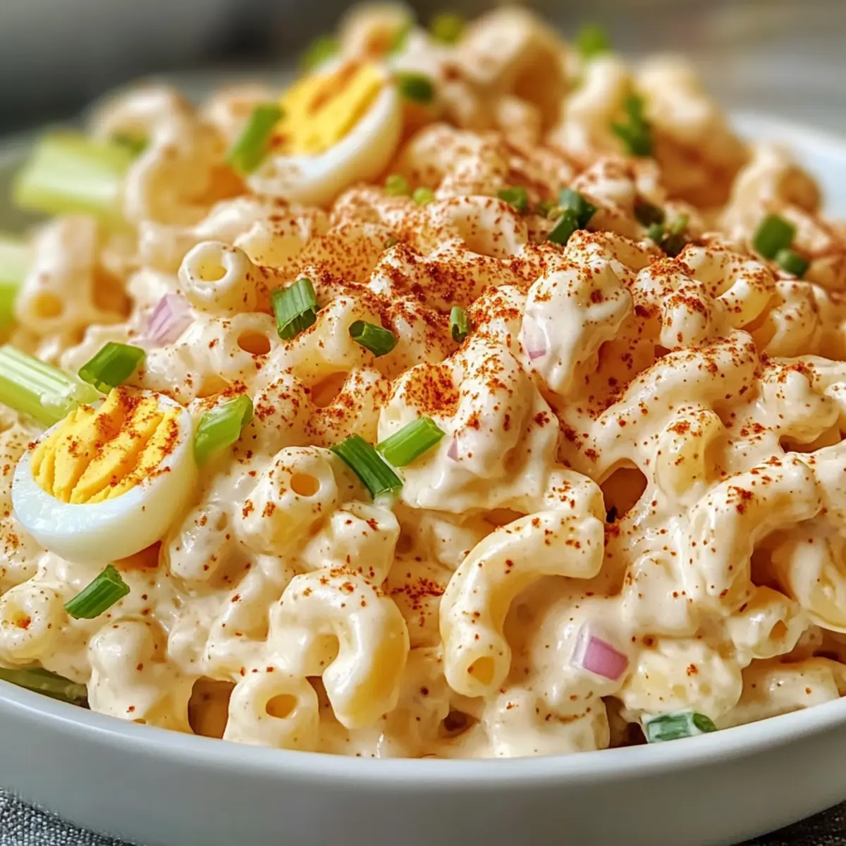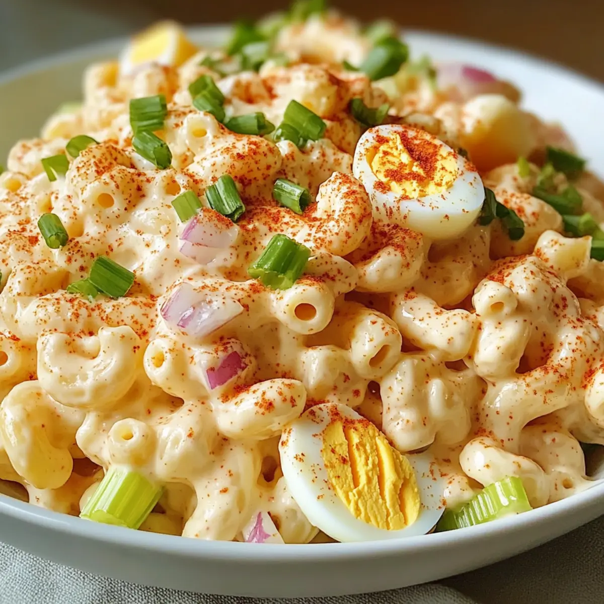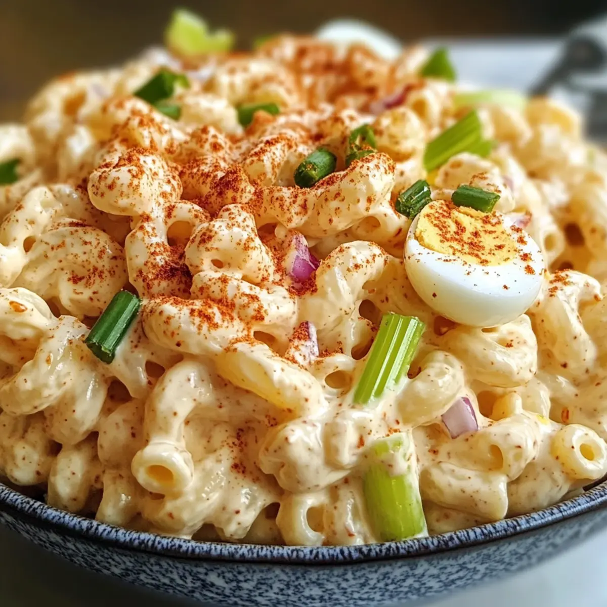 Teufels-Ei-Makkaroni-Salat ist eine cremige und herzliche Variante, perfekt für Picknicks und Familienfeiern.