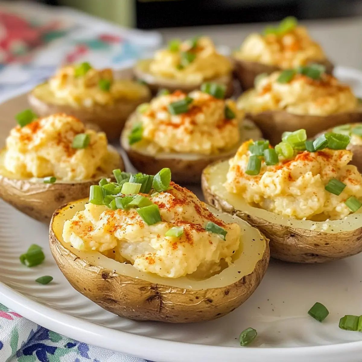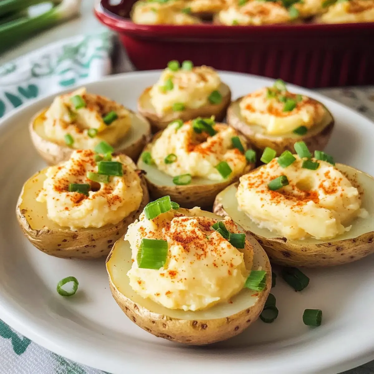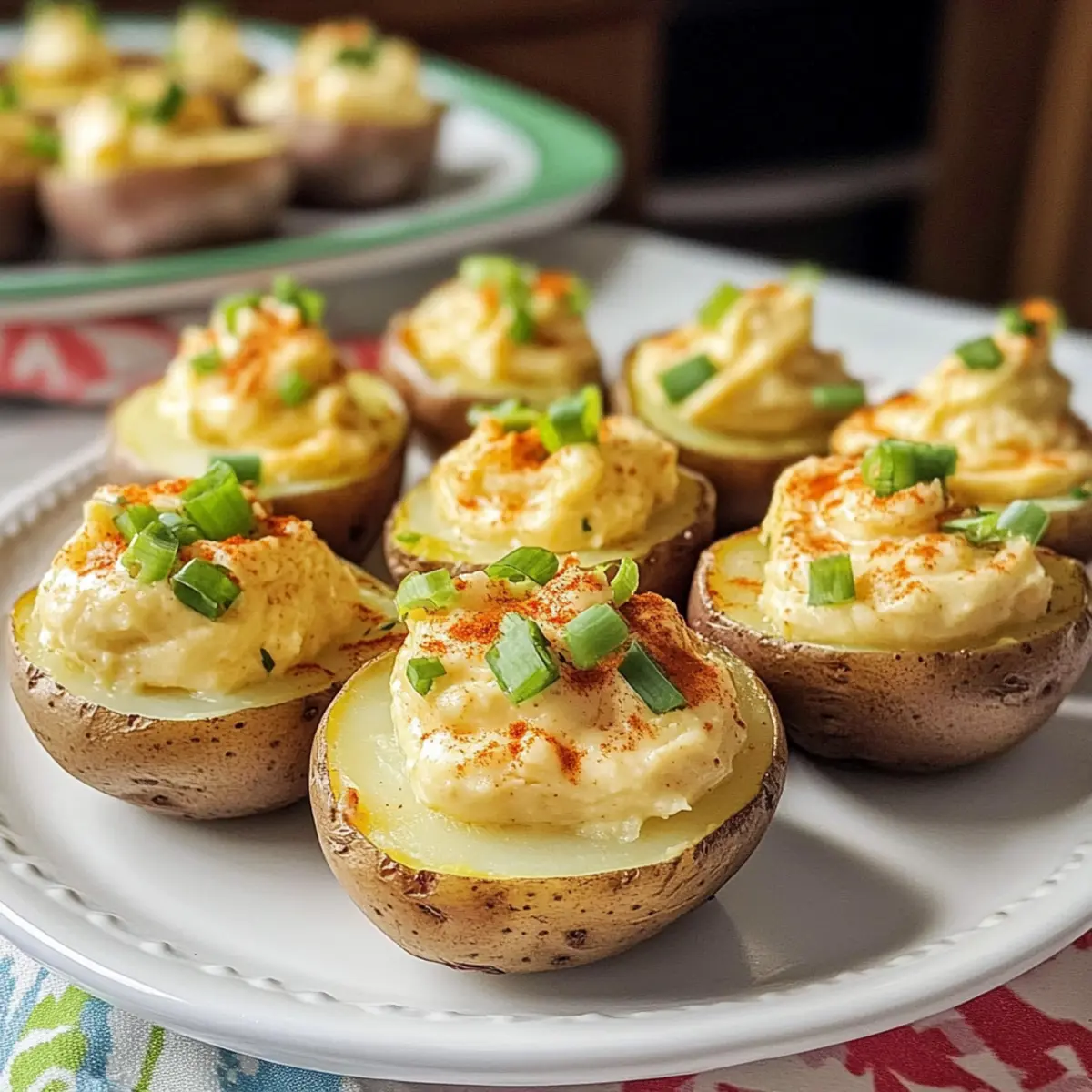 Hast du schon einmal das Gefühl gehabt, dass die alten Favoriten ein wenig frischen Wind gebrauchen könnten? Diese Teufelskartoffeln sind genau das: eine spritzige Neuinterpretation der klassischen Deviled Eggs, die sowohl den Geldbeutel schont als auch für Gaumenfreuden sorgt. Diese kleinen, cremigen Kartoffelhälften sind nicht nur einfach zuzubereiten, sondern auch perfekt zum Vorbereiten – ideal für Partys oder ein entspanntes Beisammensein. Serviere sie lauwarm oder kalt, und der Genuss steht auf jeden Fall bevor! Möchtest du wissen, wie du mit nur wenigen Zutaten ein solches Geschmackserlebnis kreieren kannst? Lass uns gemeinsam eintauchen! Warum wirst du diese Teufelskartoffeln lieben? Einfachheit: Die Zubereitung dieser Teufelskartoffeln ist kinderleicht und erfordert nur grundlegende Kochfähigkeiten. Köstlicher Geschmack: Die kreme Füllung, angereichert mit Senf und Gewürzen, bietet ein Geschmackserlebnis, das alle Gäste begeistert. Vielseitigkeit: Ideal als Party-Appetizer oder als Beilage zu einem Brunch – du kannst sie zu jeder Gelegenheit servieren! Budgetfreundlich: Diese leckeren Kartoffeln sind eine kostengünstige Alternative zu herkömmlichen Partysnacks. Vorbereitung: Du kannst sie einen Tag im Voraus zubereiten und einfach im Kühlschrank aufbewahren – Stressfrei und zeitsparend! Geselligkeit: Perfekt für jedes Zusammenkommen, bei dem du deine Freunde und Familie verwöhnen möchtest. Schau dir auch unser Rezept für Fingerfood-Ideen an, um weitere Inspirationen zu finden! Teufelskartoffeln Zutaten • Verwandele einfache Zutaten in einen herzhaften Snack! Für die Kartoffeln Baby-Kartoffeln – 12 Stück als Grundlage, koche mehr für die Füllung. Salz – 2 Teelöffel für das Kochwasser, hebt den Geschmack hervor. Wasser – 8 Tassen, notwendig zum Kochen der Kartoffeln bis sie zart sind. Für die Füllung Mayonnaise oder Sauerrahm – sorgt für eine cremige Textur; veganen Aufstrich verwenden, wenn nötig. Gelber Senf – für einen würzigen Geschmack; beginne mit 1 Teelöffel und passe nach Belieben an. Dill-Relishsaft – bringt Frische und Säure; zitronensaft als Alternativ verwenden, wenn nicht verfügbar. Knoblauchpulver – für zusätzliche Geschmackstiefe; ½ Teelöffel hinzufügen. Zwiebelpulver – ergänzt die Füllung geschmacklich; ebenfalls ½ Teelöffel. Gemahlener Pfeffer und zusätzliches Salz – je ¼ Teelöffel zur Geschmacksverstärkung. Für die Garnitur Optional: Frische Frühlingszwiebeln – für eine frische Note und zusätzliche Farbe. Paprika – zum Bestäuben für eine ansprechende Präsentation. Diese Teufelskartoffeln sind nicht nur ein Gaumenschmaus, sondern auch eine tolle Möglichkeit, Gäste zu begeistern – viel Spaß beim Zubereiten! Step-by-Step Instructions for Teufelskartoffeln Step 1: Kartoffeln vorbereiten Wasche die Baby-Kartoffeln gründlich und schneide sie der Länge nach auf. Koche die Kartoffeln in einem großen Topf mit 8 Tassen Wasser und 2 Teelöffeln Salz für 15 bis 20 Minuten, bis sie zart sind. Teste die Zartheit, indem du mit einer Gabel hineinstechst; sie sollten leicht zerdrückbar sein. Step 2: Abkühlen & Aushöhlen Nimm die Kartoffeln aus dem Wasser und lasse sie in einem kalten Wasserbad einige Minuten abkühlen. Wenn sie kühl genug sind, um sie zu handhaben, schöpfe vorsichtig das Innere der Kartoffeln mit einem Löffel oder einem Grapefruit-Messer aus, ohne die Schalen zu beschädigen. Bewahre die Kartoffelschalen für die Füllung auf. Step 3: Füllung mischen In einer großen Schüssel vermenge das ausgehöhlte Kartoffelinnere mit Mayonnaise (oder Sauerrahm), 1 Teelöffel gelbem Senf, Dill-Relishsaft, Knoblauchpulver, Zwiebelpulver, ¼ Teelöffel Salz und ¼ Teelöffel gemahlenem Pfeffer. Rühre alles gut durch, bis eine cremige und gleichmäßige Füllung entsteht; passe den Senf nach deinem Geschmack an. Step 4: Kartoffeln befüllen Verwende einen Esslöffel oder einen Spritzbeutel, um die vorbereitete Füllung in die Kartoffelschalen zu geben. Fülle die Schalen großzügig, sodass die Füllung gut über den Rand hinausragt. Achte darauf, dass die Füllung gleichmäßig verteilt ist, um ein ansprechendes Aussehen zu erzielen. Step 5: Garnieren & Servieren Bestreue die gefüllten Teufelskartoffeln mit etwas Paprika und frisch gehackten Frühlingszwiebeln für zusätzlichen Geschmack und eine ansprechende Präsentation. Stelle die Kartoffeln bis zum Servieren in den Kühlschrank, damit sie kalt und frisch bleiben. Ideal für Partys oder gesellige Zusammenkünfte! Lagerungstipps für Teufelskartoffeln Raumtemperatur:: Bewahre die Teufelskartoffeln nicht länger als 2 Stunden bei Raumtemperatur auf, um die Frische zu gewährleisten. Kühlschrank:: Im Kühlschrank halten sich die gefüllten Teufelskartoffeln bis zu 4-5 Tage. Decke sie ab, um ein Austrocknen zu verhindern. Tiefkühltruhe:: Du kannst die ungefüllten Kartoffelschalen bis zu 3 Monate im Gefriergerät aufbewahren. Fülle sie erst kurz vor dem Servieren. Wiederwärmen:: Wenn du die gefüllten Teufelskartoffeln aufwärmen möchtest, tue dies im Backofen bei 180°C für etwa 10 Minuten, damit die Füllung warm bleibt. Teufelskartoffeln im Voraus zubereiten Die Teufelskartoffeln sind perfekt für die Vorbereitung und bieten dir viel Zeitersparnis. Du kannst die Kartoffeln bis 24 Stunden im Voraus vorbereiten, indem du sie kochst und aushöhlst. Lasse die Schalen abkühlen, bevor du das innere Kartoffelstück vermischt mit Mayonnaise, Senf, und Gewürzen in einem luftdichten Behälter im Kühlschrank aufbewahrst. Beachte, dass du die Füllung erst kurz vor dem Servieren in die Schalen gibst, um die Schönheit der Präsentation zu gewährleisten. So bleiben die Teufelskartoffeln frisch und köstlich! Bei bester Lagerung halten sie sich bis zu 3-4 Tagen im Kühlschrank oder bis zu 3 Monate im Gefrierfach, wobei das Einfrieren die Qualität minimal beeinträchtigen kann. Teufelskartoffeln Variationen & Ersatzmöglichkeite