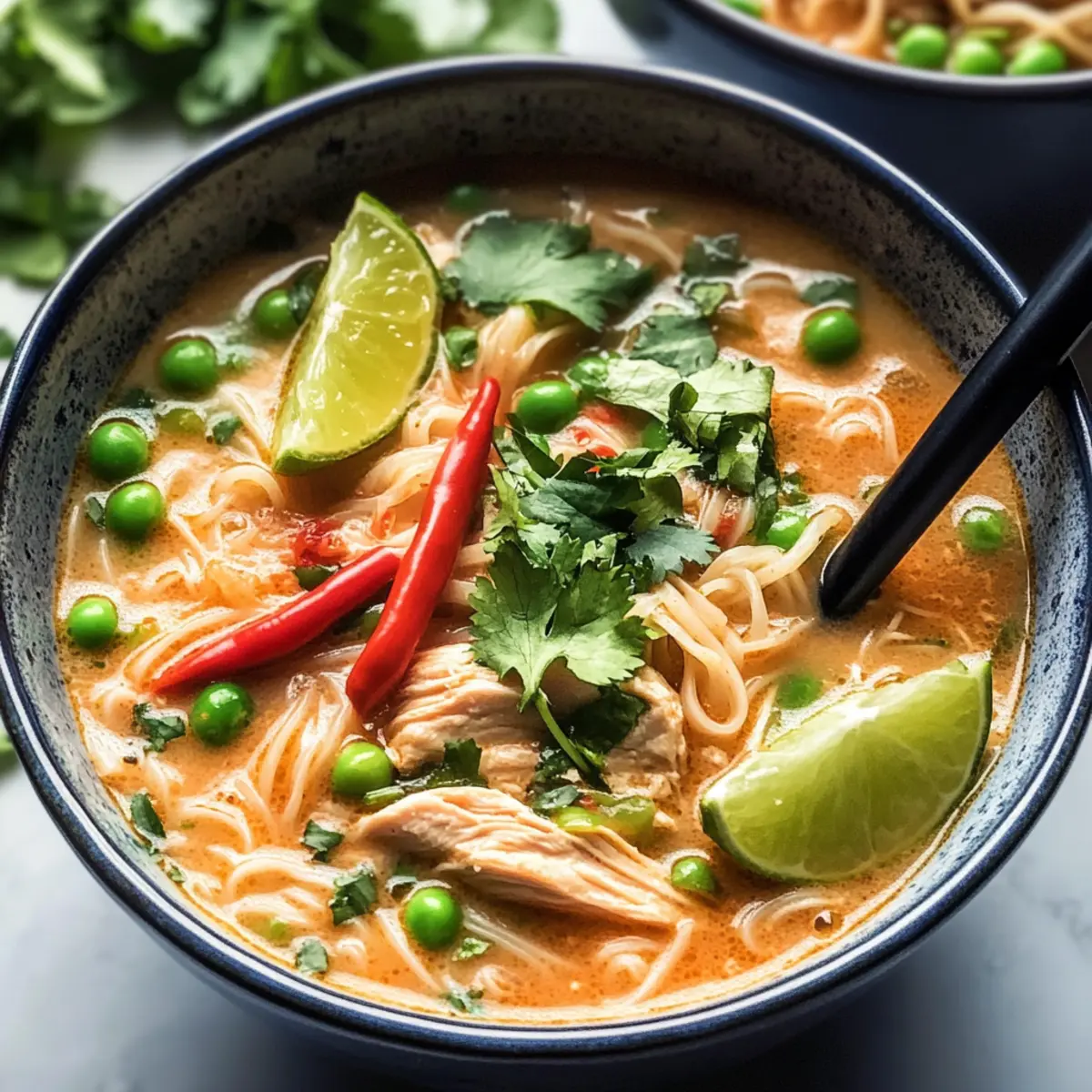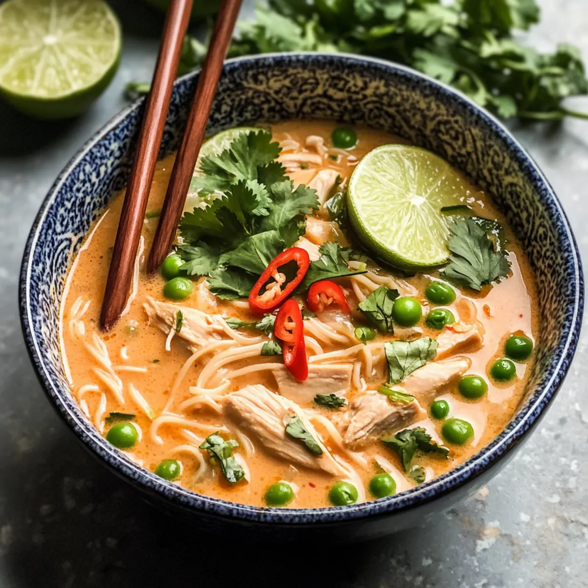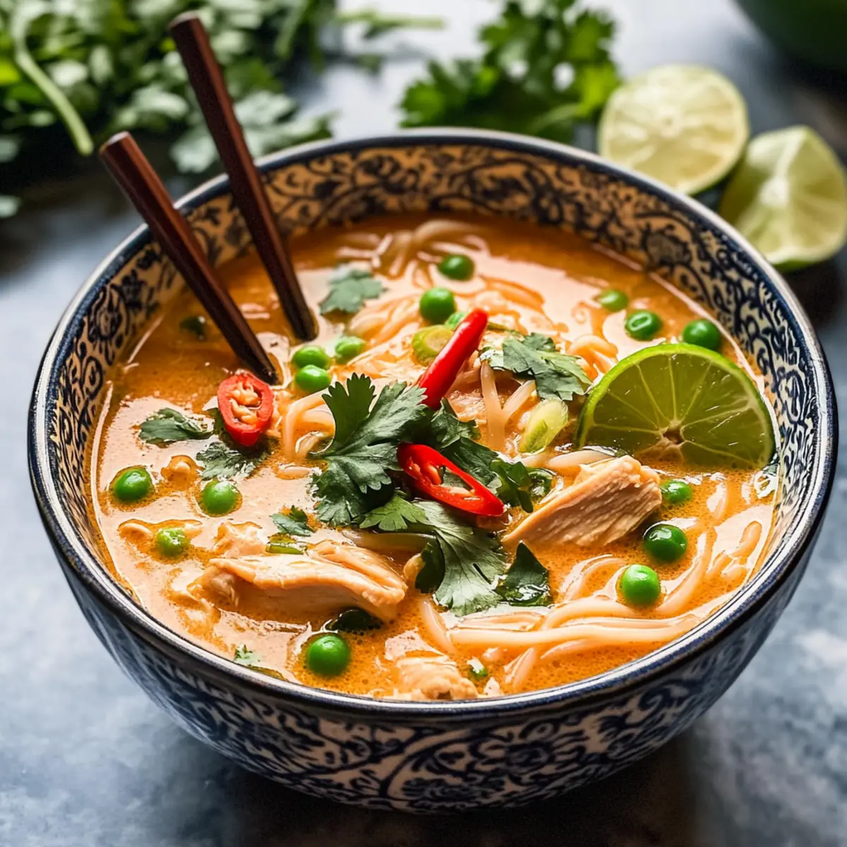 Es war ein kalter Winterabend, als ich zum ersten Mal die Aromen Thailands in meinem kleinen Küchenfenster entdeckte. Die Easy Slow Cooker Thai-Hühnchen-Suppe ist nicht nur ein Gericht, sondern ein Erlebnis, das dich in die warme Umarmung der asiatischen Küche entführt. Mit minimalem Aufwand zauberst du ein aromatisches, würziges Comfort Food, das nicht nur sättigt, sondern auch das Herz erfreut. Ob für ein geselliges Familientreffen oder ein schnelles Mittagessen unter der Woche, diese Suppenklassiker verbindet frische Zutaten mit der Bequemlichkeit eines Slow Cookers. Und das Beste: Du kannst ganz nach Belieben variieren, sei es mit zartem Hähnchen oder saftigen Garnelen sowie zusätzlichen Gemüse- und Gewürzoptionen. Bist du bereit, dich von den köstlichen Aromen verführen zu lassen? Was macht diese Suppe so besonders? Einfachheit: Die Zubereitung ist unkompliziert und erfordert keine besonderen Kochkünste; einfach alle Zutaten in den Slow Cooker geben. Reiche Aromen: Die Kombination von roter Currypaste, Kokosnussmilch und frischen Kräutern sorgt für einen transparenten, köstlichen Geschmack, der alle begeistert. Vielfalt: Du kannst leicht zwischen Hähnchen und Garnelen wechseln oder dein Lieblingsgemüse hinzufügen – für jeden Geschmack ist etwas dabei! Schnelligkeit: Mit nur wenigen Minuten Vorbereitungszeit und dann erledigt der Slow Cooker die Arbeit, hast du im Handumdrehen ein leckeres Mittagessen. Die perfekte Comfort Food: Diese Suppe ist nicht nur wärmend, sondern auch nährend und bringt dir ein Stück Bangkok nach Hause. Mit dem Rezept der Easy Slow Cooker Thai Chicken Noodle Soup wirst du ganz sicher zum Familienfavoriten! Thai-Hühnchen-Suppen-Zutaten Hinweis: Diese aromatische Thai-Hühnchen-Suppe lässt sich nach Belieben anpassen und mit verschiedenen Zutaten bereichern. Für die Brühe • Rote Currypaste – sorgt für eine lebhafte, würzige Geschmacksbasis; verwende grüne Currypaste für ein anderes Geschmacksprofil. • Kokosmilch – verleiht Cremigkeit und Reichhaltigkeit; Vollfett ist für die beste Textur empfohlen. • Hühnerbrühe – bildet die Basis der Suppe und sorgt für Tiefe; selbstgemachte Brühe kann den Geschmack verbessern. • Fischsauce – verstärkt die Herzhaftere der Suppe; lasse sie weg für eine vegetarische Version oder nutze Sojasauce als Ersatz. Für das Gemüse • Zwiebel – vertieft den Geschmack der Suppe; gelbe oder weiße Zwiebeln sind am besten. • Rote Paprika – trägt zur Süße und zur Farbe bei; gelbe oder orange Paprika können als Ersatz verwendet werden. • Minzinger – bringt einen scharfen, aromatischen Kick; frischer Ingwer ist zu empfehlen. • Erbsen (gefroren) – fügen einen süßen Geschmack hinzu; frische oder andere gefrorene Gemüse sind mögliche Alternativen. Für die Hauptzutaten • Hähnchenbrust – die Hauptquelle für Protein, gewürfelt; Hähnchenoberschenkel können für mehr Geschmack verwendet werden. • Reisnudeln – nehmen den Geschmack der Suppe auf und sorgen für eine tolle Textur; andere asiatische Nudeln können verwendet werden, die Kochzeit kann jedoch variieren. Für die Gewürze • Knoblauch – sorgt für aromatische Tiefe; frischer Knoblauch ist für den besten Geschmack bevorzugt. • Limette – verleiht Frische und Helligkeit, frischer Saft und Abrieb sind wichtig für den Geschmack. • Sojasauce – bietet Umami und Tiefe; Tamari kann für eine glutenfreie Option verwendet werden. • Salz – nach Geschmack; am Ende der Kochzeit anpassen, um die richtige Balance zu finden. Entdecke die genussvollen Aromen der Thai-Hühnchen-Suppe und lass dich von den vierteln des Geschmacks umarmen! Schritt-für-Schritt-Anleitung für die Thai-Hühnchen-Suppe Schritt 1: Gewürzmischung zubereiten Gib die rote Currypaste, den braunen Zucker, den Knoblauch, den Koriander, die rote Paprika, die Zwiebel, den Ingwer und die Chili in eine Küchenmaschine. Püriere die Mischung, bis eine glatte Paste entsteht. Achte darauf, dass alle Zutaten gut miteinander vermischt sind – dies ist die aromatische Basis für deine Thai-Hühnchen-Suppe! Schritt 2: Zubereitung im Slow Cooker Übertrage die Paste aus der Küchenmaschine in deinen Slow Cooker. Füge nun die Hühnerbrühe und die gewürfelten Hähnchenbruststücke hinzu. Rühre alles gut um, damit die leckeren Aromen gleichmäßig verteilt sind. Stelle deinen Slow Cooker auf HIGH für 4 Stunden oder auf LOW für 8 Stunden ein, bis das Hähnchen zart ist. Schritt 3: Hähnchen zerkleinern Nach dem Kochvorgang nimm das Hähnchen aus dem Slow Cooker und zerkleinere es mit zwei Gabeln in mundgerechte Stücke. Gib das zerkleinerte Hähnchen zurück in den Slow Cooker und füge die Kokosmilch sowie die Reisnudeln hinzu. Koche alles zusammen für weitere 10–15 Minuten auf HIGH, bis die Nudeln weich sind und den Geschmack der Suppe aufgenommen haben. Schritt 4: Gemüse hinzufügen Rühre die gefrorenen Erbsen sowie den Limettenabrieb und -saft in die Suppe. Ergänze nach Belieben die Sojasauce und die Fischsauce und schmecke mit Salz ab. Lass die Suppe für einige Minuten weiter köcheln, sodass die Erbsen warm werden und die Aromen sich gut verbinden. Schritt 5: Anrichten und Servieren Serviere die heiße Thai-Hühnchen-Suppe in schönen Schalen. Garniere das Gericht mit frischem Koriander, geschnittenen Frühlingszwiebeln, zusätzlicher roter Chili und Limettenstücken für einen spritzigen Geschmack. Genieße diese köstliche Suppe, die nicht nur nährend, sondern auch ein Stück thailändischer Küche zu dir nach Hause bringt! Thai-Hühnchen-Suppe Variationen & Alternativen Lass dich von der Zauberkraft der Anpassungsmöglichkeiten verzaubern und finde deinen eigenen perfekten Geschmack! Hähnchen vs. Garnelen: Tausche die Hähnchenbrust gegen saftige Garnelen für eine leicht maritime Note. Perfekt für Seafood-Liebhaber! Gemüsevielfalt: Füge zusätzliches Gemüse wie Pak Choi oder Champignons hinzu, um mehr Farbe und Nä