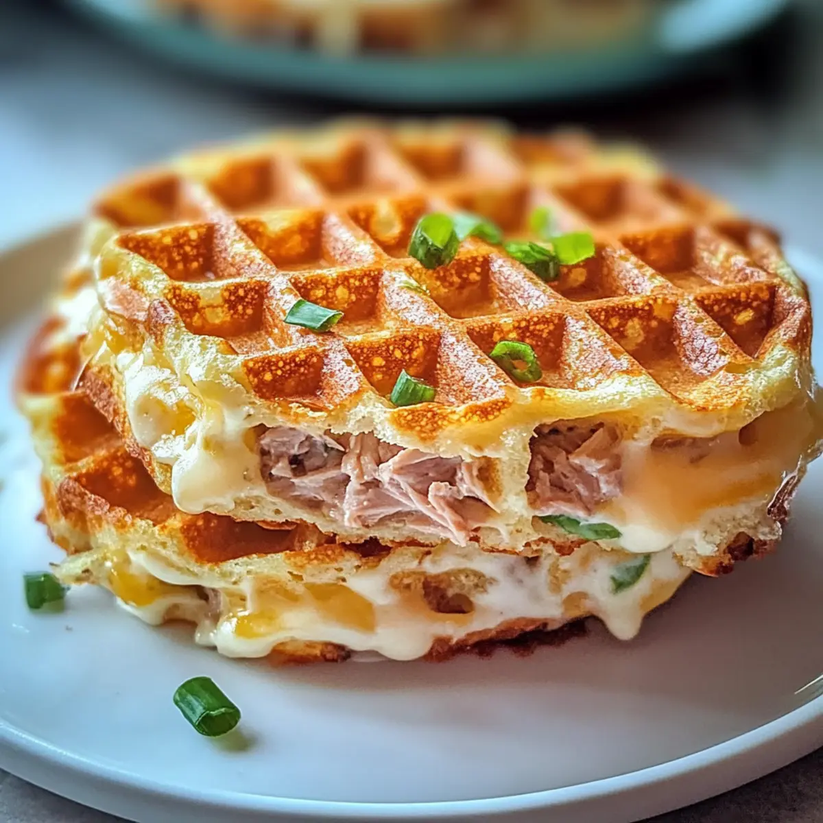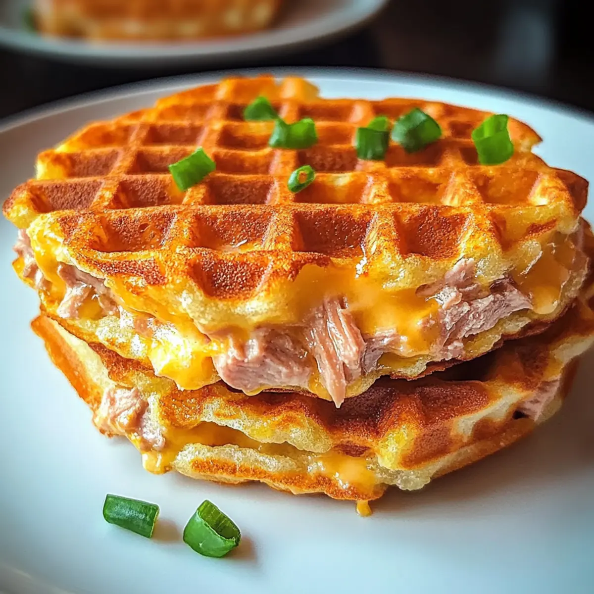 Wie oft habe ich mich schon gefragt, wie ich meine Gelüste nach einem herzhaften Snack stillen kann, ohne dabei die Diät zu gefährden? Die Lösung fand ich in diesen knusprigen Thunfischschmelz-Chaffles! Diese kleinen Wunder bringen den klassischen Geschmack eines Thunfischschmelzes mit einem köstlichen, kohlenhydratarmen Twist auf den Tisch. In weniger als 20 Minuten zubereitet, sind sie nicht nur ein Hit bei schnellen Abendessen, sondern auch eine proteinreiche, glutenfreie Option, die selbst die skeptischsten Esser begeistert. Perfekt für diejenigen, die nach einer leckeren Alternative zu Fast Food suchen – und das Beste daran? Du kannst sie ganz nach deinem Geschmack variieren! Welche köstlichen Zutaten wirst du auswählen, um deine eigenen Chaffles zu kreieren? Warum wirst du dieses Rezept lieben? Einfachheit in Vollendung: Die Zubereitung ist denkbar einfach und benötigt nur grundlegende Kochkenntnisse. Herzhafter Geschmack: Die Kombination aus Thunfisch und Käse sorgt für ein reichhaltiges Aroma, das du lieben wirst. Vielseitige Variationen: Du kannst die Chaffles ganz nach deinem Geschmack anpassen, ob mit feurigen Jalapeños oder frischen Kräutern. Schnell gemacht: In weniger als 20 Minuten genießt du eine sättigende Mahlzeit, perfekt für beschäftigte Abende. Ideal für alle Diäten: Ob low-carb, glutenfrei oder sogar vegan – diese Chaffles passen zu vielen Ernährungsweisen und sind eine großartige Alternative zu Fertiggerichten. Thunfischschmelz-Chaffle Zutaten Entdecke die köstlichen Zutaten für deine Thunfischschmelz-Chaffles! Für den Teig Eier – Bietet die nötige Bindung; für vegane Optionen verwende ein Flax-Ei. Käse (gerieben) – Sorgt für reichhaltigen Geschmack und Knusprigkeit; ersetze ihn durch laktosefreien Käse für eine milchfreie Variante. Thunfisch (fest oder Stückchen) – Liefert die nötige Cremigkeit und Protein; achte darauf, ihn gut abzutropfen, um eine matschige Konsistenz zu vermeiden. Salz – Hebt den Geschmack hervor; passe die Menge je nach Salzigkeit des verwendeten Käses an. Schritt-für-Schritt-Anleitung für Thunfischschmelz-Chaffle Step 1: Waffeleisen vorheizen Heize dein Mini-Waffeleisen für etwa 5-10 Minuten vor, bis es gut heiß ist. Das Vorheizen ist wichtig, damit die Thunfischschmelz-Chaffles beim Backen die perfekte knusprige Konsistenz erreichen. Achte darauf, dass die Platten gleichmäßig heiß sind, um ein optimales Ergebnis zu erzielen. Step 2: Ei verquirlen Nehme eine Schüssel und schlage 1 großes Ei mit einem Schneebesen kräftig auf, bis es gut vermischt ist. Das Ei dient als Bindemittel und verleiht den Thunfischschmelz-Chaffles die notwendige Struktur. Achte darauf, dass keine Klumpen zurückbleiben, um eine homogene Mischung zu gewährleisten. Step 3: Thunfisch und Käse hinzufügen Füge nun 1 Dose gut abgetropften Thunfisch und 1 Tasse geriebenen Käse in die Schüssel mit dem verquirlten Ei hinzu. Vermische alles gut, bis die Zutaten gleichmäßig verteilt sind. Die Käse-Thunfisch-Mischung sollte cremig und leicht zusammenhaltend sein, um einen köstlichen Chaffle zu formen. Step 4: Zusätzlichen Käse einstreuen Wenn das Waffeleisen betriebsbereit ist, streue einen Teelöffel Käse direkt auf die heiße Platte, bevor du die Thunfischmischung hinzufügst. Dies sorgt für eine extra knusprige Schicht an der Unterseite der Thunfischschmelz-Chaffles und fügt beim Bissen eine wunderbare Käse-Note hinzu. Step 5: Chaffle backen Gib die Hälfte der Thunfischmischung gleichmäßig auf die heiße Waffelplatte und schließe den Deckel. Lass die Mischung für etwa 4 Minuten backen oder bis die Chaffle goldbraun und knusprig ist. Behalte die Chaffle im Auge, um sicherzustellen, dass sie gleichmäßig bräunt und nicht verbrennt. Step 6: Chaffle vorsichtig entfernen Nach dem Backen öffne das Waffeleisen vorsichtig und nutze eine Gabel oder einen Holzspatel, um die Chaffle ohne Zerbrechen herauszunehmen. Lass die fertige Chaffle auf einen Teller gleiten und wiederhole den Vorgang mit der restlichen Mischung, um die zweite Portion Thunfischschmelz-Chaffles zuzubereiten. Step 7: Abkühlen lassen und servieren Lass die Chaffles nach dem Backen für 1-2 Minuten abkühlen, damit sie ihre Struktur festigen. Serviere die Thunfischschmelz-Chaffles warm und genieße sie als herzhaften Snack oder leichtes Hauptgericht. Diese Kombination aus knusprigem Käse und saftigem Thunfisch wird sicher jede Geschmacksknospe erfreuen! Aufbewahrungstipps für Thunfischschmelz-Chaffles Raumtemperatur: Genießen Sie die Chaffles frisch, denn bei Zimmertemperatur sollten sie nicht länger als 1-2 Stunden stehen gelassen werden. Kühlschrank: Lagern Sie übrig gebliebene Thunfischschmelz-Chaffles in einem luftdichten Behälter im Kühlschrank für bis zu 2 Tage, um ihre Frische zu bewahren. Gefrierfach: Wickeln Sie die Chaffles gut in Frischhaltefolie und frieren Sie sie für bis zu 2 Monate ein. Sie sind eine hervorragende, schnelle Option für zukünftige Snacks. Aufwärmen: Zum besten Ergebnis erwärmen Sie die gefrorenen Chaffles im Toaster oder Waffeleisen bei mittlerer Hitze für etwa 3-4 Minuten, um die Knusprigkeit wiederherzustellen. Was passt zu Thunfischschmelz-Chaffle? Die Kombination aus knusprigen Chaffles und herzhaftem Thunfisch will nach einer gelungenen Beilage verlangen. Hier sind einige leckere Ideen, um deine Mahlzeit zu ergänzen! Frischer Spinatsalat: Ein leichter, knuspriger Spinatsalat bringt Frische und Lebendigkeit auf den Tisch. Das knackige Gemüse harmoniert perfekt mit den herzhaften Aromen der Chaffles. Tomatensuppe: Eine klassische, cremige Tomatensuppe ist der ideale Begleiter. Sie bietet eine wunderbare Geschmacksbalance zu den salzigen, knusprigen Chaffles und wärmt das Herz. Dairy-Free Coleslaw: Ein cremiger, milchfreier Coleslaw fügt eine erfrischende Note hinzu. Mit seinem knackigen Gemüse ist er eine großartige Beilage und ergänzt perfekt die Textur der Chaffles. Sriracha Mayo-Dip: E
