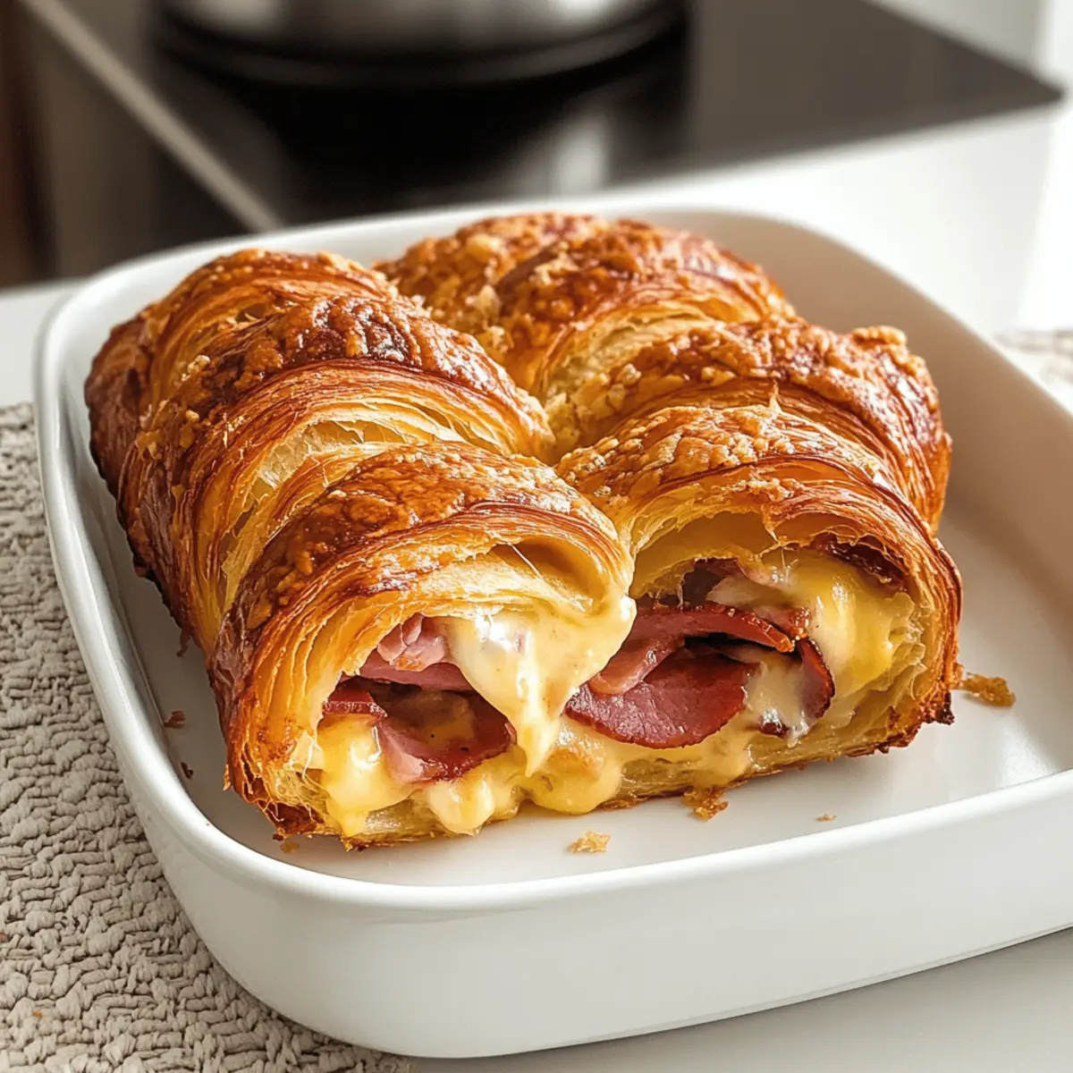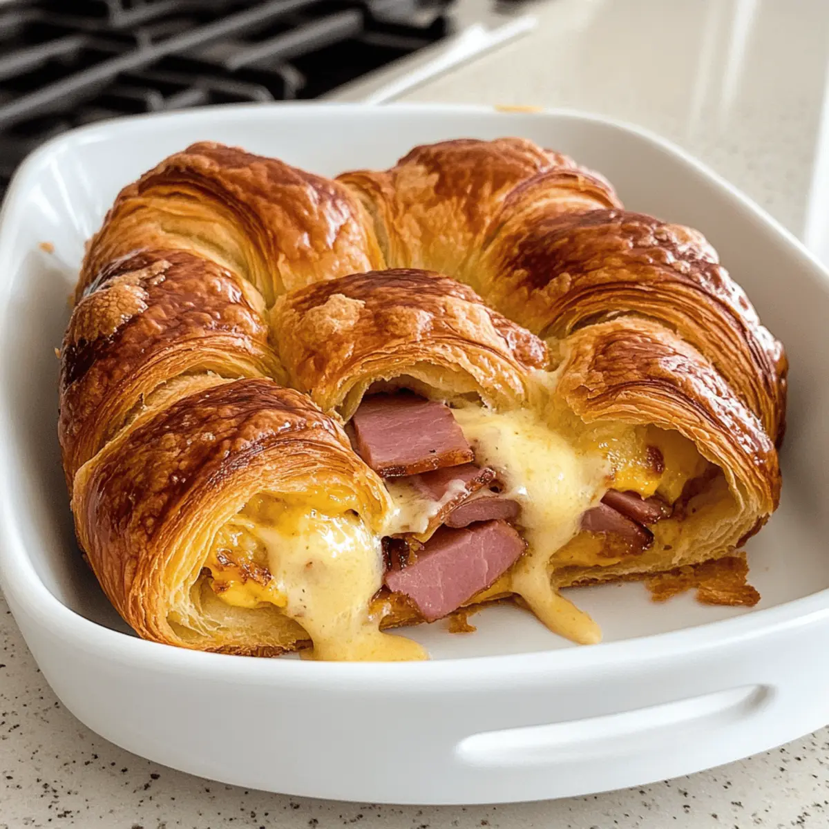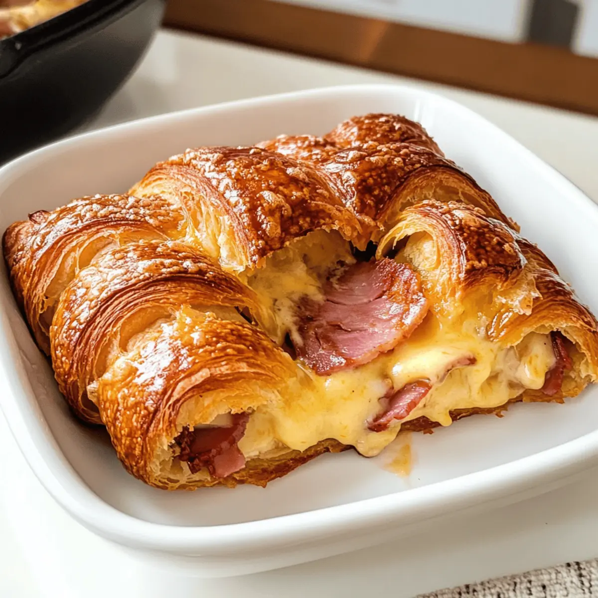 Während ich in der Küche stehe und den köstlichen Duft von frisch gebackenem Brot einatme, wird mir das Potenzial eines wirklich besonderen Gaumenschmauses klar: der Truthahn Schinken und Käse Croissant Eier Auflauf. Diese herzhafte Köstlichkeit kombiniert die buttrige Leichtigkeit von Croissants mit cremigem Eierpudding und dem herzhaften Geschmack von geschmolzenem Cheddar und geräuchertem Truthahn. Ideal für ein entspanntes Brunch oder eine gemütliche Morgenstunde, ist dieses Rezept nicht nur einfach zuzubereiten, sondern auch ein echter Publikumsmagnet. Ob Sie Ihre Familie überraschen oder Gäste beeindrucken möchten, dieser Auflauf erfüllt alle Erwartungen. Neugierig, wie Sie ihn ganz leicht nach Ihrem Geschmack anpassen können? Lassen Sie uns direkt in die Details eintauchen! Warum sollten Sie diesen Auflauf lieben? Einfachheit: Mit nur wenigen Zutaten ist der Truthahn Schinken und Käse Croissant Eier Auflauf schnell zubereitet und erfordert nur grundlegende Kochkenntnisse. Vielseitigkeit: Passen Sie ihn mit verschiedenen Käsesorten oder Fleischalternativen an, um Ihre persönliche Note zu verleihen. Herzhafter Geschmack: Die Kombination aus geschmolzenem Cheddar und rauchigem Truthahn sorgt für einen unvergesslichen Genuss. Perfekt für jeden Anlass: Ob zum Brunch oder beim gemütlichen Frühstück, dieser Auflauf wird garantiert zum Highlight. Ein großer Publikumsmagnet: Beeindrucken Sie Ihre Gäste mit einem Gericht, das sowohl elegant als auch tröstlich ist, ähnlich wie ein klassischer Spargelauflauf Kartoffeln Schinken oder ein Artischocken Huehnchen Auflauf. Truthahn Schinken und Käse Croissant Auflauf Zutaten • Bereiten Sie sich vor, den köstlichen Truthahn Schinken und Käse Croissant Eier Auflauf zuzubereiten! Für den Auflauf Croissants – Diese dienen als Basis und verleihen dem Gericht eine buttrige, flüchtige Textur. Truthahn Schinken – Eine proteinreiche Füllung; tauschen Sie ihn gegen Speck oder eine vegetarische Option aus, wenn gewünscht. Cheddar Käse – Für reichhaltigen Geschmack und Schmelz; probieren Sie Mozzarella oder Pepper Jack für eine würzige Note. Eier – Das Bindemittel für die cremige Eiermasse. Halbfettmilch – Für eine sahnige Konsistenz; kann durch Vollmilch ersetzt werden, um einen leichteren Auflauf zu erhalten. Senf – Verleiht eine würzige Note; entnehmen Sie ihn für einen milderen Geschmack. Salz und Pfeffer – Zum Würzen, je nach Geschmack anpassen. Butter – Zum Einfetten der Auflaufform und für eine knusprige Oberseite. Schritt-für-Schritt-Anleitung für Truthahn Schinken und Käse Croissant Auflauf Step 1: Backofen vorheizen Heizen Sie Ihren Backofen auf 175 °C (350 °F) vor. Dies ist ein wichtiger erster Schritt, um sicherzustellen, dass der Truthahn Schinken und Käse Croissant Eier Auflauf gleichmäßig durchgegart und goldbraun wird. Während der Ofen die richtige Temperatur erreicht, können Sie sich um die vorbereitenden Schritte kümmern. Step 2: Croissants vorbereiten Halbieren Sie die Croissants sorgfältig und füllen Sie jede Hälfte mit einer großzügigen Menge Truthahn Schinken und Cheddar Käse. Achten Sie darauf, dass die Füllung gut verteilt wird, um den vollmundigen Geschmack in jeder Portion zu gewährleisten. Schneiden Sie die gefüllten Croissant-Hälften anschließend in vier kleine Stücke, damit sie optimal im Eierpudding eingeweicht werden können. Step 3: Arrangement in der Auflaufform Legen Sie die geschnittenen Croissant-Stücke in eine leicht eingefettete Auflaufform. Variieren Sie die Anordnung der Stücke, um eine ansprechende Textur und Optik zu erzielen. Diese Methode ermöglicht es dem Auflauf, gleichmäßig zu backen und sorgt dafür, dass jedes Stück den cremigen Eierpudding aufnehmen kann. Step 4: Eiermasse zubereiten In einer großen Schüssel verquirlen Sie die Eier, Halbfettmilch, Senf, Salz und Pfeffer, bis die Mischung glatt und gut vermischt ist. Achten Sie darauf, alle Zutaten gründlich zu kombinieren, um eine gleichmäßige Konsistenz zu erreichen. Diese Eiermasse ist der Schlüssel zum köstlichen Truthahn Schinken und Käse Croissant Eier Auflauf, da sie für die cremige Textur sorgt. Step 5: Auflauf übergießen Gießen Sie die zubereitete Eiermasse gleichmäßig über die Croissant-Stücke, sodass sie vollständig eingeweicht werden. Stellen Sie sicher, dass jedes Stück gut mit der Mischung bedeckt ist, um ein gleichmäßiges Garergebnis zu erzielen. Lassen Sie den Auflauf für etwa 5 Minuten ruhen, damit die Croissants die Eiermasse gut aufnehmen können. Step 6: Auflauf backen Fügen Sie kleine Butterstücke auf der Oberseite des Auflaufs hinzu, um extra Knusprigkeit zu erreichen. Decken Sie die Auflaufform mit Aluminiumfolie ab und backen Sie das Ganze für 20-25 Minuten in Ihrem vorgeheizten Ofen. Der Auflauf sollte in dieser Zeit anfangen, fest zu werden und eine goldene Farbe anzunehmen. Step 7: Finale Backzeit Nehmen Sie die Folie vorsichtig ab und backen Sie den Auflauf für zusätzliche 10 Minuten, bis die Oberseite goldbraun und die Ränder leicht aufgeplustert sind. Zu diesem Zeitpunkt sollte der leckere Duft durch Ihre Küche ziehen und die Vorfreude auf das Essen steigern. Step 8: Kurz ruhen lassen Lassen Sie den Truthahn Schinken und Käse Croissant Eier Auflauf nach dem Backen einige Minuten ruhen, bevor Sie ihn servieren. Dies hilft, die Schichten zu setzen und es erleichtert das Schneiden in perfekte Portionen. Genießen Sie das köstliche Ergebnis dieser herzhaften Kreation! Meal Prep für den Truthahn Schinken und Käse Croissant Auflauf Der Truthahn Schinken und Käse Croissant Eier Auflauf ist perfekt für die Vorbereitung! Sie können die Croissants bis zu 24 Stunden im Voraus füllen und schneiden, um Zeit zu sparen, und sie dann in der eingefetteten Auflaufform anrichten. Die Eiermasse kann auch bereits am Vortag zubereitet und im Kühlschrank aufbewahrt werden, damit sie frisch und cremig bleibt. Beim Backen einfach di
