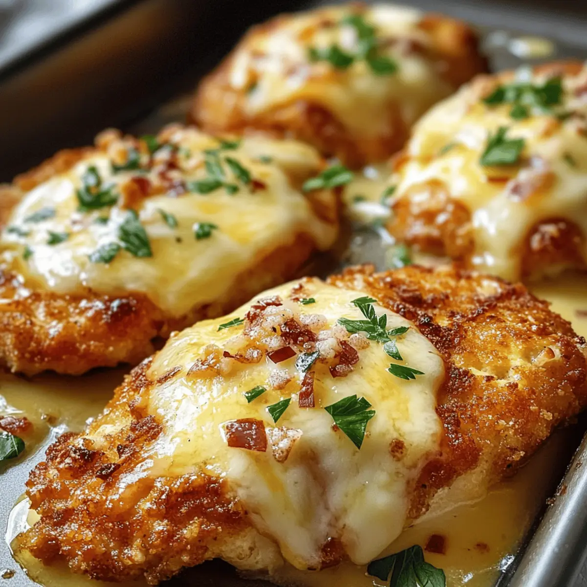 Wenn der Duft von frisch gebackenem Käse und knusprigen Schnitzeln durch die Küche zieht, fühlt man sich sofort wie zu Hause. Meine Überbackenen Partyschnitzel aus dem Ofen sind die perfekte Antwort auf die Frage, welches Gericht bei jeder Feier für strahlende Gesichter sorgt. Diese schnelle und einfache Rezeptur vereint zarte Schnitzel mit einer cremigen Käseschicht, die im Ofen so verführerisch goldbraun wird. Es ist nicht nur ein Publikumsfavorit, sondern auch ein absolutes Komfortessen, das sich leicht an verschiedene Fleischsorten oder sogar vegetarische Alternativen anpassen lässt. Ihr werdet sehen, wie schnell sich diese leckeren Schnitzel zum Star eurer nächsten Party entwickeln! Bereit, eure Gäste zu beeindrucken? Warum sind Überbackene Partyschnitzel so beliebt? Unvergleichlicher Geschmack: Die Kombination aus gekochtem Schnitzel und geschmolzenem Käse sorgt für ein Geschmackserlebnis, das deine Gäste immer wieder begeistert. Einfache Zubereitung: Mit nur wenigen Schritten und einfachen Zutaten bist du schnell startklar, ohne aufwendige Vorbereitungen. Vielseitige Optionen: Ob mit Hähnchen, Pute oder in einer vegetarischen Variante mit Zucchini, die Möglichkeiten sind endlos! Perfekte Portionsgröße: Praktisch für jede Feier, lassen sich die Schnitzel leicht teilen und servieren, sodass jeder ein Stück genießen kann. Zeitersparnis: Gut im Voraus zubereiten, sodass du mehr Zeit mit deinen Gästen verbringen kannst, anstatt in der Küche zu stehen. Entdecke auch, wie diese leicht zuzubereitenden Partyschnitzel zum Gesprächsthema deiner nächsten Zusammenkunft werden! Überbackene Partyschnitzel Zutaten • Diese köstlichen Überbackenen Partyschnitzel aus dem Ofen benötigen nur wenige, aber entscheidende Zutaten, um sie zum Hit eurer nächsten Feier zu machen! Für die Schnitzel Schnitzel – Hauptzutat, die die Basis des Gerichts bildet; kann durch Hähnchen, Pute oder Kalb ersetzt werden. Paniermehl – Verleiht die knusprige Textur; für extra Knusprigkeit Panko verwenden. Eier – Binden die Panade an die Schnitzel; gut verquirlen für eine gleichmäßige Beschichtung. Für die Käseschicht Käse (z.B. Gouda oder Cheddar) – Sorgt für Cremigkeit und Geschmack beim Schmelzen; fettarme Varianten sind gesünder. Sahne – Kreiert eine reichhaltige Käsesauce; pflanzliche Optionen für eine vegane Zubereitung sind ebenfalls möglich. Für die Würzung Gewürze (Salz, Pfeffer) – Verbessern den Geschmack; je nach Vorliebe anpassen. Bereitet euch darauf vor, wie diese Überbackenen Partyschnitzel aus dem Ofen die Herzen eurer Gäste im Sturm erobern werden! Schritt-für-Schritt-Anleitung für Überbackene Partyschnitzel aus dem Ofen Step 1: Ofen vorheizen Heize deinen Ofen auf 200°C vor. Dies sorgt dafür, dass die Überbackenen Partyschnitzel gleichmäßig und schnell garen. Während der Ofen aufheizt, kannst du bereits alle Zutaten für die Schnitzel und die Käseschicht bereitlegen, um den weiteren Prozess zu erleichtern. Step 2: Schnitzel vorbereiten Nehme die Schnitzel und klopfe sie mit einem Fleischklopfer auf eine gleichmäßige Dicke von etwa einem Zentimeter. Dadurch garen sie gleichmäßig und bleiben saftig. Lege die Schnitzel anschließend beiseite und bereite dich darauf vor, sie zu panieren. Step 3: Panierstation einrichten Bereite eine Panierstation vor: Schlage die Eier in einer Schüssel gut auf und stelle das Paniermehl in eine zweite Schüssel. Tauche die Schnitzel zuerst in die Eier, so dass sie gut bedeckt sind, und wende sie dann im Paniermehl, bis sie gleichmäßig vermengt sind. Dies sorgt für eine knusprige Textur bei den Überbackenen Partyschnitzeln. Step 4: Schnitzel anbraten Erhitze etwas Öl in einer tiefen Pfanne bei mittlerer Hitze. Sobald das Öl heiß ist, lege vorsichtig die panierten Schnitzel hinein und brate sie für etwa 3-4 Minuten pro Seite, bis sie goldbraun und knusprig sind. Achte darauf, die Schnitzel nicht zu überfüllen, damit sie gleichmäßig bräunen können. Step 5: Käseschicht zubereiten In einer separaten Schüssel vermenge den geriebenen Käse und die Sahne, bis eine cremige Mischung entsteht. Diese Käseschicht wird auf die gerade gebratenen Schnitzel gegeben. Du kannst auch ein wenig nach Geschmack mit Gewürzen variieren, um die Aromen noch zu intensivieren. Step 6: Schnitzel im Ofen backen Lege die angebratenen Schnitzel auf ein mit Backpapier belegtes Blech. Verteile die Käseschicht gleichmäßig über jedes Schnitzel. Schiebe das Blech in den vorgeheizten Ofen und backe die Überbackenen Partyschnitzel für etwa 10-15 Minuten, bis der Käse goldbraun und blubbernd ist. Step 7: Garnieren und servieren Hole die Überbackenen Partyschnitzel aus dem Ofen und lasse sie kurz abkühlen. Garniere die Schnitzel nach Belieben mit frischen Kräutern wie Petersilie oder Schnittlauch. Dann ist es Zeit, sie zu servieren und die strahlenden Gesichter deiner Gäste zu genießen. Überbackene Partyschnitzel im Voraus zubereiten Die Überbackenen Partyschnitzel aus dem Ofen sind perfekt für jene, die Zeit sparen möchten! Du kannst die panierten Schnitzel bis zu 24 Stunden im Voraus vorbereiten und sie einfach im Kühlschrank aufbewahren. Wenn du bereit bist zu servieren, heize den Ofen wie gewohnt vor und backe die Schnitzel, um sicherzustellen, dass sie genau so köstlich und knusprig bleiben wie frisch zubereitet. Darüber hinaus kannst du die Käseschicht (Käse und Sahne gemischt) ebenfalls im Voraus zubereiten und im Kühlschrank aufbewahren, sodass du alles nur noch zusammenführen und backen musst. Achte darauf, die Schnitzel beim Braten nicht zu überfüllen, damit sie gleichmäßig bräunen. Mit dieser einfachen Vorbereitung bist du für stressfreie Dinnerabende bestens gerüstet! Lagerungstipps für Überbackene Partyschnitzel Raumtemperatur: Vor der Lagerung sollten die Schnitzel vollständig abgekühlt sein, um Kondensation zu vermeiden. Bei Raumtemperatur nicht länger als 2 Stunden aufbewahren