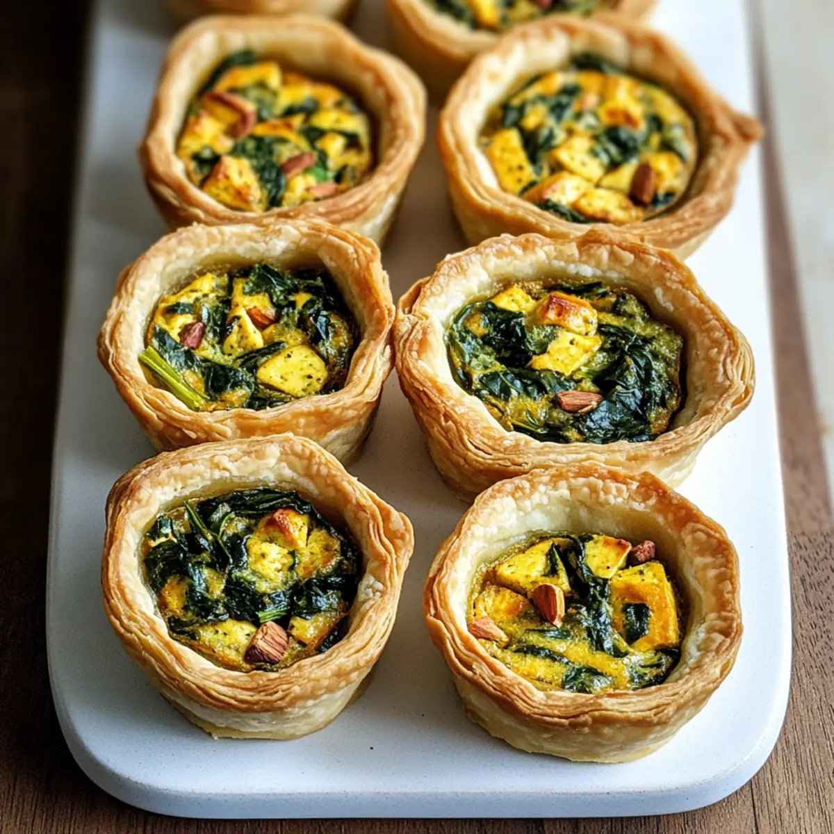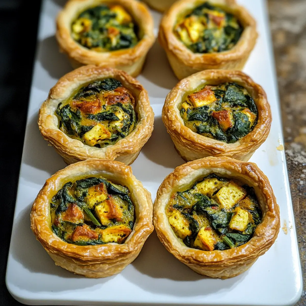 Entdecke die köstlichen veganen Mini-Quiches, gefüllt mit einer cremigen Tofu- und Spinatbasis. Ein schnell zubereitetes Rezept für jeden Anlass!