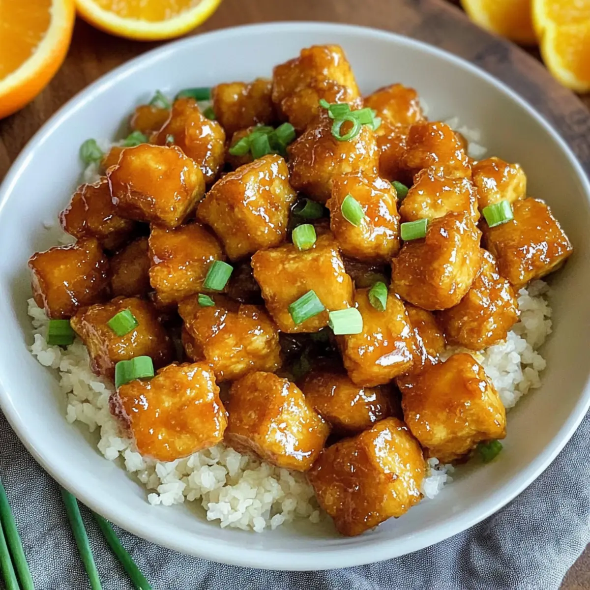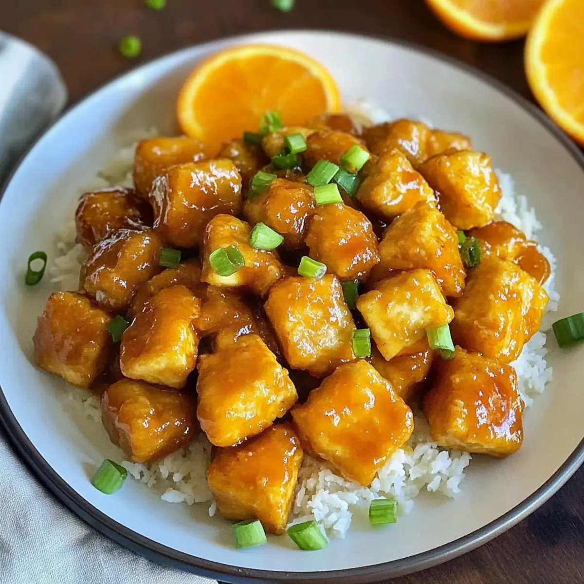 Es gibt nichts Besseres, als nach einem langen Tag nach Hause zu kommen und ein Gericht zu genießen, das sowohl tröstlich als auch gesund ist. Mein Rezept für veganes Orangenhühnchen (Tofu) bringt dir den unvergesslichen Geschmack der klassischen Variante direkt in deine Küche – ganz ohne Fleisch! In weniger als 30 Minuten zauberst du knusprigen Tofu, der in einer selbstgemachten süß-sauren Orangensauce schimmert. Dieses Gericht bietet nicht nur eine schnelle Zubereitung, sondern ist auch eine perfekte Option für alle, die sich eine zufriedenstellende, gesunde Mahlzeit wünschen. Bist du bereit, deine Geschmacksknospen auf eine fruchtige Reise zu schicken? Warum ist dieses Rezept unwiderstehlich? Einfachheit: Die Zubereitung ist unkompliziert und benötigt nur grundlegende Kochfähigkeiten. Schnell & unkompliziert: In weniger als 30 Minuten hast du ein köstliches Gericht, perfekt für stressige Abende. Gesunder Genuss: Mit frischen Zutaten und ohne Fleisch ist dieses vegane Orangenhühnchen eine gesunde Alternative. Vielfältig einsetzbar: Serviere es über Reis, Quinoa oder mit Gemüse – du hast die Wahl! Köstlicher Geschmack: Die Kombination aus knusprigem Tofu und süß-saurer Orangensauce wird selbst Skeptiker überzeugen und macht das Gericht zu einem echten Publikumsliebling. Entdecke auch unsere Tipps für die optimale Zubereitung oder die besten Beilagen für ein vollständiges Essen! Vegane Orangenhühnchen Zutaten Für den Tofu • Tofu – Hauptproteinquelle, die durch Einfrieren und Auftauen eine bessere, fleischähnliche Textur erhält. • Maisstärke – Sorgt für die Knusprigkeit des Tofus beim Frittieren oder Backen; das sollte nicht ausgelassen werden! Für die Sauce • Frische Orangen – Die Basis der Sauce, die natürliche Süße und Geschmack bietet; kann für eine dickere Sauce püriert werden. • Sojasauce/Tamari/Kokos-Aminos – Fügt Umami-Geschmack hinzu; wähle je nach diätetischen Einschränkungen (glutenfreie Optionen verfügbar). • Knoblauchpulver – Verstärkt die Geschmacksnuancen. • Zucker (oder Ahornsirup) – Setzt Süße hinzu, um die Säure der Orangen auszugleichen; nach Geschmack anpassen. Für die Zubereitung • Öl (optional) – Zum Frittieren; verwende Raps-, Pflanzen- oder Avocadoöl. Verzichte auf Olivenöl, da es einen niedrigen Rauchpunkt hat. Diese Zutaten für dein veganes Orangenhühnchen bringen dir die perfekte Kombination aus Geschmack und Gesundheit! Schritt-für-Schritt-Anleitung für Vegane Orangenhühnchen (Tofu) Step 1: Tofu vorbereiten Gefrier den Tofu über Nacht, um die Textur zu verbessern. Am nächsten Tag auftauen und überschüssige Feuchtigkeit mit einem Küchentuch herausdrücken. Schneide den Tofu in gleichmäßige, mundgerechte Stücke, damit sie gleichmäßig garen und perfekt umhüllt werden. Step 2: Tofu beschichten In einer Schüssel die Maisstärke zusammen mit dem Knoblauchpulver und einer Prise Salz vermengen. Die Tofustücke gleichmäßig mit dieser Mischung bestreichen, bis sie vollständig bedeckt sind. Diese Mischung sorgt dafür, dass der Tofu beim Frittieren oder Backen schön knusprig wird. Step 3: Tofu garen Wähle zwischen dem Frittieren oder Backen des Tofus. Wenn du frittieren möchtest, erhitze etwa 2-3 Esslöffel Öl in einer Pfanne bei mittlerer Hitze. Brate die Tofustücke für etwa 10-12 Minuten goldbraun und knusprig. Alternativ, lege die Tofustücke auf ein mit Backpapier ausgelegtes Blech und backe sie bei 200°C (400°F) für ca. 25 Minuten, dabei zur Hälfte wenden. Step 4: Sauce zubereiten In einem kleinen Topf den frisch gepressten Orangensaft, die Sojasauce und den Zucker oder Ahornsirup vermischen. Bei mittlerer Hitze erhitzen, bis die Mischung leicht eingedickt ist, etwa 5-7 Minuten. Achte darauf, ständig umzurühren, damit die Sauce nicht anbrennt und gleichmäßig köchelt. Step 5: Alles kombinieren Die knusprigen Tofustücke in die Orangensauce geben und gut vermengen, sodass sie gleichmäßig mit der süß-sauren Sauce bedeckt sind. Sofort servieren und genießen. Kombiniere das vegane Orangenhühnchen idealerweise mit Reis oder Gemüse für eine vollwertige Mahlzeit. Was passt zu Vegane Orangenhühnchen (Tofu)? Es gibt unzählige Möglichkeiten, das vegane Orangenhühnchen zu genießen – gemeinsam schaffen wir ein großartiges Menü! Jasminreis: Perfekt für die Absorption der süß-sauren Sauce und sorgt für ein harmonisches Geschmacksprofil. Quinoa: Eine proteinreiche Alternative, die dem Gericht einen nussigen Geschmack verleiht und gleichzeitig gesund bleibt. Gedämpftes Gemüse: Frisches, knackiges Gemüse wie Brokkoli oder Karotten bringt zusätzliche Farben und Vitamine auf den Teller. Sie bieten einen schönen Kontrast zur zarten Textur des Tofus. Frischer Gurkensalat: Kühlt die Speise ab und bringt eine knackige Frische dazu, die die Aromen gut ausgleicht. Mango-Salsa: Diese fruchtige Beilage fügt eine süße Note hinzu und sorgt für ein aufregendes Geschmackserlebnis. Kokosmilch-Curry: Eine würzige Variation, die einen cremigen und wärmenden Kontrast zur Orangensauce bietet. Grüner Tee: Dieser erfrischende Drink rundet das Gericht ab und sorgt für einen klaren Gaumen nach jedem Bissen. Dunkle Schokolade: Ein kleines, köstliches Dessert um den Abend mit einem Hauch von Süße abzurunden. Expertentipps für veganes Orangenhühnchen Crispy Tofu: Stelle sicher, dass der Tofu gut gepresst wird, um überschüssige Feuchtigkeit zu entfernen. Das Resultat ist eine knusprige Textur, die das vegane Orangenhühnchen perfekt ergänzt. Sauce richtig zubereiten: Lasse die Sauce nur leicht eindicken, um die richtige Konsistenz zu erreichen. Sie sollte den Tofu gut umhüllen, ohne zu dick oder sirupartig zu werden. Optimale Garzeit: Achte darauf, den Tofu nicht zu lange zu garen; die goldbraune Farbe ist wichtig für den Geschmack. Ob du frittierst oder backst, kontrolliere regelmäßig, um die perfekte Knusprigkeit zu erzielen. Variationen genießen: 