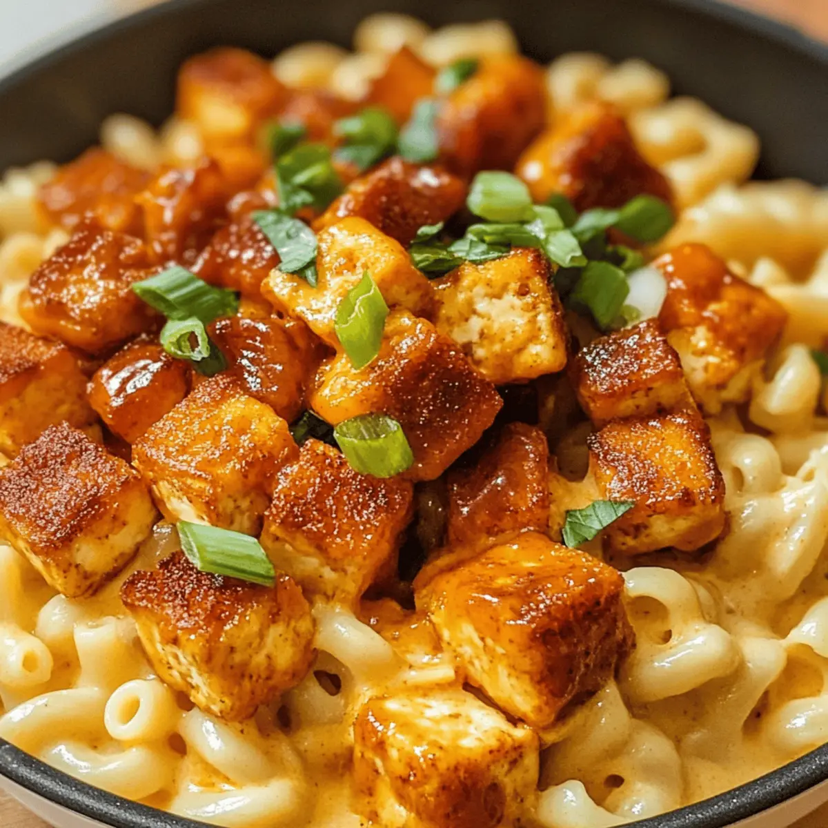 Wie oft träumt man von einer warmen, tröstlichen Schüssel Makkaroni und Käse, die das Herz erwärmt und die Seele nährt? Heute verwandle ich diesen Traum in Realität mit meinem Rezept für vegane, hochproteinhaltige Buffalo-Tofu-Makkaroni und Käse. Diese kreative Neuinterpretation des klassischen Gerichts bietet nicht nur eine würzige Geschmacksexplosion durch die feurige Buffalo-Sauce, sondern ist auch vollgepackt mit pflanzlichem Protein aus nährstoffreichen Zutaten wie Cashews und Blumenkohl. Das Beste daran? Es lässt sich schnell zubereiten und ist so reichhaltig und befriedigend, dass selbst die größten Kritiker des veganen Essens begeistert sein werden! Wer kann bei dieser Kombination von Cremigkeit und einem knusprigen Tofu-Belag schon widerstehen? Lass uns gemeinsam in diese köstliche Welt eintauchen! Warum ist dieses Rezept so besonders? Simplicity: Die Zubereitung ist unkompliziert und benötigt nur wenige Schritte, ideal für jeden Koch. Reichhaltiger Geschmack: Die Kombination aus cremigem Cashew-Blumenkohl-Soße und würziger Buffalo-Sauce begeistert jeden Gaumen. Vielseitigkeit: Perfekt für jede Gelegenheit – ob als herzhaftes Abendessen oder als beeindruckender Brunch-Hit. Probiere auch unser Mediterraner Orzo Gesund für eine Abwechslung! Gesundheitliche Vorteile: Hoch an pflanzlichem Protein und Ballaststoffen, bietet dieses Gericht eine gesunde Wahl, die sättigt. Crowd-Pleaser: Diese veganen Makkaroni versammeln Freunde und Familie um den Tisch, egal welche Ernährungsgewohnheiten sie haben! Schnell und einfach: Mit wenig Vorbereitungszeit kannst du im Nu ein köstliches Abendessen zaubern. Zutaten für Veganer hochproteinhaltiger Buffalo-Tofu-Makkaroni Für den Tofu • Tofu – sorgt für eine fleischige Textur und liefert wertvolles Protein. Verwende festen oder extrafesten Tofu für das beste Ergebnis. • Buffalo-Sauce – bringt Würze und Geschmack ins Spiel; bei weniger Schärfe kannst du eine milde Sauce verwenden oder sie ganz weglassen. Für die Käse-Soße • Cashews – bilden die cremige Basis der Käsesoße; einweichen verbessert die Mischung; ersetze sie durch eingeweichte Sonnenblumenkerne für eine nussfreie Option. • Blumenkohl – sorgt für zusätzliche Cremigkeit; frisch oder gefroren kann beides gut verarbeitet werden; pürieren bis zur Glätte. • Karotten – bringen Süße und Farbe in die Soße; verwende gekochte Karotten für ein besseres Pürierergebnis. • Cannellini-Bohnen – fügen Protein und Cremigkeit hinzu; du kannst sie durch jede andere weiße Bohne ersetzen. Für die Pasta • Banza-Pasta (Kichererbsen-basiert) – ist proteinreich und glutenfrei; kannst sie durch herkömmliche Pasta ersetzen, wenn Gluten kein Problem darstellt. Garnierung • Frühlingszwiebeln – sorgen für Frische und Farbe; verwende Schnittlauch als milde Alternative. Mit diesen sorgfältig ausgewählten Zutaten bist du auf dem besten Weg, eine köstliche Portion veganer hochproteinhaltiger Buffalo-Tofu-Makkaroni zuzubereiten! Schritt-für-Schritt-Anleitung für Veganer hochproteinhaltiger Buffalo-Tofu-Makkaroni und Käse Step 1: Tofu vorbereiten Den Tofu in gleichmäßige Würfel schneiden und in einer Schüssel marinieren. Den Ofen auf 200 Grad Celsius vorheizen und ein Backblech mit Backpapier auslegen. Die Tofu-Würfel gleichmäßig darauf verteilen und für 25–30 Minuten backen, bis sie goldbraun und knusprig sind. Dies sorgt für die perfekte Textur, die den veganen hochproteinhaltigen Buffalo-Tofu-Makkaroni ein herzhaftes Element verleiht. Step 2: Käse-Sauce zubereiten In der Zwischenzeit die eingeweichten Cashews abtropfen lassen und zusammen mit dem gedämpften Blumenkohl, den gekochten Karotten und den Cannellini-Bohnen in einen Hochleistungsmixer geben. Alles gut pürieren, bis die Mischung ganz glatt ist, und nach Bedarf ein wenig Wasser hinzufügen, um die gewünschte Cremigkeit zu erreichen. Damit erhältst du eine köstliche und nährstoffreiche Basis für die Makkaroni. Step 3: Pasta kochen Einen großen Topf mit Salzwasser zum Kochen bringen und die Banza-Pasta hinzufügen. Diese nach Packungsanweisung für etwa 7–9 Minuten al dente kochen, gelegentlich umrühren, damit sie nicht zusammenkleben. Sobald die Pasta fertig ist, abgießen und kurz abkühlen lassen, damit sie den nächsten Schritten gut standhält und nicht matschig wird. Step 4: Alles kombinieren Die gekochte Banza-Pasta in eine große Schüssel geben und die cremige Käse-Sauce darüber gießen, gefolgt von den knusprigen Tofu-Würfeln. Mit einem großen Löffel vorsichtig vermengen, bis alles gut miteinander vermischt ist und die Pasta gleichmäßig mit der Sauce überzogen ist. Dies macht die veganen hochproteinhaltigen Buffalo-Tofu-Makkaroni unwiderstehlich lecker. Step 5: Fertigstellen Die fertige Mischung auf Teller verteilen und großzügig mit Buffalo-Sauce beträufeln. Vor dem Servieren gut umrühren, damit jeder Bissen einen würzigen Kick hat. Mit frisch gehackten Frühlingszwiebeln garnieren, die dem Gericht eine zusätzliche Frische verleihen und es optisch ansprechend machen. Jetzt sind die veganen hochproteinhaltigen Buffalo-Tofu-Makkaroni bereit zum Genießen! Vorbereitung für Veganer hochproteinhaltiger Buffalo-Tofu-Makkaroni Diese veganen hochproteinhaltigen Buffalo-Tofu-Makkaroni sind perfekt für die Vorbereitung im Voraus! Du kannst den Tofu bis zu 24 Stunden vorher marinieren und backen, um die knusprige Textur zu erhalten. Zusätzlich kannst du die Käse-Sauce zubereiten und in einem luftdichten Behälter bis zu 3 Tage im Kühlschrank aufbewahren. Achte darauf, die Pasta erst kurz vor dem Servieren zu kochen, um die beste Konsistenz zu gewährleisten. Zum Fertigstellen vermenge einfach die vorgekochte Pasta mit der Käse-Sauce und den Tofu-Würfeln und beträufle sie vor dem Servieren mit Buffalo-Sauce. So genießt du eine köstliche Mahlzeit mit minimalem Aufwand an einem stressigen Wochentag! Expertentipps für vegane hochprote