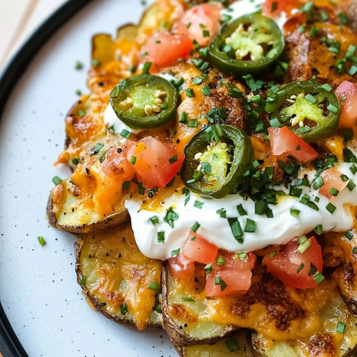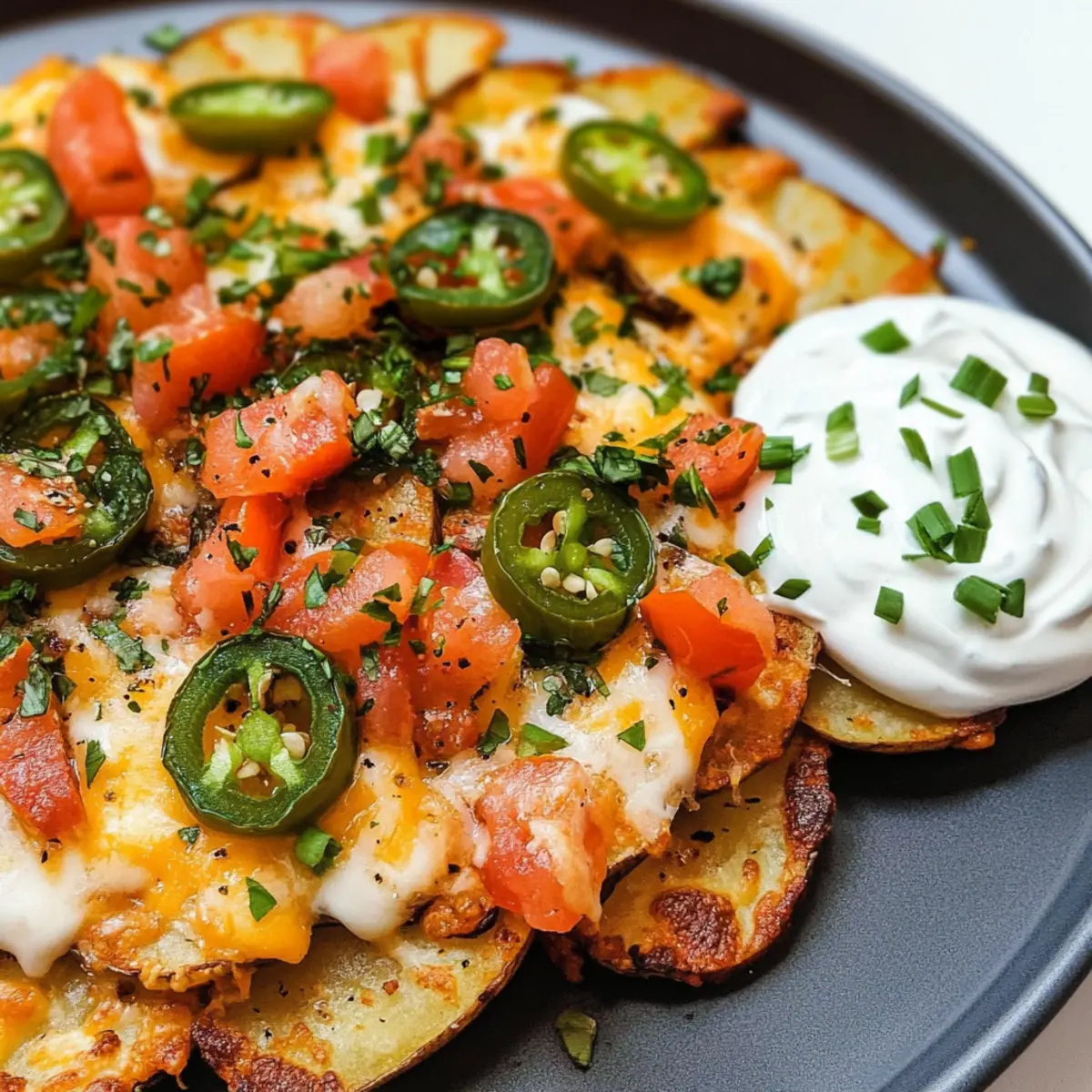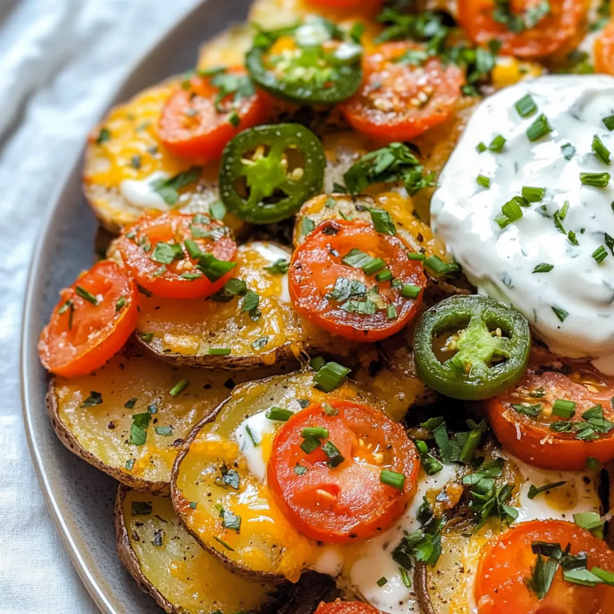 Wenn die Tage kürzer werden und die gemütlichen Abende anstehen, ist es Zeit für einen köstlichen Snack. Ich präsentiere euch heute meine vegetarischen irischen Nachos, die ganz ohne traditionelle Tortilla-Chips auskommen. Stattdessen verwenden wir knusprig gebackene, dünn geschnittene Kartoffeln als Basis – eine gesunde und sättigende Variante, die sowohl Freunde als auch Familie begeistern wird. Diese Nachos sind nicht nur schnell zubereitet, sondern auch eine wahre Freude für alle, die nach einer köstlichen und nahrhaften Appetithäppchen suchen. Mit geschmolzenem Cheddar, frisch gewürfeltem Gemüse und einer Portion proteinreicher griechischer Joghurt-Dip sind sie die perfekte Lösung für den kleinen Hunger zwischendurch. Habt ihr schon einmal überlegt, wie gut Kartoffeln in der traditionellen Nachos-Welt ankommen können? Lasst uns gemeinsam herausfinden, wie einfach und lecker diese Kombination sein kann! Warum sind diese Nachos so besonders? Gesunde Snack-Alternative: Diese vegetarischen irischen Nachos sind eine perfekte Wahl für alle, die auf gesunde Ernährung achten, ohne auf Geschmack zu verzichten. Überraschende Basis: Anstelle von Tortilla-Chips verwenden wir knusprig gebackene Kartoffeln, die für ein spektakuläres Geschmackserlebnis sorgen. Einfache Zubereitung: Mit wenigen Zutaten und leicht verständlichen Schritten sind sie schnell gemacht und eignen sich hervorragend für spontane Zusammenkünfte. Vielseitige Toppings: Egal ob mit frischem Gemüse oder schmelzendem Käse – die Variationen sind endlos und passen zu jedem Gaumen. Proteinreicher Genuss: Mit griechischem Joghurt als Dip erhält jeder Bissen einen zusätzlichen Proteinboost, ideal für gesundheitsbewusste Naschkatzen. Probiert auch meine anderen Rezepte wie Karamellisierte Soja Haehnchen oder Haehnchensalat Rezept Genuss, um euren Snack-Tisch zu bereichern! Vegetarische Irische Nachos Zutaten Hinweis: Hier sind die Zutaten für die köstlichen vegetarischen irischen Nachos, die sowohl gesund als auch einfach zuzubereiten sind! Für die Kartoffeln • Russet Kartoffeln – Sie bilden die knusprige Grundlage der Nachos; Alternative: Yukon Gold oder Süßkartoffeln für einen anderen Geschmack. • Öl (Avocado, Oliven- oder Rapsöl) – Zum Wenden der Kartoffelscheiben; wähle Öle mit höherem Rauchpunkt für besseres Backen. • Knoblauchpulver – Verleiht den Kartoffeln einen tiefen Geschmack; frischer, gehackter Knoblauch kann ebenfalls verwendet werden. • Paprika – Sorgt für eine subtile Rauchigkeit und verbessert die Farbe; geräucherte Paprika für intensiveren Geschmack. • Salz und Pfeffer – Essentielle Gewürze zur Geschmacksanpassung, die anderen Zutaten hervorheben. Für die Beläge • Geriebener Cheddar Käse – Schmilzt wunderbar und bietet einen reichen, cremigen Geschmack; vegane Käsealternative für diejenigen, die eine pflanzliche Option suchen. • Gewürfelte Roma-Tomaten – Frische und Saftigkeit, die einen schönen Kontrast zu den knusprigen Kartoffeln bietet; jede Tomatensorte ist möglich, aber Roma bietet den besten Geschmack. • Schnittlauch oder Frühlingszwiebel – Bringt Helligkeit und einen milden Zwiebelgeschmack; frischer Schnittlauch oder Petersilie sind ebenfalls gute Alternativen. • Gewürfelte Jalapeño-Paprika – Fügt Hitze und Geschmack hinzu; die Menge kann nach persönlichem Geschmack angepasst werden. • Sauerrahm/Griechischer Joghurt – Ideal als Dip, um die Aromen der Nachos auszubalancieren; griechischer Joghurt gibt dem Ganzen einen zusätzlichen Protein-Kick. Genießt diese köstlichen vegetarischen irischen Nachos als perfektes Snack-Erlebnis! Sie sind nicht nur schmackhaft, sondern auch eine gesunde Option für alle, die das Fast-Food-Repertoire erweitern möchten. Schritt-für-Schritt-Anleitung für Vegetarische Irische Nachos Step 1: Ofen vorheizen Heize deinen Ofen auf 200 °C vor, damit er die perfekte Temperatur erreicht, wenn die Kartoffeln vorbereitet sind. Ein gut vorgeheizter Ofen sorgt dafür, dass die Kartoffeln gleichmäßig knusprig gebacken werden. Step 2: Kartoffeln vorbereiten Wasche die Russet Kartoffeln gründlich und schneide sie in dünne Scheiben. Dies ist wichtig, damit sie beim Backen schön knusprig werden. Je dünner die Scheiben, desto besser das Ergebnis. Step 3: Kartoffeln würzen Gib die Kartoffelscheiben in eine große Schüssel und füge das Öl, Knoblauchpulver, Paprika, Salz und Pfeffer hinzu. Mische alles gut durch, sodass jede Scheibe gleichmäßig mit den Gewürzen bedeckt ist. Dies verleiht deinen vegetarischen irischen Nachos viel Geschmack. Step 4: Kartoffeln backen Fette ein Backblech mit etwas Antihaftspray ein und lege die Kartoffelscheiben in einer einzigen Lage darauf. Achte darauf, dass die Scheiben sich nicht überlappen. Backe die Kartoffeln für 35 Minuten, wende sie nach der Hälfte der Zeit, bis sie goldbraun und knusprig sind. Step 5: Toppings vorbereiten Während die Kartoffeln im Ofen sind, bereite die Toppings vor. Reibe den Cheddar-Käse, würfle die Roma-Tomaten und die Jalapeños, und hacke den Schnittlauch fein. Vermische die Hälfte des Schnittlauchs mit dem geriebenen Käse, um einen schmackhaften Belag zu erhalten. Step 6: Nachos schichten Nehme das Backblech mit den Kartoffeln aus dem Ofen und schichte die Käse-Schnittlauch-Mischung gleichmäßig über die heißen Kartoffeln. Füge dann die gewürfelten Tomaten und Jalapeños hinzu, um deine vegetarischen irischen Nachos reichhaltig zu garnieren. Step 7: Nachos finalisieren Schiebe das Backblech für weitere 5-6 Minuten in den Ofen, bis der Käse geschmolzen und schön blubbernd ist. Achte darauf, dass der Käse nicht zu lange backt, damit er nicht verbrennt. Step 8: Servieren Nimm die Nachos aus dem Ofen und lasse sie kurz abkühlen. Fertige sie mit einer großzügigen Portion Sauerrahm oder griechischem Joghurt an und streue den restlichen Schnittlauch darüber. Diese vegetarischen irischen Nachos sind nun b
