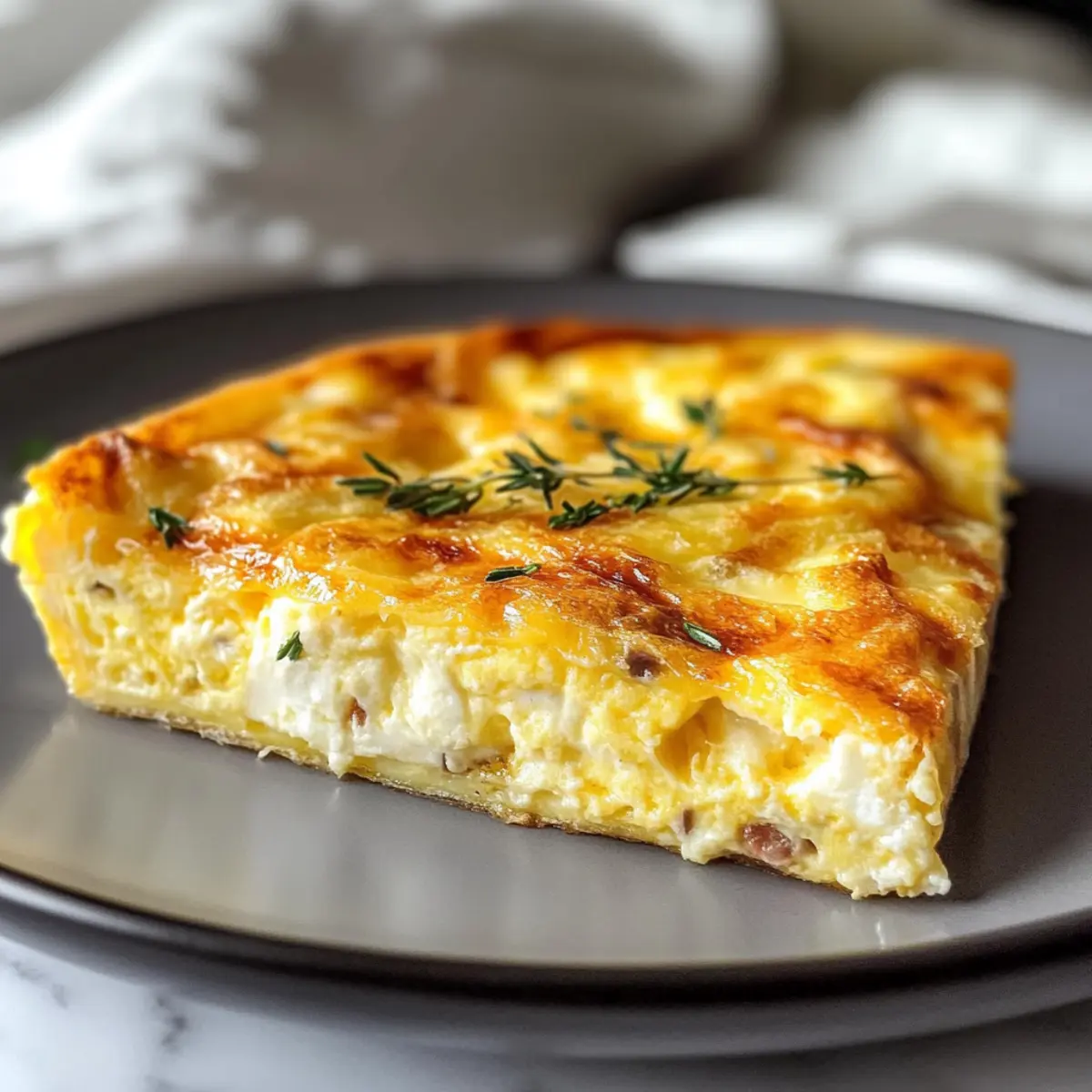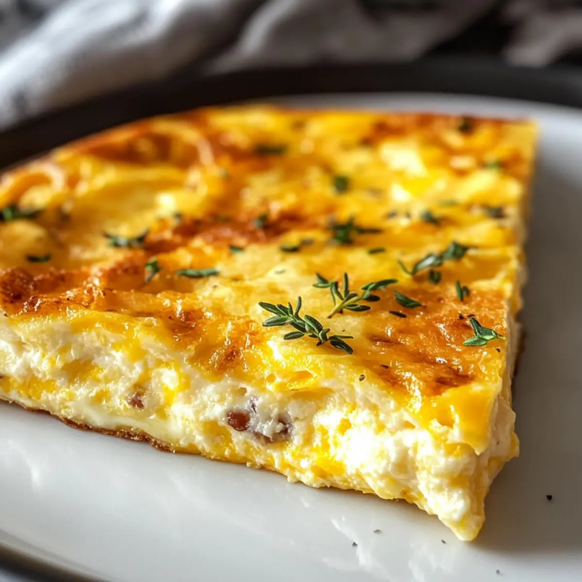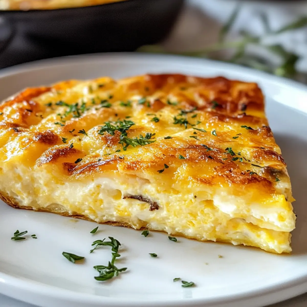 Als ich in meinem Lieblingscafé saß und die verführerische Duftnote von frisch gebackenem Brot und Eierspeisen wahrnahm, kam mir die Idee für die perfekte Frühstücksüberraschung: eine Vierkäse-Frittata! Diese goldene, fluffige Kreation kombiniert die besten Käsesorten wie Cheddar, Mozzarella, Parmesan und Frischkäse zu einem wahren Gaumenschmaus. In weniger als 30 Minuten zubereitet, ist dieses Rezept ideal für schnelle Frühstücke oder ungezwungene Brunch-Entspannungen mit Freunden. Da die Frittata nicht nur köstlich, sondern auch flexibel ist, kannst du die Käsesorten nach deinem Geschmack anpassen – vielleicht ein paar würzige Gruyère-Stückchen für eine besondere Note? Der beste Teil? Die Kombination aus Komfort und Eleganz macht jeden Bissen zu einem Erlebnis. Bist du bereit, deine Liebsten mit dieser köstlichen Spezialität zu überraschen? Warum wirst du diese Frittata lieben? Geschmacksexplosion: Die Kombination aus Cheddar, Mozzarella, Parmesan und Frischkäse sorgt für einen unvergleichlichen Geschmack, der einfach begeistert. Einfachheit pur: Mit nur wenigen Zutaten und einer unkomplizierten Zubereitung bringst du in unter 30 Minuten ein leckeres Gericht auf den Tisch. Vielseitigkeit: Du kannst die Füllung nach Lust und Laune variieren – z.B. mit Gruyère oder zusätzlichen Zutaten wie Sonnengetrockneten Tomaten, um neue Geschmäcker zu entdecken! Perfekte Textur: Das goldene Äußere und die cremige Mitte der Frittata bieten ein wunderbares Geschmackserlebnis, das sowohl warm als auch kalt schmeckt. Kochfreude: Diese Frittata ist nicht nur ideal für Frühstück oder Brunch, sondern auch ein Hit bei Dinnerpartys! Bereite sie vor und genieße die Komplimente deiner Gäste. Vierkäse-Frittata Zutaten • Diese cremige Frittata wird deine Frühstücksbeschreibungen verändern! Für die Frittata Eier – die Hauptzutat, die der Frittata Struktur und einen reichen Geschmack verleiht. Schlagsahne – sorgt für eine seidige Textur. Du kannst Milch für eine leichtere Version verwenden. Geriebener Cheddar – bietet einen scharfen, herzhaften Geschmack. Für einen nussigeren Geschmack ersetze ihn durch Gruyère. Geriebener Mozzarella – sorgt für eine cremige, dehnbare Konsistenz. Fontina ist eine wunderbare Alternative, die zusätzlichen Geschmack bringt. Geriebener Parmesan – fügt salzige Umami-Noten hinzu, die das Gesamtprofil der Frittata perfekt abrunden. Frischkäse – schafft pockets von cremiger Textur in der Frittata; schneide ihn in kleine Stücke für eine gleichmäßige Verteilung. Salz & schwarzer Pfeffer – essentielle Gewürze, um die Aromen zu unterstreichen; passe die Menge deinem persönlichen Geschmack an. Frische Kräuter (optional) – bringen Farbe und Frische; Chives oder Basilikum sind köstliche Ergänzungen. Schritt-für-Schritt-Anleitung zur Vierkäse-Frittata Step 1: Ofen vorheizen und Pfanne vorbereiten Heize den Ofen auf 190 °C vor und fette eine gusseiserne Pfanne oder eine ofenfeste Pfanne mit etwas Öl oder Butter ein. Diese Schritte sind wesentlich, um ein gleichmäßiges Garen der Vierkäse-Frittata zu gewährleisten und ein Ankleben am Boden zu verhindern. Step 2: Eier und Sahne verquirlen Schlage in einer großen Schüssel die Eier zusammen mit der Schlagsahne, Salz und Pfeffer sorgfältig auf, bis die Mischung glatt und leicht schaumig ist. Diese Grundlage ist entscheidend für die fluffige Textur der Frittata, also nimm dir Zeit, um gut zu vermischen. Step 3: Käsesorten hinzufügen Füge die geriebenen Käsesorten Cheddar, Mozzarella und Parmesan sowie die klein geschnittenen Frischkäse-Würfel in die Eimischung hinzu. Rühre alles vorsichtig um, bis die Käsestücke gleichmäßig verteilt sind. Dieser Schritt sorgt dafür, dass sich die verschiedenen Käse-Aromen in der Vierkäse-Frittata perfekt entfalten können. Step 4: Mischung in die Pfanne gießen Gieße die Eier-Käse-Mischung in die vorbereitete Pfanne und lasse sie bei mittlerer Hitze für etwa 4 bis 5 Minuten leicht anbraten. Achte darauf, dass die Ränder anfangen zu setzen, während die Mitte noch leicht flüssig ist, was das perfekte Ausgangsprodukt für das Backen im Ofen schafft. Step 5: Frittata backen Überführe die Pfanne vorsichtig in den vorgeheizten Ofen und backe die Vierkäse-Frittata für 12 bis 15 Minuten, bis die Mitte fest ist und die Oberseite goldbraun aussieht. Halte nach dem perfekten goldenen Farbton Ausschau, um sicherzustellen, dass sie vollständig durchgebacken ist. Step 6: Frittata ruhen lassen und servieren Nehme die Pfanne aus dem Ofen und lasse die Frittata für 5 bis 10 Minuten ruhen, damit sie sich setzen kann. Garniere sie nach Belieben mit frischen Kräutern, schneide sie in Stücke und serviere sie warm oder bei Zimmertemperatur. Diese Vierkäse-Frittata wird sicherlich alle Käseliebhaber begeistern! Variationen & Alternativen zur Vierkäse-Frittata Hier sind einige köstliche Möglichkeiten, wie du deine Frittata ganz nach deinem Geschmack anpassen kannst! Vegetarisch: Füge frisches Gemüse wie Spinat, Paprika oder Zucchini hinzu, um zusätzliche Nährstoffe und Texturen einzubringen. Das bringt nicht nur Farbe, sondern auch eine wunderbare Frische. Würzige Note: Ergänze die Frittata mit einer Prise Cayennepfeffer oder scharfen Paprikapulver für einen angenehmen Kick. Die Gewürze entfalten ein einzigartiges Geschmacksprofil, das jeden Bissen aufregender macht. Dairy-Free: Nutze pflanzliche Alternativen wie Mandelmilch und veganen Käse. Auf diese Weise können auch Käseliebhaber mit Laktoseintoleranz in den Genuss dieser Frittata kommen. Der Geschmack ist trotzdem herzhaft und ansprechend. Boots the Flavor: Experimentiere mit frischen Kräutern wie Oregano, Thymian oder Rosmarin für zusätzliche Geschmacksnuancen. Diese Kräuter verleihen der Frittata eine aromatische Tiefe und fördern ein mediterranes Flair. Käsewechsel: Probiere andere Käsesorten wie Gorgonzola oder feta, um neue Geschmacksrichtungen 
