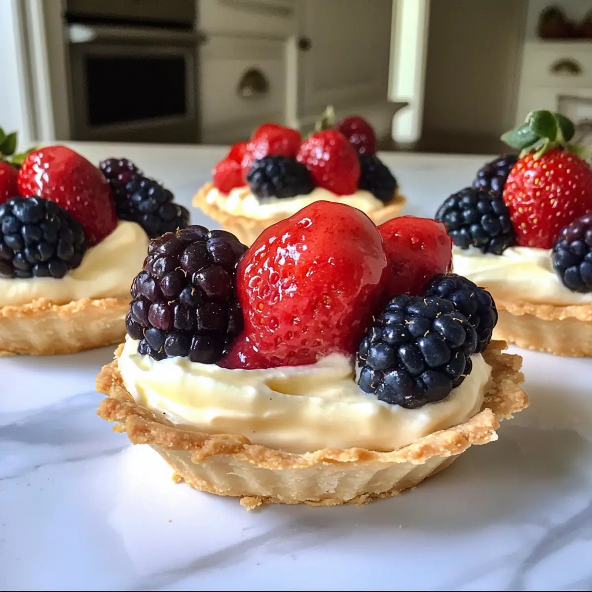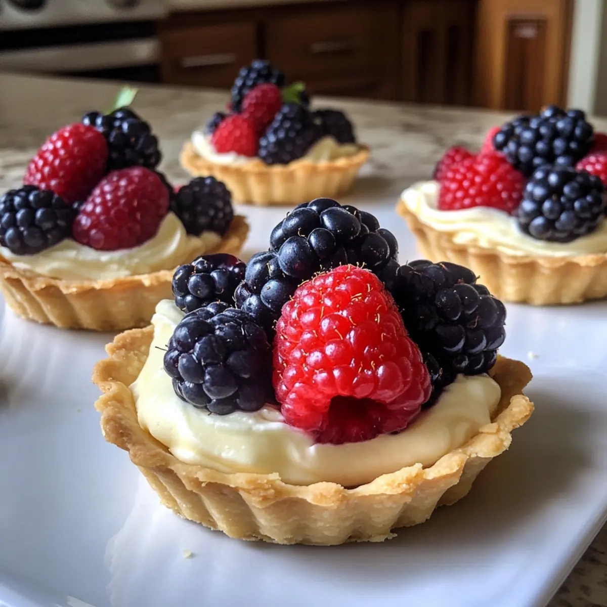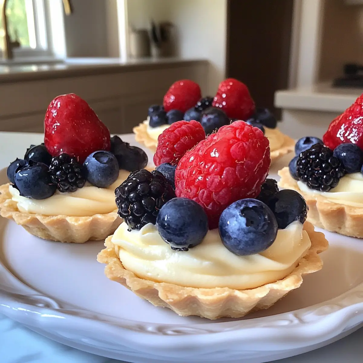 Als ich das erste Mal diese Weiße Schokoladenmousse-Tarteletts zubereitet habe, war ich sofort begeistert von ihrer Eleganz und dem einfachen Rezept. Mit einer knusprigen Basis und der cremigen Textur der Mousse sind sie nicht nur ein Augenschmaus, sondern auch ein himmlischer Genuss. Besonders in den warmen Monaten sind sie die ideale Wahl für Einladungen oder ein entspanntes Abendessen im Freien. Das Beste daran? Diese köstlichen Tarteletts sind ein No-Bake-Dessert, das schnell zubereitet ist – ideal für alle, die sich nicht lange in der Küche aufhalten wollen. Meine Lieblingsvariante ist, sie mit frischen Beeren zu garnieren, um jedem Bissen einen lebhaften Frischekick zu verleihen. Bist du bereit, den süßen Alltag mit diesen zauberhaften Tarteletts zu verzaubern? Warum wirst du diese Tarteletts lieben? Einfachheit trifft Eleganz: Diese Weiße Schokoladenmousse-Tarteletts sind schnell und unkompliziert zuzubereiten, perfekt für jede Gelegenheit. Frische Farben: Der lebendige Kontrast von frischen Beeren verleiht den Tarteletts nicht nur einen fruchtigen Geschmack, sondern sieht auch fantastisch aus. Keine Backzeit: Als No-Bake-Dessert sparst du wertvolle Zeit, während du dennoch einen beeindruckenden Nachttisch servierst. Vielseitige Variationen: Du kannst die Toppings je nach Saison anpassen und mit verschiedenen Früchten experimentieren – von Mango bis Granatapfel. Perfekte Präsentation: Diese kleinen Kunstwerke sehen auf jedem Tisch wunderbar aus, ideal für besondere Anlässe oder als süßer Abschluss eines leckeren Abendessens. Weiße Schokoladenmousse-Tarteletts Zutaten Hier sind die notwendigen Zutaten für deine köstlichen Weiße Schokoladenmousse-Tarteletts: Für den Boden • Fertiger Tortenboden – Sorgt für die perfekte Basis; du kannst auch einen selbstgemachten Boden für eine persönliche Note verwenden. Für die Mousse • Weiße Schokolade (3,5 oz) – Verleiht der Mousse Cremigkeit und Süße; achte auf hochwertige Schokolade für den besten Geschmack. • Halbfett-Milch (1,25 Tassen) – Sorgt für eine glatte Textur; du kannst auch Vollmilch verwenden, wenn du es leichter magst. • Schlagsahne (1 Tasse) – Gibt der Mousse Reichhaltigkeit und Volumen; für eine milchfreie Option kannst du geschlagene Kokosnusscreme nehmen. • Vanilleextrakt (1 TL) – Hebt das Gesamtaroma hervor; verwende reinen Extrakt für ein besseres Geschmackserlebnis. • Schnelle Vanille-Pudding-Mischung (3,4 oz Paket) – Verdickt die Mousse schnell ohne Kochen; achte darauf, dass es die Instant-Mischung ist. Für die Garnitur • Frische Beeren – Bieten eine erfrischende Ergänzung und eine schöne Farbvielfalt; verwende saisonale Früchte für maximalen Genuss. Schritt-für-Schritt-Anleitung für Weiße Schokoladenmousse-Tarteletts Step 1: Tortenboden vorbereiten Bereite den fertigen Tortenboden nach den Anweisungen auf der Verpackung vor, bis er goldbraun ist. Lasse ihn anschließend vollständig auskühlen, damit er die cremige Füllung aufnehmen kann, ohne durchweicht zu werden. Dies dauert in der Regel 10-15 Minuten, abhängig von der Art des Bodens. Step 2: Weiße Schokolade schmelzen Schmelze die weiße Schokolade in einer hitzebeständigen Schüssel über einem Topf mit simmerndem Wasser oder in der Mikrowelle in 20-Sekunden-Intervallen. Rühre die Schokolade regelmäßig um, bis sie komplett geschmolzen und glatt ist. Die Temperatur sollte etwa 50-60 °C sein, um die Schokolade nicht zu verbrennen. Step 3: Pudding-Mischung anrühren In einer großen Rührschüssel die Halbfett-Milch und die schnelle Vanille-Pudding-Mischung gründlich vermengen. Mit einem Schneebesen mixen, bis die Mischung dick wird; dies sollte etwa 2-3 Minuten dauern. Du solltest feststellen, dass die Mischung leicht eindickt und eine cremige Konsistenz erreicht. Step 4: Sahne schlagen In einer separaten Schüssel die Schlagsahne mit einem elektrischen Mixer auf mittlerer Stufe schlagen, bis sich weiche Spitzen bilden. Dies dauert ungefähr 3-5 Minuten. Achte darauf, dass die Sahne nicht zu fest wird, damit sie sich gut mit der Mousse vermischen lässt. Step 5: Weiße Schokolade unterheben Die geschmolzene weiße Schokolade und den Vanilleextrakt vorsichtig unter die geschlagene Sahne heben. Verwende einen Gummispatel und mache sanfte Faltbewegungen, um die beiden Komponenten zu kombinieren, ohne die Luftigkeit der Sahne zu verlieren. Die Mischung sollte cremig und homogen sein. Step 6: Mousse kombinieren Nun die dicke Pudding-Mischung vorsichtig unter die weiße Schokoladen-Sahne-Mischung fügen. Weiter falten, bis alles gut integriert ist und eine reiche, glatte Mousse entsteht. Achte darauf, keine Reste von Puddingmischung oder Sahne sichtbar zu lassen. Step 7: Mousse in die Tarteletts füllen Sobald die Mousse fertig ist, verwende einen Löffel oder einen Spritzbeutel, um die Mischung gleichmäßig in die erkalteten Tortenböden zu füllen. Achte darauf, dass jede Tartlette gut gefüllt ist und eine schöne Oberfläche hat. Dies sorgt für ein ansprechendes Aussehen. Step 8: Kühlen und Garnieren Decke die gefüllten Tarteletts mit Frischhaltefolie ab und stelle sie für mindestens eine Stunde in den Kühlschrank, damit die Mousse fest wird. Vor dem Servieren mit frischen Beeren garnieren, um einen fruchtigen Kontrast zur reichen Mousse zu erzeugen. Die Farben sollten lebendig und ansprechend sein. Expert Tips für Weiße Schokoladenmousse-Tarteletts • **Chill-Zeit: ** Stelle sicher, dass die Mousse mindestens eine Stunde im Kühlschrank ruht, um die perfekte, luftige Konsistenz zu erreichen. • Schokolade abkühlen: Lass die geschmolzene weiße Schokolade vor dem Unterheben leicht abkühlen, um ein Gerinnen der Sahne zu vermeiden. • Frische Früchte wählen: Verwende saisonale Beeren für den besten Geschmack und die schönste Präsentation. In der Winterzeit können auch Dosenfrüchte wie Kiwis oder Mandarinen verwendet werden. • Auf die Qualität achten: Achte bei der Auswah