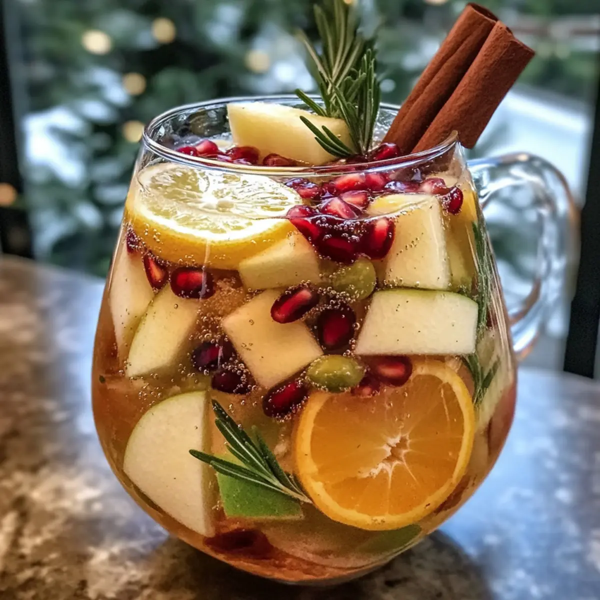 Es war einmal an einem kalten Winterabend, als ich nach einer gemütlichen Möglichkeit suchte, die festliche Stimmung zu teilen. Plötzlich überkam mich die Idee, eine verführerische Winterweiße Sangria zu kreieren, die nicht nur fruchtig und spritzig, sondern auch mit wärmenden Gewürzen verfeinert ist. Diese Sangria ist perfekt für alltägliche Feierlichkeiten und verwandelt jeden Raum in eine einladende Oase. Mit der Kombination aus spritzigem Weißwein, frischen Zitrusfrüchten und aromatischen Zimtstangen wird sie garantiert zum Star jeder Wintergesellschaft. Neben der schnellen Zubereitung ist sie auch glutenfrei und veganfreundlich, sodass sie fast jedem Genussmoment gerecht wird. Bist du bereit, deine Gäste mit einem Hauch von Winterzauber zu überraschen? Warum ist diese Sangria so unwiderstehlich? Einfache Zubereitung: Die Kombination aus nur wenigen Zutaten macht das Selbermachen dieser Winterweißen Sangria einfach und schnell. Perfekt für spontane Feierlichkeiten! Fruchtiger Genuss: Mit lebhaften Zitrusfrüchten und knackigen Äpfeln bietet diese Sangria einen erfrischenden Geschmack, der an kalte Winternächte erinnert. Wärmende Gewürze: Wolken aus Zimt und Nelken verleihen der Sangria eine gemütliche Note, die Herzen erwärmt und für eine festliche Atmosphäre sorgt. Vielseitig: Du kannst die Zutaten leicht anpassen, um deiner Kreativität freien Lauf zu lassen. Probiere unterschiedliche Früchte oder Weinsorten aus, um deine ganz persönliche Note zu finden. Für weitere Inspiration, werfe doch einen Blick auf unsere Variationen von Sangria. Geselligkeit: Diese Sangria wird sicher ein Hit auf jeder Feier und lädt zum Teilen und Genießen ein – ein wahrer Crowd-Pleaser! Zutaten für Winterweiße Sangria • Entdecke die perfekten Zutaten für deine winterliche Lieblingssangria! Für die Sangria Trockener Weißwein – Verwende Sauvignon Blanc oder Pinot Grigio für eine spritzige Basis der Winterweißen Sangria. Frische Zitrusfrüchte (Orangen, Zitronen) – Sie bringen Helligkeit und Frische in den Drink; saisonale Varianten bieten spannende Geschmackserlebnisse. Granatapfelkerne – Fügen Süße und Farbe hinzu; du kannst sie auch durch Preiselbeeren ersetzen, wenn du das möchtest. Äpfel – Sie sorgen für einen knackigen Biss und milde Süße; wähle feste Sorten wie Granny Smith für eine angenehm säuerliche Note. Honig – Zum Süßen und Ausbalancieren der Aromen; passe die Menge je nach Geschmack an. Zimtstangen und Nelken – Diese Gewürze verleihen der Sangria eine wärmende Note, ideal für festliche Anlässe. Sprudelwasser – Für eine belebende Spritzigkeit; füge es erst kurz vor dem Servieren hinzu, damit die Kohlensäure erhalten bleibt. Eis – Zum Kühlen der Sangria; erhöht den erfrischenden Effekt bei jedem Schluck. Schritt-für-Schritt-Anleitung für Winterweiße Sangria Schritt 1: Früchte vorbereiten Beginne mit der Zubereitung der Früchte. Schneide die Zitrusfrüchte in Scheiben und die Äpfel in dünne Streifen. Um die Granatapfelkerne optisch ansprechend zu halten, friere sie etwa 30 Minuten lang ein, bevor du sie der Sangria hinzufügst. Diese Vorbereitung ermöglicht eine bunte und einladende Präsentation deiner Winterweißen Sangria. Schritt 2: Zutaten mischen Nehme eine große Karaffe und gib den trockenen Weißwein hinein. Füge die vorbereiteten Zitrusscheiben, Granatapfelkerne und Apfelstreifen hinzu. Ergänze das Ganze mit Honig, Zimtstangen und Nelken. Rühre vorsichtig um, damit sich die Aromen vereinen. Dieser Schritt ist entscheidend, um den frischen und würzigen Geschmack der Winterweißen Sangria zu intensivieren. Schritt 3: Kühlen Lasse die Mischung mindestens 2 Stunden lang im Kühlschrank ziehen, damit sich die Geschmäcker entfalten und perfekt harmonieren können. Du kannst sie auch bis zu 24 Stunden kühl stellen, wenn du es vorher zubereiten möchtest. Achte darauf, dass die Sangria gut abgedeckt ist, um die Frische zu bewahren. Schritt 4: Servieren Vor dem Servieren, nimm die Karaffe aus dem Kühlschrank und füge sprudelndes Wasser hinzu, um deiner Winterweißen Sangria eine erfrischende Spritzigkeit zu verleihen. Gieße die Sangria dann über Eis in klare Gläser, damit die Farben und die Früchte gut zur Geltung kommen. Schritt 5: Garnieren Verleihe der Sangria eine elegante Note, indem du die Gläser mit frischen Rosmarinzweigen, zusätzlichen Orangenscheiben oder Zimtstangen garnierst. Diese kleinen Details machen den Unterschied und sorgen dafür, dass deine Winterweiße Sangria nicht nur geschmacklich, sondern auch visuell begeistert. Was passt zur Winterweißen Sangria? Die perfekte Ergänzung zu deiner Winterweißen Sangria kann den Genuss wirklich steigern und eine wundervolle Atmosphäre schaffen. Käseplatte: Eine Auswahl an cremigen und würzigen Käsesorten bringt einen herzhaften Kontrast zu den fruchtigen Noten der Sangria. Besonders gut harmoniert weicher Brie oder herzhafter Blauschimmelkäse. Bruschetta: Knusprige Bruschetta mit frischen Tomaten und Basilikum bietet eine belebende Frische, die die Aromen der Sangria ideal ergänzt. Auch eine Variation mit Avocado und Feta kann das Geschmackserlebnis abrunden. Leichte Vorspeisen: Serviere kleine Häppchen wie gefüllte Blätterteig-Teigtaschen oder Gemüse-Dip mit Hummus für eine köstliche Ergänzung. Diese Fingerfood-Optionen sind perfekt, um gesellig zu schlemmen. Desserts: Obsttorte oder Zimtrollen harmonisieren wunderbar mit der Sangria und runden das Festmahl ab. Ihre Süße und das Aroma von Zimt passen perfekt zu den wärmenden Gewürzen deiner Winterweißen Sangria. Süßer Wein: Ein Glas süßer Dessertwein oder ein fruchtiger Prosecco können den Genuss abrunden. Diese Getränke verstärken die festliche Stimmung und passen hervorragend zu der fruchtigen Sangria. Variationen & Ersatzmöglichkeiten Lass deiner Kreativität freien Lauf und entdecke, wie du diese Winterweiße Sangria ganz nach deinem Geschmack anpassen kann