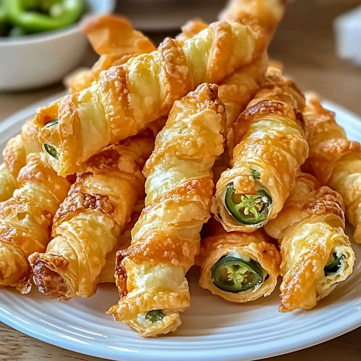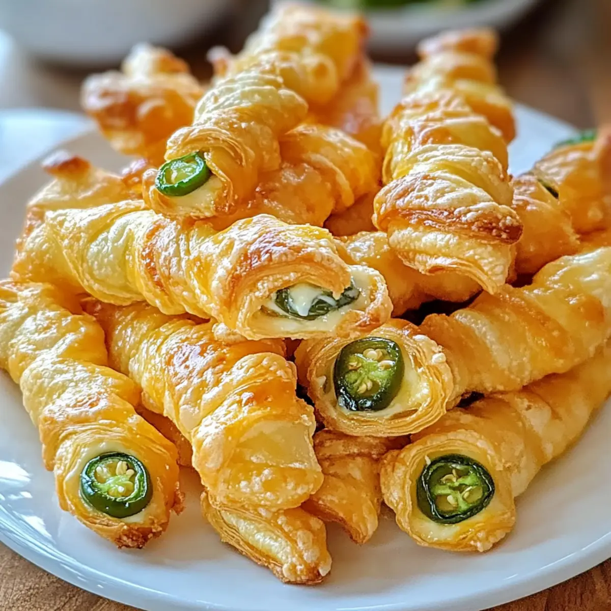 Als ich das erste Mal die Würzigen Jalapeno-Popper-Drehriegel aus dem Ofen holte, umhüllte mich der verlockende Duft von geschmolzenem Frischkäse und würzigen Jalapenos. Diese einfachen Snacks sind nicht nur ein echter Hingucker für jede Feier, sie bieten auch eine perfekte Kombination aus knusprigem Äußeren und cremigem Inneren, das das Geschmacksprofil wunderbar abrundet. Ob für den nächsten Spielabend oder ein entspanntes Familienessen, diese Leckereien sind ein echtes Highlight und lassen sich im Handumdrehen zubereiten. Also, wer könnte da widerstehen? Sind Sie bereit, Ihre Freunde mit diesen köstlichen Häppchen zu begeistern? Warum werden Sie dieses Rezept lieben? Einfachheit: Die Zubereitung ist kinderleicht und erfordert nur wenige Zutaten, sodass Sie schneller ins Geschmackserlebnis eintauchen können. Cremige Füllung: Der Frischkäse vereint sich mit würzigen Jalapenos und bietet ein geschmackliches Feuerwerk, das die Geschmacksknospen begeistert. Vielseitig: Ob als Appetizer, Snack für die nächste Party oder einfach für den gemütlichen Abend zu Hause – diese Drehriegel passen immer! Perfekte Textur: Die Kombination aus knusprigem Blätterteig und einer cremigen Füllung sorgt für ein wahres Geschmackserlebnis, das bei jeder Gelegenheit punktet. Zeitersparnis: In kürzester Zeit im Ofen, können Sie alle mühelos interessierten Freunde mit diesen köstlichen Snacks überraschen. Holen Sie sich auch Ideen für leckere Dips, um Ihr Erlebnis noch zu verfeinern, mit unseren empfohlenen Snacks als Begleitung! Würzige Jalapeno-Popper-Drehriegel Zutaten • Die Zutaten, die Sie brauchen, um diese köstlichen Snacks zuzubereiten, finden Sie hier! Für den Teig Blätterteig – sorgt für die perfekte, flauschige Struktur; alternativ können Sie Pizzateig verwenden, wenn Sie es herzhaft mögen. Für die Füllung Frischkäse – bietet eine cremige Basis und harmoniert wunderbar mit den Jalapenos; ersetzen Sie ihn durch Ziegenkäse für einen würzigen Kick. Geriebener Cheddar – fügt einen scharfen Geschmack hinzu; für eine milder Variante ist Mozzarella eine gute Wahl. Jalapenos (in Scheiben) – sorgt für die gewünschte Schärfe; frische Jalapenos bringen mehr Würze, während eingelegte milder sind. Knoblauchpulver – verstärkt das Aroma; frischer, gehackter Knoblauch sorgt für noch mehr Intensität. Ei (für die Eiwaschung) – sorgt für die goldene Bräunung; als vegane Option können Sie Milch verwenden. Ein köstlicher Snack, der einfach zuzubereiten ist und ideal für Ihre nächste Feierlichkeiten – genießen Sie die Würzigen Jalapeno-Popper-Drehriegel! Schritt-für-Schritt-Anleitungen für Würzige Jalapeno-Popper-Drehriegel Step 1: Ofen vorheizen Heizen Sie Ihren Ofen auf 200°C vor und legen Sie ein Backblech mit Backpapier aus. Dies sorgt dafür, dass die Würzigen Jalapeno-Popper-Drehriegel gleichmäßig backen und ein schönes, knuspriges Finish erhalten. Während Sie den Ofen vorheizen, können Sie die Zutaten vorbereiten. Step 2: Füllung zubereiten In einer Schüssel den weich gewordenen Frischkäse, geriebenen Cheddar, Jalapenos und Knoblauchpulver gut vermengen, bis die Mischung cremig und gut durchmischt ist. Achten Sie darauf, dass keine Klumpen zurückbleiben, damit die Füllung beim Ausrollen gleichmäßig verteilt werden kann. Step 3: Blätterteig vorbereiten Rollen Sie den Blätterteig auf eine Dicke von etwa 0,5 cm aus und schneiden Sie ihn in 5 cm breite Streifen. Diese Größe ist ideal, um die Füllung gut zu umhüllen. Stellen Sie sicher, dass die Teile gleichmäßig sind, um ein gleichmäßiges Backen der Würzigen Jalapeno-Popper-Drehriegel zu garantieren. Step 4: Füllung anbringen Legen Sie in die Mitte jedes Teigstreifens einen Esslöffel der cremigen Füllung. Klappen Sie die andere Hälfte des Teigstreifens darüber und drücken Sie die Ränder gut zusammen, damit sie beim Backen nicht aufreißen. Diese Schritt ist entscheidend für den perfekten Snack. Step 5: Drehen Drehen Sie jedes gefüllte Teigstück, um eine spiralförmige Form zu kreieren. Dies sorgt nicht nur für ein tolles Aussehen, sondern hilft auch, die Füllung zu halten und schmeckt köstlich. Platzieren Sie die gedrehten Snacks gleichmäßig auf dem Backblech. Step 6: Mit Ei bestreichen Verquirlen Sie ein Ei in einer kleinen Schüssel und bestreichen Sie die Oberfläche jedes gedrehten Snacks mit der Eiwaschung. Dies verleiht den Würzigen Jalapeno-Popper-Drehriegel eine goldene, glänzende Farbe während des Backens. Step 7: Backen Backen Sie die Snacks etwa 15–20 Minuten lang im vorgeheizten Ofen, bis sie goldbraun und aufgegangen sind. Achten Sie darauf, dass sie gleichmäßig bräunen; eventuell müssen Sie das Blech einmal rotieren, um ein optimales Backergebnis zu erzielen. Tipps für die besten Würzige Jalapeno-Popper-Drehriegel • Ecken versiegeln: Achten Sie darauf, die Ränder des Teigs gut zu versiegeln, damit die Füllung während des Backens nicht ausläuft. • Würze anpassen: Für zusätzlichen Kick können Sie Cayennepfeffer oder scharfe Sauce zur Füllung hinzufügen, um den würzigen Charakter der Jalapeno-Popper-Drehriegel zu verstärken. • Teig gleichmäßig ausrollen: Rollen Sie den Blätterteig gleichmäßig aus, um ein gleichmäßiges Backen und die perfekte Textur zu gewährleisten. Ein zu dicker oder dünner Teig kann das Ergebnis beeinträchtigen. • Backzeit im Auge behalten: Überwachen Sie die Backzeit genau. Der perfekte Moment ist, wenn die Snacks goldbraun und knusprig sind, was in der Regel zwischen 15 und 20 Minuten liegt. • Verwendung von frischem Gemüse: Verwenden Sie frische Jalapenos für mehr Schärfe oder experimentieren Sie mit unterschiedlichen Käsesorten für ein individuelles Geschmackserlebnis in Ihren Würzige Jalapeno-Popper-Drehriegel. Aufbewahrungstipps für Würzige Jalapeno-Popper-Drehriegel Zimmertemperatur:: Lassen Sie diese köstlichen Snacks nicht länger als 1–2 Stunden bei Raumtemp
