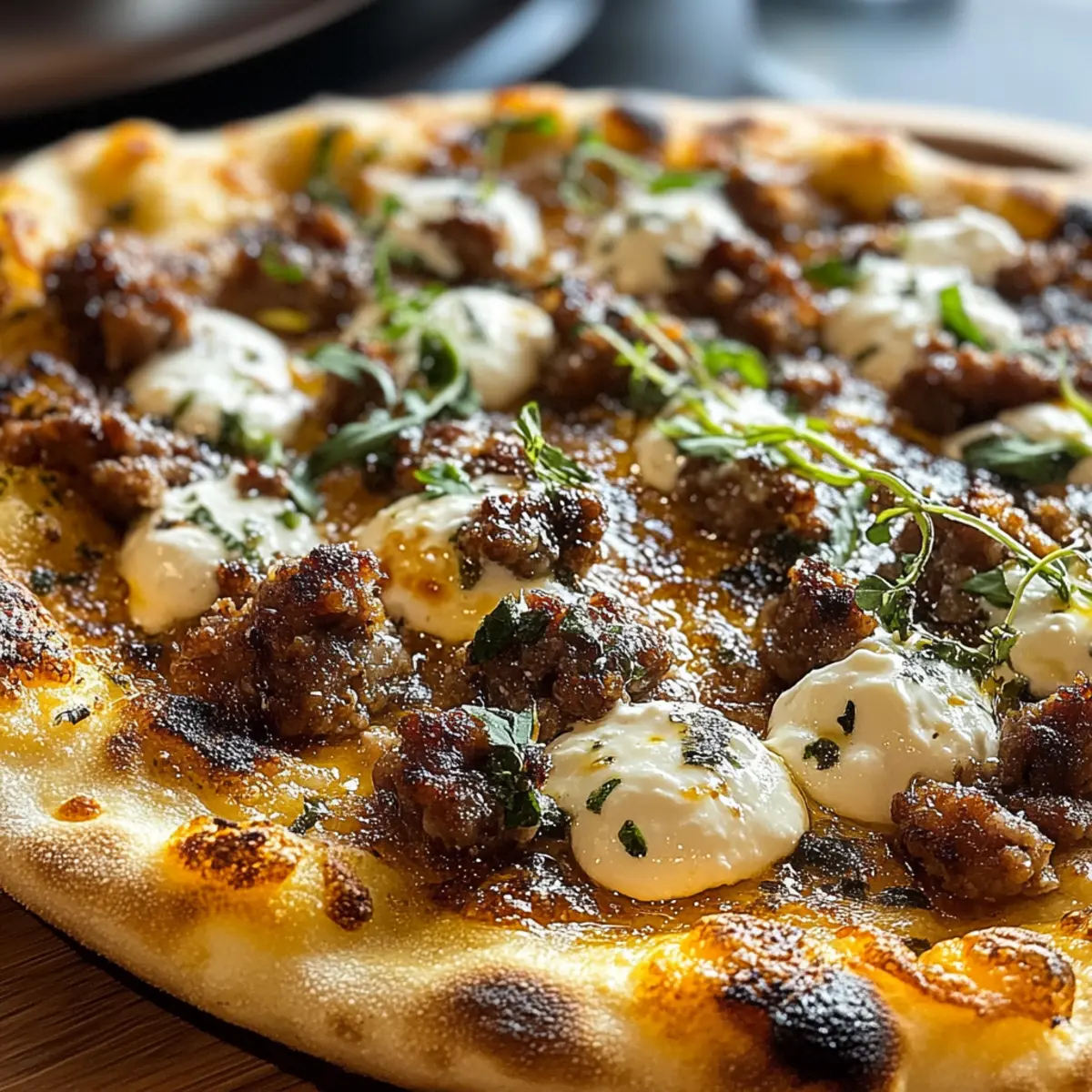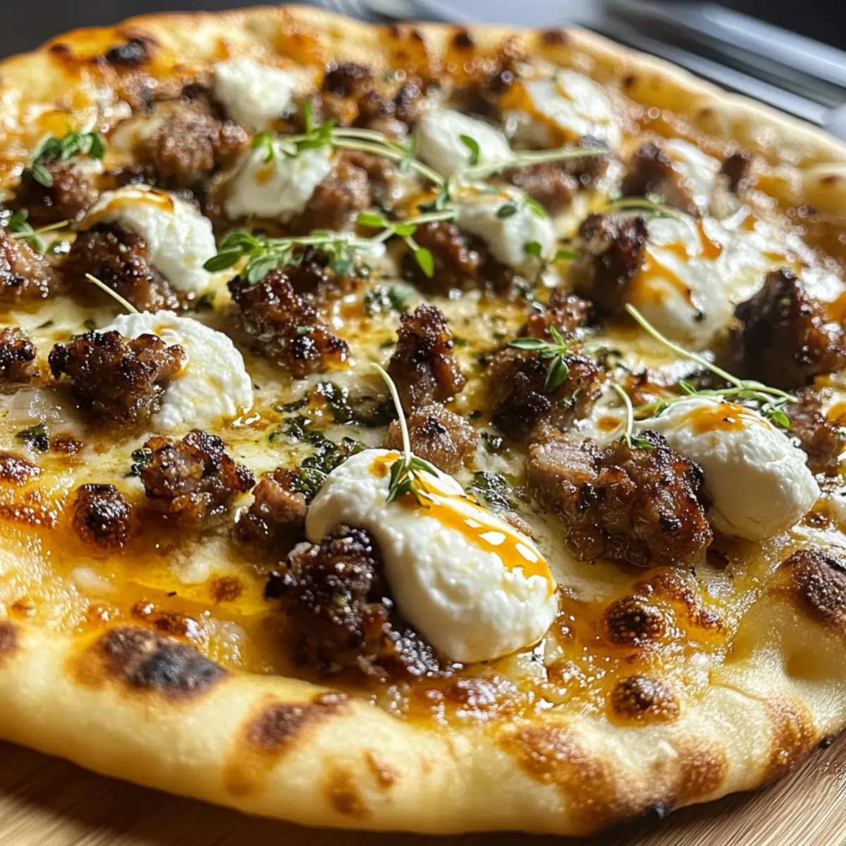 Mit einem knusprigen Naan-Boden und einer Mischung aus aromatischer Wurst, cremigem Ricotta und einer unwiderstehlichen Honig-Scharf-Sauce überrascht uns die Wurst Ricotta Honig Scharfe Pizza auf eine ganz neue Art. Diese Pizza ist nicht nur ein echter Genuss, sondern auch unglaublich einfach zubereitet, perfekt für geschäftige Wochentage oder ein geselliges Abendessen mit Freunden. Ganzen verliebte Herzen wird sie schmecken, denn sie vereint süße und scharfe Geschmäcker in jedem Bissen. Außerdem ist sie anpassbar, sodass Freunde mit unterschiedlichen Vorlieben – sei es glutenfrei oder vegetarisch – sich ebenfalls freuen können. Wer kann da widerstehen? Lass uns gemeinsam entdecken, wie wir diese Geschmacksexplosion in unserer eigenen Küche zaubern können! Warum wirst du diese Pizza lieben? Einzigartige Geschmackskombination: Die Wurst Ricotta Honig Scharfe Pizza vereint süße und scharfe Aromen in einem einzigen Biss, was sie zu einem echten Gaumenschmaus macht. Einfach zuzubereiten: Mit nur wenigen Zutaten und einfachen Schritten gelingt dir diese Gourmet-Pizza im Handumdrehen. Vielseitige Variationen: Egal ob du vegetarisch oder glutenfrei essen möchtest, es gibt reichlich Anpassungsmöglichkeiten für jeden Geschmack. Perfekte für gesellige Abende: Diese Pizza ist der Hit auf jeder Party, da sie sich leicht teilen lässt und alle begeistert. Flexible Zutaten: Du kannst die Wurst ganz nach Vorliebe austauschen und verschiedene Käsesorten ausprobieren, was die Gerichte noch aufregender macht! Wurst Ricotta Honig Scharfe Pizza Zutaten Für den Teig • Naan-Brot – Perfekt für eine knusprige Basis; eignet sich hervorragend für eine schnelle Zubereitung. Für die Beläge • Wurst (italienische) – Sorgt für eine herzhafte Note und köstlichen Geschmack; kannst du durch pflanzliche Wurst für eine vegetarische Option ersetzen. • Ricotta-Käse – Fügt Cremigkeit und Fülle hinzu; für die besten Ergebnisse verwendest du Vollmilch-Ricotta. Alternativ mit Ziegenkäse oder Mascarpone verwenden für unterschiedliche Texturen. • Geriebener Mozzarella – Unverzichtbar für eine authentische, schmelzende Pizza; unbedingt verwenden für den typischen Genuss. • Pizzasauce – Essentiell für den Geschmack; ziehe eine Knoblauch- und Kräuterinfusion in Betracht für zusätzlichen Geschmack. • Honig – Bringt eine süße, karamellisierte Note; kann auch durch Agavendicksaft oder Ahornsirup ersetzt werden; achte darauf, die Schärfe entsprechend anzupassen. • Scharfe Sauce – Sorgt für eine komplexe Schärfe; passe Höhe und Art je nach deinem Schärfeempfinden an. • Zerkleinerte rote Pfefferflocken – Verstärken die Schärfe und Textur; optional, aber empfohlen für den zusätzlichen Kick. • Koscheres Salz, frisch gemahlener Pfeffer – Verstärken den Gesamtgeschmack; unbedingt hinzufügen, um die Geschmäcker auszugleichen. • Olivenöl – Zum Bestreichen des Naan für die knusprige Textur; kann durch andere Pflanzenöle ersetzt werden. Entdecke die Vielfalt der Wurst Ricotta Honig Scharfe Pizza und genieße die Kombination aus süß und scharf, die jeden Biss unvergesslich macht! Schritt-für-Schritt-Anleitung für Wurst Ricotta Honig Scharfe Pizza Step 1: Ofen vorheizen Heize deinen Ofen auf 190°C vor, um eine perfekte Backtemperatur für die Wurst Ricotta Honig Scharfe Pizza zu schaffen. Alternativ kannst du den Grill verwenden, wenn du eine rauchige Note hinzufügen möchtest. Während sich der Ofen aufheizt, kannst du dich um die Zubereitung der Zutaten kümmern. Step 2: Naan-Brot vorbereiten Bestreiche die Naan-Brote leicht mit Olivenöl, um eine knusprige Textur zu erzielen. Lege die Brote auf ein Backblech oder direkt auf die Grillroste, wenn du deinen Grill verwendest. Der Öl wird helfen, dass die Naan-Brote im Ofen goldbraun und knusprig werden. Step 3: Pizzasauce auftragen Verteile eine dünne Schicht Pizzasauce (ca. 60 ml) gleichmäßig auf den Naan-Broten. Achte darauf, die Sauce für die Wurst Ricotta Honig Scharfe Pizza nicht zu dick aufzutragen, damit das Brot nicht durchweicht. Lass dabei etwa einen Zentimeter Rand frei für einen schönen, knusprigen Rand. Step 4: Käseschicht hinzufügen Streue den geriebenen Mozzarella gleichmäßig über die gesauchten Naan-Brote. Der Käse sorgt für eine herrliche Schmelzschicht, die die anderen Zutaten harmonisch verbindet. Achte darauf, dass genügend Käse verteilt ist, damit du einen köstlichen, käsigen Biss erhältst. Step 5: Wurst verteilen Verteile die vorgegarte, zerbröselte italienische Wurst gleichmäßig auf der Käseschicht. Diese herzhafte Zutat wird der Wurst Ricotta Honig Scharfe Pizza ihren charakteristischen Geschmack verleihen und für zusätzlichen Biss sorgen. Wenn du eine vegetarische Variante zubereiten möchtest, ersetze die Wurst einfach durch pflanzliche Alternativen. Step 6: Ricotta-Käse auftragen Setze kleine Kleckse Ricotta auf die Pizza, anstatt ihn zu verstreichen. Diese cremigen Beigaben werden beim Backen leicht schmelzen und einen köstlichen Kontrast zur anderen Textur bieten. Achte darauf, die Ricotta-Stellen gleichmäßig zu verteilen, um jeden Biss besonders lecker zu machen. Step 7: Würzen Würze die Pizza großzügig mit koscherem Salz, frisch gemahlenem Pfeffer und zerkleinerten roten Pfefferflocken. Diese Gewürze werden die Aromen intensivieren und der Wurst Ricotta Honig Scharfe Pizza den perfekten Kick geben. Passen die Würze deinen Vorlieben an und genieße die köstliche Kombination. Step 8: Backen Nun ist es Zeit, die Pizza im vorgeheizten Ofen oder auf dem Grill zu backen. Backe sie für etwa 12-15 Minuten oder bis der Käse schön blubbert und der Rand goldbraun ist. Behalte die Pizza im Blick, um sicherzustellen, dass sie nicht verbrennt und die perfekte Knusprigkeit erreicht. Step 9: Honig-Sauce zubereiten Während die Pizza backt, kannst du die Honig-Sauce zubereiten. Mische den Honig mit etwas scharfer Sauce in einer kleinen Schüssel,