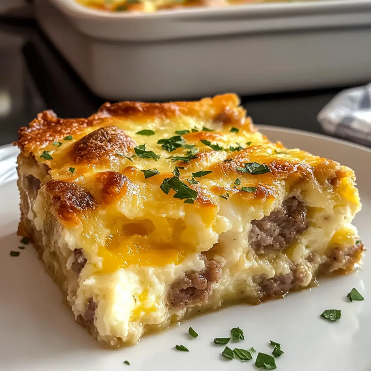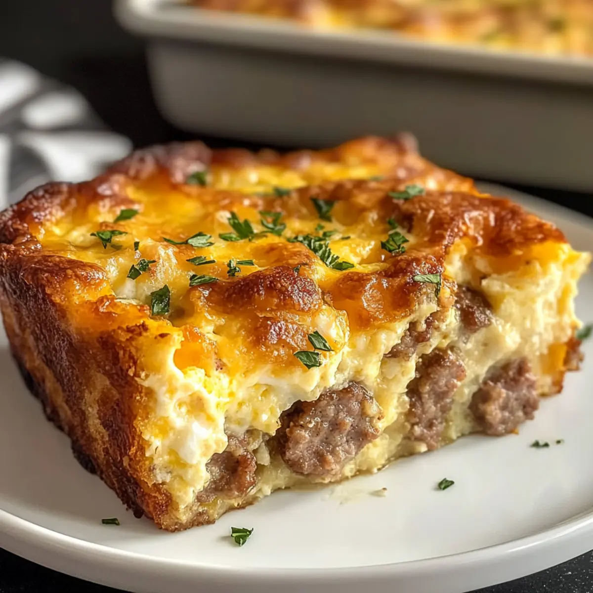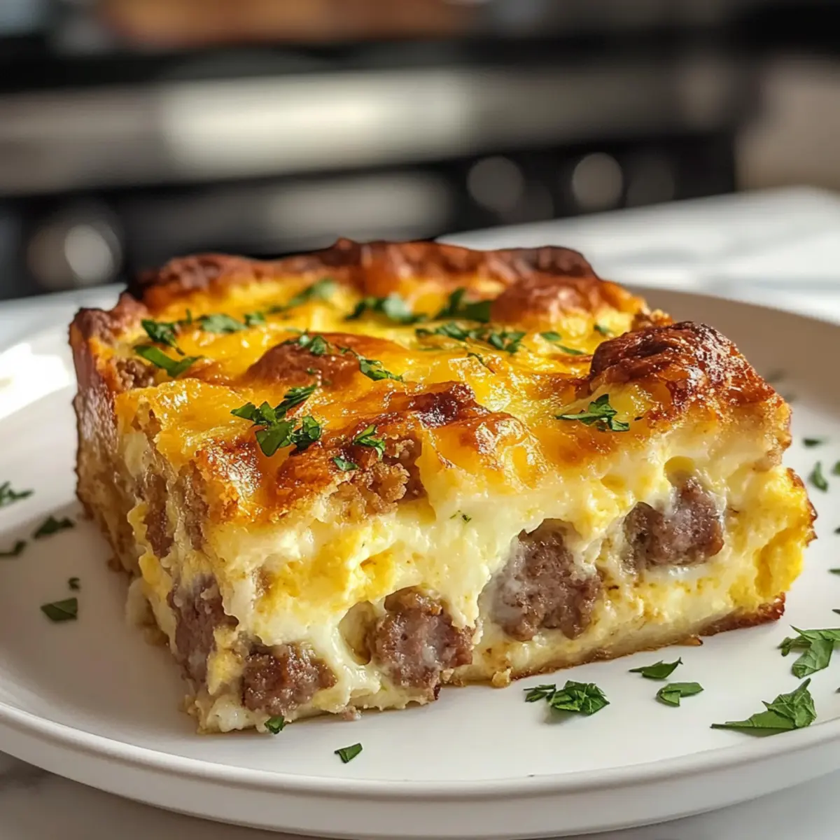 Genießen Sie einen herzhaften Wurst und Eier Auflauf, der einfach zuzubereiten ist und perfekt für ein Frühstück ist.