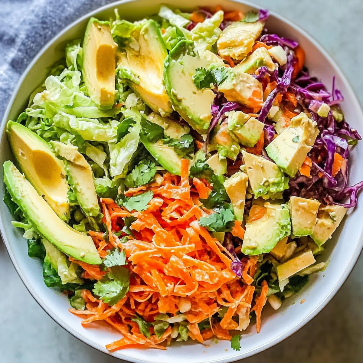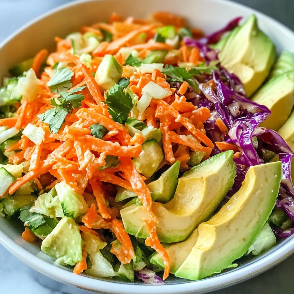 Frische Aromen: Der Zerrissene Thai-Salat vereint knackiges Gemüse mit der cremigen Textur von Avocado, was für ein einzigartiges Geschmackserlebnis sorgt.