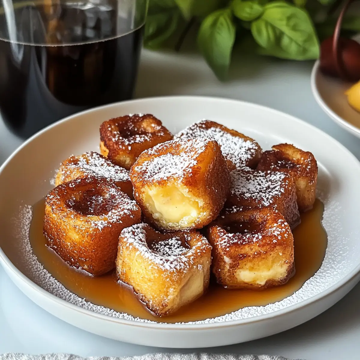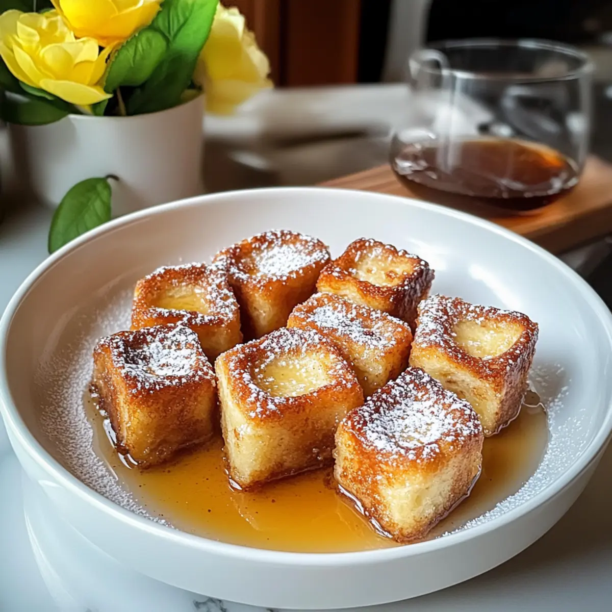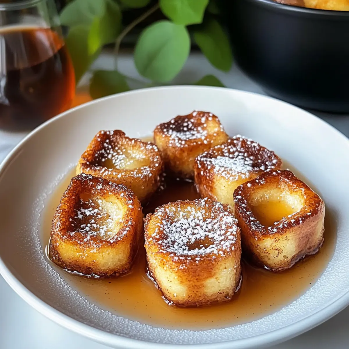 Gerade als ich durch mein Rezeptbuch blätterte, stach mir ein köstliches Bild ins Auge: Zimtschnecken-Toastbissen. Diese kleinen Wunder kombinieren die weiche, teigige Güte von Zimtschnecken mit dem knusprigen Charme von French Toast und zaubern ein Lächeln auf jedes Frühstücksgesicht. Mit nur wenigen, leicht erhältlichen Zutaten sind diese Bissen nicht nur ein schnelles Frühstück, sondern auch eine wahre Freude für die Seele. Ob beim gemütlichen Familienfrühstück oder als süße Überraschung am Wochenende – diese Leckerbissen füllen deine Küche mit verlockenden Aromen und befriedigen dein Verlangen nach etwas Süßem. Bist du bereit, deine Geschmacksnerven mit diesem Rezept zu verwöhnen? Warum wirst du dieses Rezept lieben? Einfachheit: Die Zubereitung ist kinderleicht und benötigt nur grundlegende Kochkenntnisse, was es perfekt für jede Gelegenheit macht. Reic̣he Aromen: Die harmonische Kombination aus Zimt, Zucker und vanilliger Cremigkeit sorgt für ein Geschmackserlebnis, das deinem Frühstück einen besonderen Touch verleiht. Vielfältig: Genieße die Zimtschnecken-Toastbissen pur oder mit frischem Obst wie Beeren für einen erfrischenden Kontrast. Schnell zubereitet: In weniger als 30 Minuten kannst du diese süßen Bissen servieren – ideal für Menschen, die es eilig haben oder eine schnelle Lösung für das Frühstück suchen. Beliebtheit: Diese Bissen sind ein Hit bei großen und kleinen Essern und sind sicher, deine Familie oder Freunde zu begeistern! Du kannst sie auch ganz einfach aufbewahren; sie bleiben in einem luftdichten Behälter im Kühlschrank 2-3 Tage frisch. Wenn du noch mehr kreative Frühstücksideen suchst, schau dir unbedingt unsere anderen Rezepte an! Zutaten für Zimtschnecken-Toastbissen • Wenn du die perfekte Mischung aus Zimtgebäck und French Toast suchst, sind diese Zutaten ideal geeignet! Für die Bissen Zimtschnecken – bilden die süße Basis, die nach frischem Zimt duftet; am besten eignet sich ein fertiger Teig vom Supermarkt. Eier – binden die Mischung und verleihen der Textur die nötige, reichhaltige Cremigkeit. Milch – sorgt für eine angenehme Konsistenz und hilft, die Zimtschnecken gleichmäßig durchzuweichen, ohne die Süße zu dominieren. Schlagsahne – erhöht die Reichhaltigkeit der Mischung; du kannst auch mehr Milch verwenden, wenn du es einfacher haben möchtest. Vanilleextrakt – bringt eine warme Note in das Aroma und hebt den Geschmack hervor. Gemahlener Zimt – verstärkt den Zimtgeschmack und passt perfekt zu den Zimtschnecken. Butter – garantiert knusprige Ränder und verleiht den Bissen mehr Geschmack. Puderzucker – für eine süße, leichte Bestäubung zum Servieren, die das Ganze abrundet. Schritt-für-Schritt-Anleitung für Zimtschnecken-Toastbissen Step 1: Ofen vorheizen und Backblech vorbereiten Heize den Ofen auf 190°C vor und lege ein Backblech mit Backpapier aus. Dadurch wird sichergestellt, dass die Zimtschnecken-Toastbissen nicht anhaften, während sie im Ofen backen. Dies ist der erste Schritt, um die perfekte knusprige Textur zu erreichen. Step 2: Zimtschnecken zerkleinern Nimm die Zimtschnecken und schneide sie in mundgerechte Stücke. Diese kleinen Bissen sollten etwa 2,5 cm groß sein. Achte darauf, dass du die Zimtschnecken gleichmäßig schneidest, um ein gleichmäßiges Backen zu gewährleisten und die köstlichen Aromen beim Backen optimal zur Geltung zu bringen. Step 3: Eiermix herstellen In einer großen Schüssel verquirlst du die Eier, Milch, Schlagsahne, Vanilleextrakt, gemahlenen Zimt und eine Prise Salz. Misch alles gut, bis die Mischung schön cremig ist. Dieser custardartige Mix ist entscheidend für die saftige Konsistenz der Zimtschnecken-Toastbissen, die du später erzielen möchtest. Step 4: Zimtschnecken in die Eiermasse geben Füge die zerkleinerten Zimtschnecken zur Eiermischung hinzu und rühre vorsichtig um. Achte darauf, dass alle Stücke gut bedeckt sind und das Ei gut einzieht. Lasse die Mischung einige Minuten stehen, damit die Zimtschnecken die Flüssigkeit aufsaugen können und der Geschmack sich intensiviert. Step 5: Butter schmelzen und unterrühren Schmelze in einer kleinen Pfanne bei mittlerer Hitze die Butter. Gieße die geschmolzene Butter über die Zimtschnecken-Ei-Mischung und rühre alles gut um, bis die Butter gleichmäßig verteilt ist. Dies trägt dazu bei, dass die Zimtschnecken-Toastbissen während des Backens eine goldene, knusprige Kruste erhalten. Step 6: Mischung auf dem Backblech verteilen Verteile die Zimtschnecken-Mischung gleichmäßig auf dem vorbereiteten Backblech. Achte darauf, dass die Stücke in einer einzigen Schicht liegen, um ein gleichmäßiges Backen zu gewährleisten. Das sorgt dafür, dass alle Bissen schön goldbraun werden und nicht aneinanderkleben. Step 7: Backen der Zimtschnecken-Toastbissen Backe die Mischung im vorgeheizten Ofen für 15-18 Minuten. Die Zimtschnecken-Toastbissen sind fertig, wenn sie außen goldbraun und knusprig sind. Halte ein Auge darauf, um sicherzustellen, dass sie nicht verbrennen, und genieße den herrlichen Duft, der durch die Küche zieht. Step 8: Mit Puderzucker bestäuben und servieren Nimm die Zimtschnecken-Toastbissen aus dem Ofen und lasse sie kurz abkühlen. Bestäube sie anschließend großzügig mit Puderzucker und serviere sie nach Belieben mit warmem Ahornsirup. Diese süßen Bissen sind perfekt für ein fröhliches Frühstück und werden sicherlich alle begeistern! Zimtschnecken-Toastbissen Variationen Wage es, dein Rezept für Zimtschnecken-Toastbissen zu personalisieren und neue Geschmackshorizonte zu entdecken! Dairy-Free: Verwende pflanzliche Milchalternativen wie Mandel- oder Hafermilch anstelle von Milch und Sahne. Fruchtige Prise: Füge frische Beeren oder geschnittene Bananen zur Mischung hinzu, um einen frischen, fruchtigen Twist zu erreichen. Nussige Note: Streue gehackte Nüsse wie Walnüsse oder Mandeln über die Mischung für zusätzlichen Crunch und Geschmac