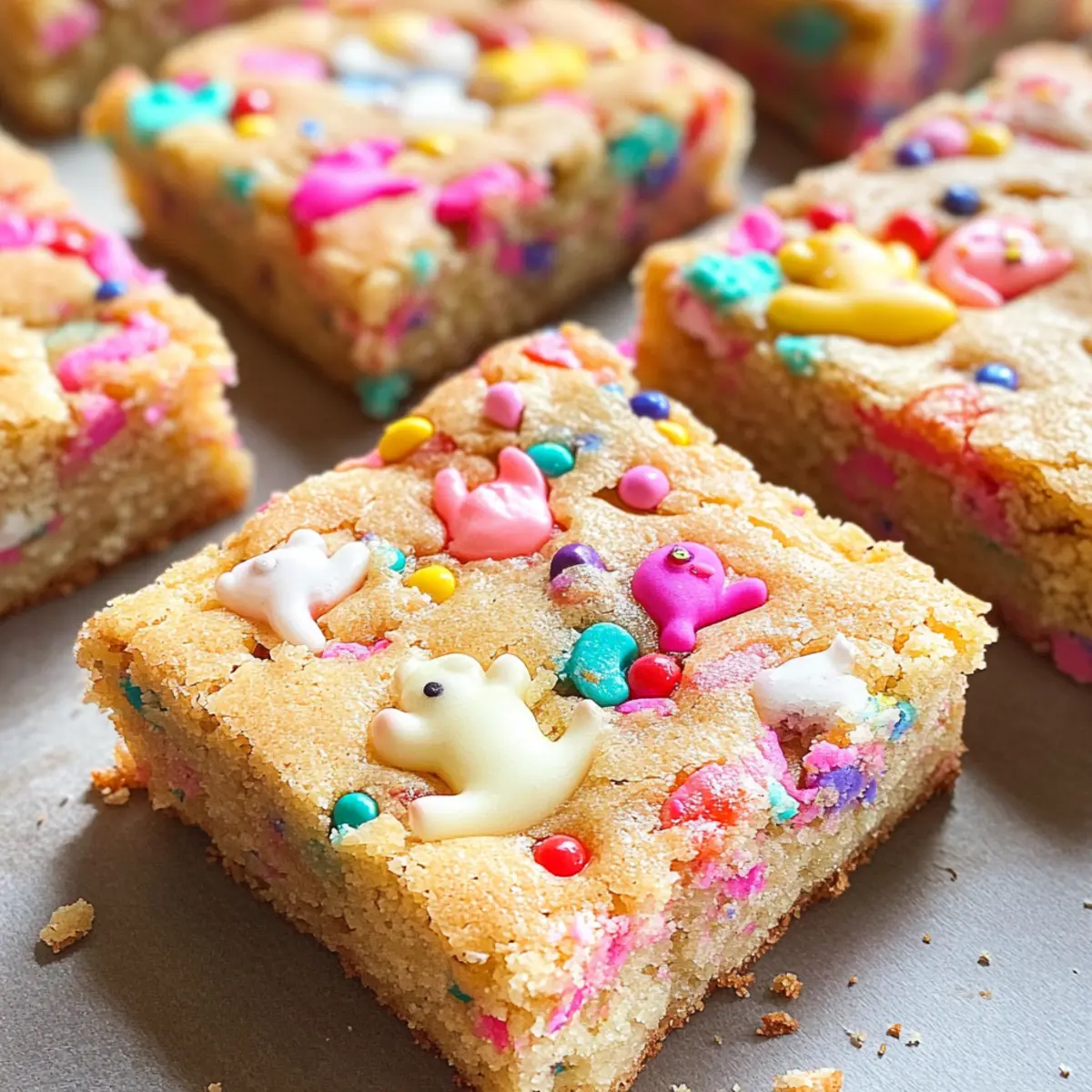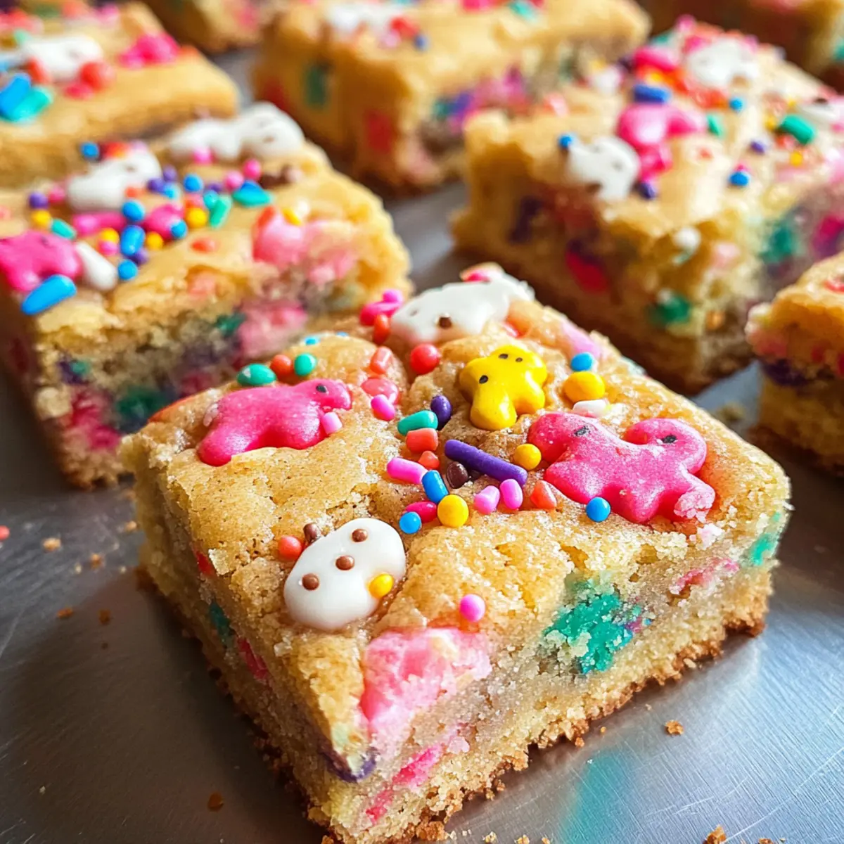 Eine bunte Schicht voller Kindheitserinnerungen und süßer Freude erwartet euch mit diesen Zirkustier Blondies! Erinnert ihr euch an die fröhlichen Farben und den unverwechselbaren Geschmack der beliebten Zirkustier Kekse? Diese weichen und chewy Blondies vereinen all diese Nostalgie und vereinfacht das Backen in der eigenen Küche. Perfekt für einen schnellen Genuss nach der Schule oder als Highlight für eure nächste Sommerfeier, sind sie nicht nur ein echter Hingucker, sondern auch ein kinderfreundliches Dessert, das alle begeistern wird. Mit nur wenigen Zutaten zaubert ihr in einem Handumdrehen ein Stück Glück, das sowohl jung als auch alt verzaubert. Seid ihr bereit, eine süße Auszeit zu genießen? Warum sind diese Blondies so besonders? Süße Nostalgie: Diese Zirkustier Blondies bringen Erinnerungen an glückliche Kindheitstage zurück, während die bunten Streusel jedem Stück Freude verleihen. Einfach zuzubereiten: Es braucht nur wenige Zutaten und grundlegende Backfähigkeiten, um diese Leckerei zu zaubern. Vielseitigkeit pur: Ihr könnt die Zirkustier Kekse durch eure Lieblingskekse ersetzen und so endlose Variationen ausprobieren. Perfekt für jede Gelegenheit: Ob als Schulimbiss, Summer BBQ oder einfach nur zum Naschen – diese Blondies passen immer! Familienliebling: Die Kombination aus weicher Textur und bunten Zutaten macht sie zu einem Hit bei Kindern und Erwachsenen. Genießt sie warm mit einer Kugel Vanilleeis oder einer Tasse Milch für einen köstlichen Genuss! Zirkustier Blondies Zutaten • Um eure Zirkustier Blondies perfekt zuzubereiten, findet ihr hier die notwendigen Zutaten: Für den Teig Butter (3/4 Tasse) – Sorgt für Reichtum und Feuchtigkeit; verwendet ungesalzene Butter für optimalen Geschmack. Zucker (1 Tasse) – Süßt die Mischung und sorgt für eine chewy Textur; Granulat ist am besten geeignet. Eier (3) – Geben Struktur und Feuchtigkeit; erhöht die Anzahl auf 4 für ein intensiveres Aroma. Vanilleextrakt (1 1/2 TL) – Verstärkt die Geschmacksnote; für beste Ergebnisse verwende reinen Vanilleextrakt. Mehl (2 Tassen) – Bildet die Grundlage; Haushaltsmehl ist die ideale Wahl. Backpulver (1 TL) – Lässt die Blondies leicht aufgehen und gibt eine angenehme Textur. Zirkustier Kekse (2 Tassen) – Sorgt für den typischen Geschmack und Spaßfaktor; können durch weiße Schokoladenstückchen ersetzt werden. Streusel (1/4 Tasse + mehr zum Dekorieren) – Fügen Farbe und Textur zu den Blondies hinzu. Schritt-für-Schritt-Anleitung für Zirkustier Blondies Schritt 1: Ofen vorheizen Heize deinen Ofen auf 160°C vor. Dies ist wichtig, um sicherzustellen, dass deine Zirkustier Blondies gleichmäßig backen. Während der Ofen vorheizt, kannst du bereits deine Backform vorbereiten. Schritt 2: Butter und Zucker cremen In einer Küchenmaschine die Butter und den Zucker bei mittlerer Geschwindigkeit cremig schlagen, bis die Mischung leicht und fluffig aussieht. Dies dauert etwa 3-5 Minuten. Kratze die Ränder der Schüssel ab, um sicherzustellen, dass sich alles gut vermischt. Schritt 3: Eier und Vanille hinzufügen Füge die Eier nacheinander zur Butter-Zucker-Mischung hinzu. Mische nach jedem Ei gründlich, bis alles gut verbunden ist. Gebe dann den Vanilleextrakt dazu und verrühre alles, bis die Masse gut gebunden ist und angenehm duftet. Schritt 4: Mehl und Backpulver einarbeiten Mische in einer separaten Schüssel das Mehl mit dem Backpulver. Füge die trockenen Zutaten langsam zur feuchten Mischung hinzu. Rühre, bis sich ein dicker Teig bildet, der einer Kuchenmasse ähnelt. Achte darauf, nicht zu lange zu rühren, um die Blondies schön zart zu halten. Schritt 5: Zirkustier Kekse und Streusel unterheben Falte vorsichtig die Zirkustier Kekse und die bunten Streusel unter den Teig. Verwende einen Gummispatel, um eine gleichmäßige Verteilung der Zutaten zu gewährleisten. Der Teig sollte gut durchmischt und voller fröhlicher Farben sein. Schritt 6: Backform vorbereiten Fette eine 9 x 13 Zoll große Backform gründlich ein oder lege sie mit Backpapier aus. Gieße den Teig hinein und verteile ihn gleichmäßig. Streue zusätzlich Kekse und Streusel obenauf, um einen schönen Effekt beim Backen zu erzielen. Schritt 7: Blondies backen Backe die Zirkustier Blondies bei 160°C für 25-30 Minuten. Sie sollten goldbraun und in der Mitte leicht fest sein. Achte darauf, sie nicht zu lange zu backen, damit sie schön chewy bleiben. Schritt 8: Abkühlen lassen und schneiden Lasse die Blondies nach dem Backen 10-15 Minuten in der Form abkühlen. Anschließend solltest du sie vollständig auskühlen lassen, bevor du sie in Stücke schneidest, damit sie nicht zerfallen. Lagerungstipps für Zirkustier Blondies Raumtemperatur: Bewahre die Blondies in einem luftdichten Behälter bei Raumtemperatur auf, damit sie bis zu 4 Tage frisch bleiben. Kühlschrank: Für längere Haltbarkeit kannst du die Zirkustier Blondies im Kühlschrank lagern. Sie bleiben dort bis zu 7 Tage lecker und saftig. Gefrierlagerung: Friere die Blondies in einem luftdichten Gefrierbeutel oder Behälter ein, um sie bis zu 3 Monate zu genießen. Achte darauf, sie gut zu verpacken, um Gefrierbrand zu vermeiden. Auftauen: Lasse die gefrorenen Blondies über Nacht im Kühlschrank auftauen oder lege sie einige Stunden bei Raumtemperatur heraus, bevor du sie servierst. Expertentipps für Zirkustier Blondies • Kühlzeit beachten: Lass die Blondies vollständig abkühlen, bevor du sie schneidest; so verhinderst du, dass sie zerfallen oder die Streusel verwischen. • Backzeit im Auge behalten: Überwache die Blondies gegen Ende der Backzeit, um ein Überbacken zu vermeiden; sie sollten in der Mitte noch leicht weich sein. • Scharfes Schneidwerkzeug: Verwende ein scharfes Messer für saubere Schnitte; wenn die Blondies noch zu warm sind, können sie krümelig werden. • Teig nicht übermischen: Achte darauf, den Teig nur kurz zu rühren, um eine zarte Textur der Zirkustier Blondies zu erre